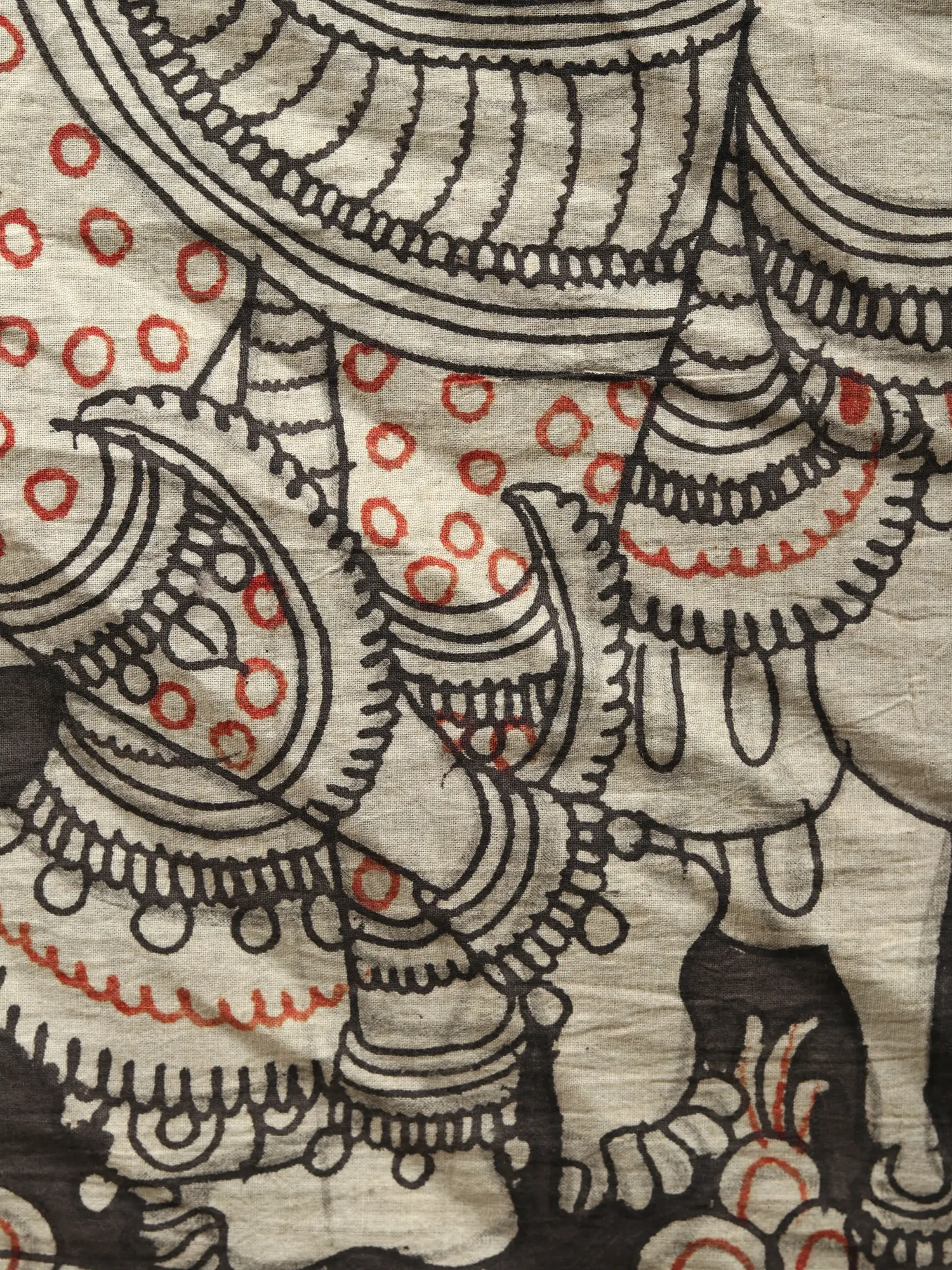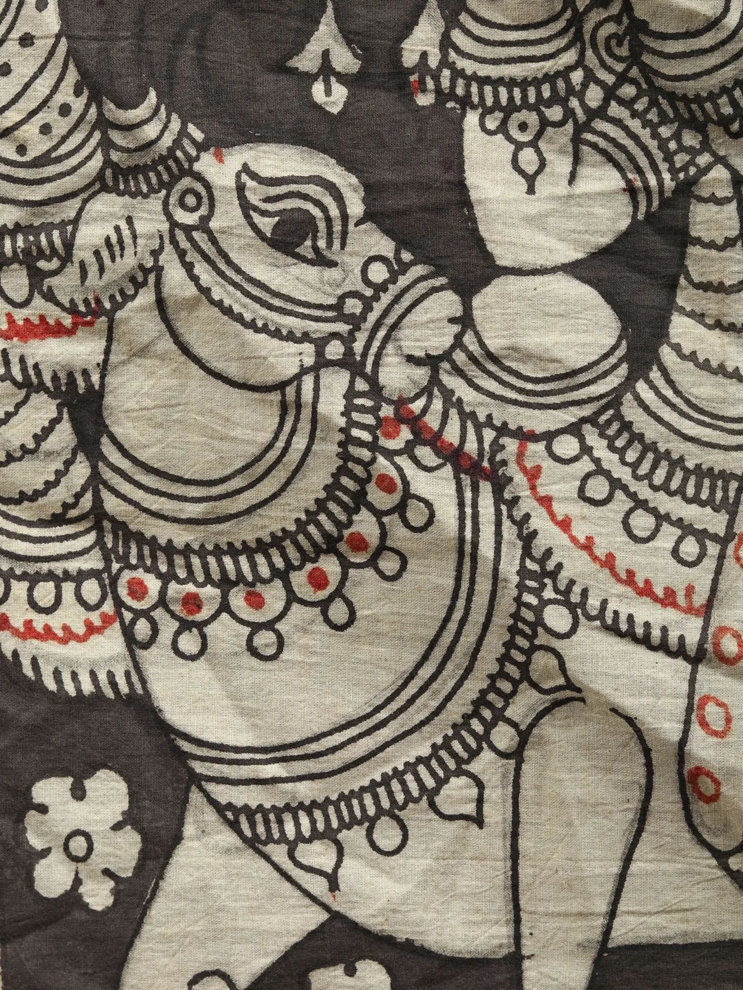 To ensure the longevity of this cherished piece, we recommend keeping it away from direct sunlight and excessive humidity. A gentle dusting with a soft, dry cloth will suffice for routine care. This Kalamkari on cotton is not merely a decorative object but an heirloom, designed to be admired and treasured for generations, its artistic integrity and cultural narrative preserved through thoughtful stewardship.