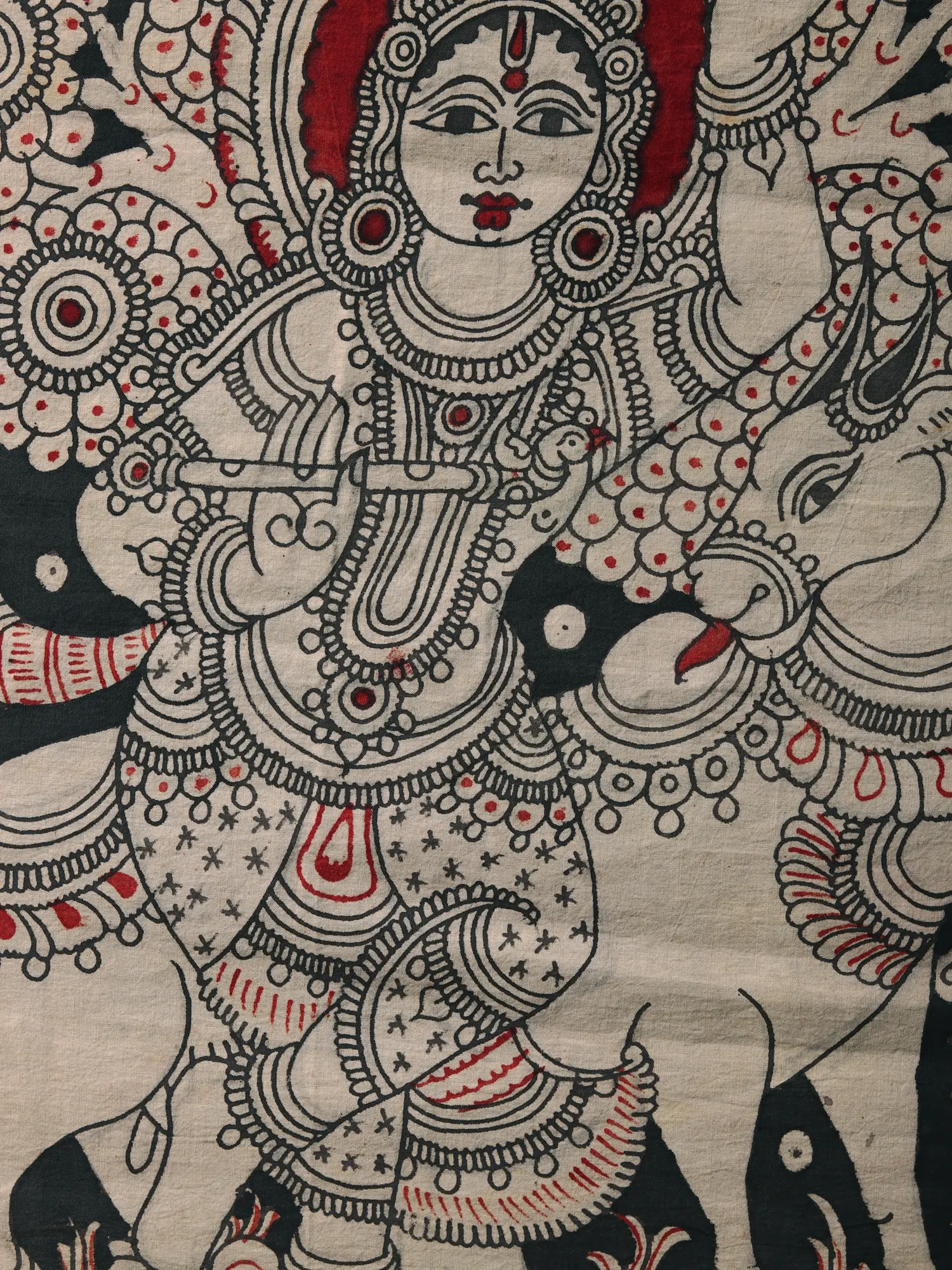 Dancing Radha Krishna with Cow | Kalamkari Art