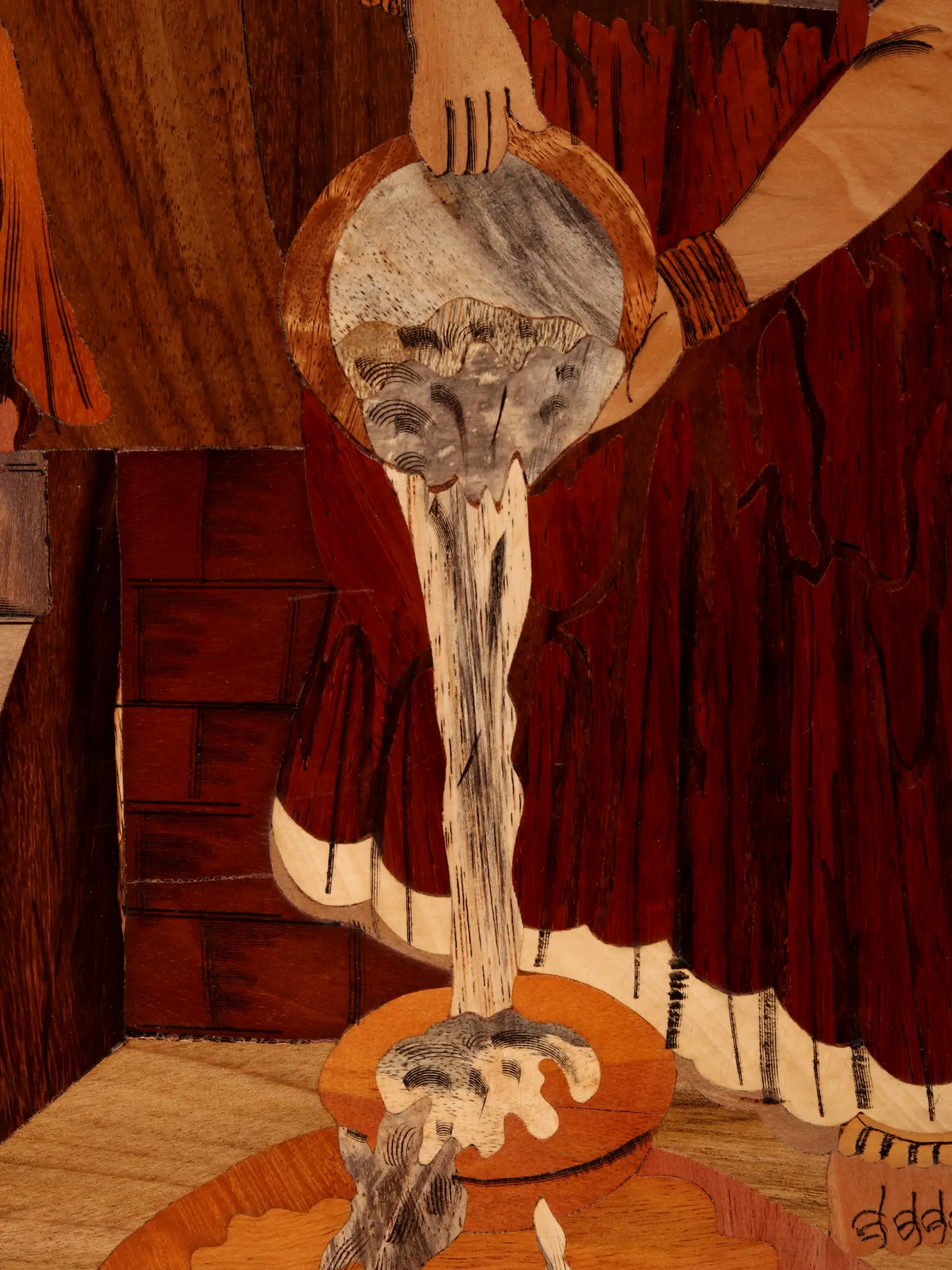 Wood inlay is a historically significant art form from the 18th century. It arrived in India through Srirangaptnam in Mysore from Persia but has become an inevitable part of the Indian heritage. Tipu Sultan and the Wodeyars/Wadiyars are credited with the growth of this 400-year-old art form in Mysore and its neighboring areas. Wood inlay work is usually done on a Mysore rosewood base, and other woods are used, like mango, kadam, jackfruit, rubber, doodhi, etc. Pieces of wood are adorned with beautiful motifs and patterns made from various materials. From wall hangings and paintings to jewelry boxes and furniture, many items are made using the Mysore wood inlay technique. An outline is etched on a piece of rosewood with a sharp tool. Then, the area inside the outline is hollowed out, and materials like lacquer, enamel, contrasting wood, and sometimes even gold and silver are placed inside it. A sandpaper is used to give a smooth finish to the surface.