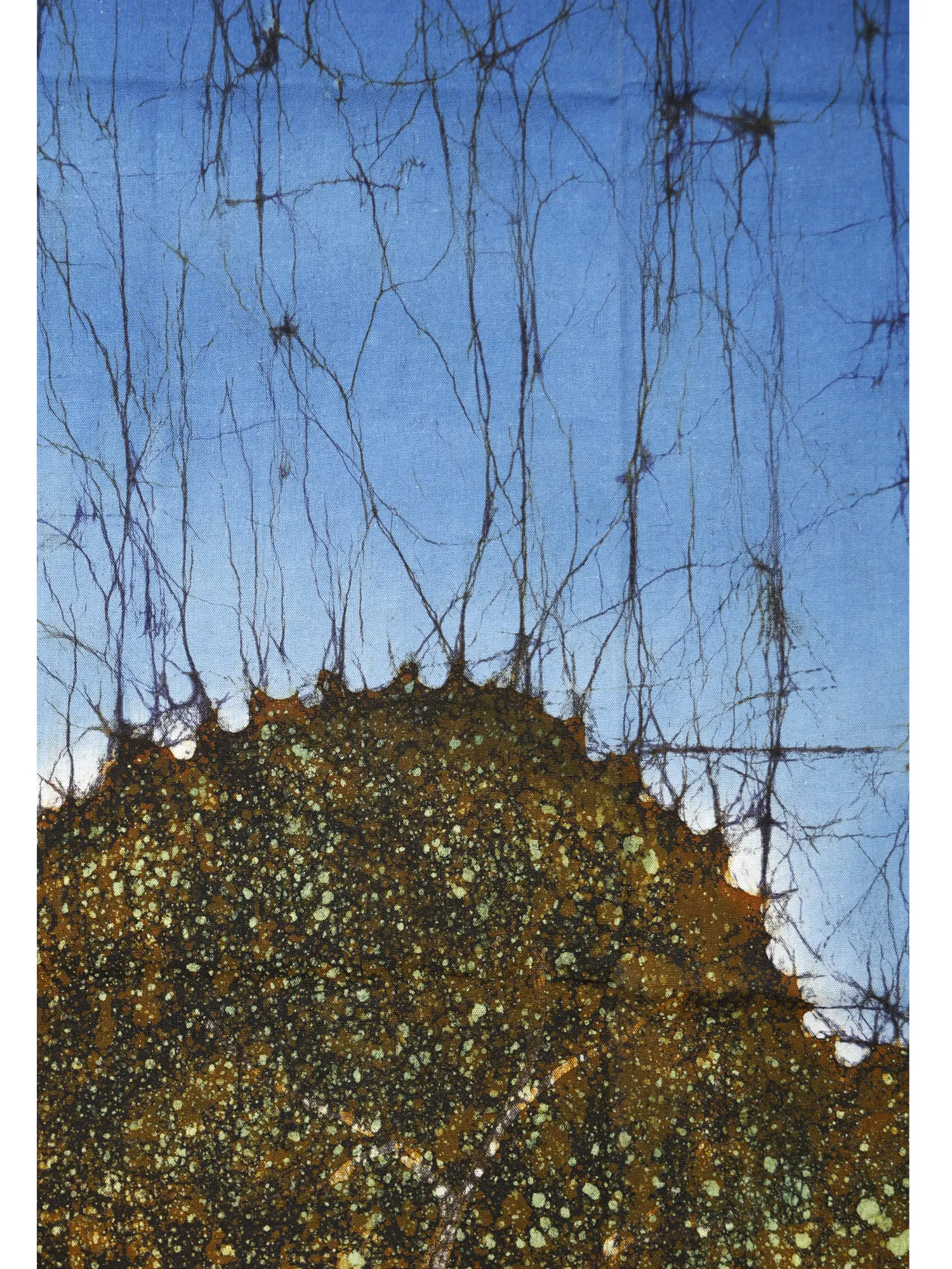 The earthy colors seamlessly blend into a harmonious representation of rural simplicity. This batik art not only portrays the visual richness of village life but also incorporates the distinctive crack pattern, showcasing a seamless integration of traditional techniques and vibrant depictions of daily existence.
