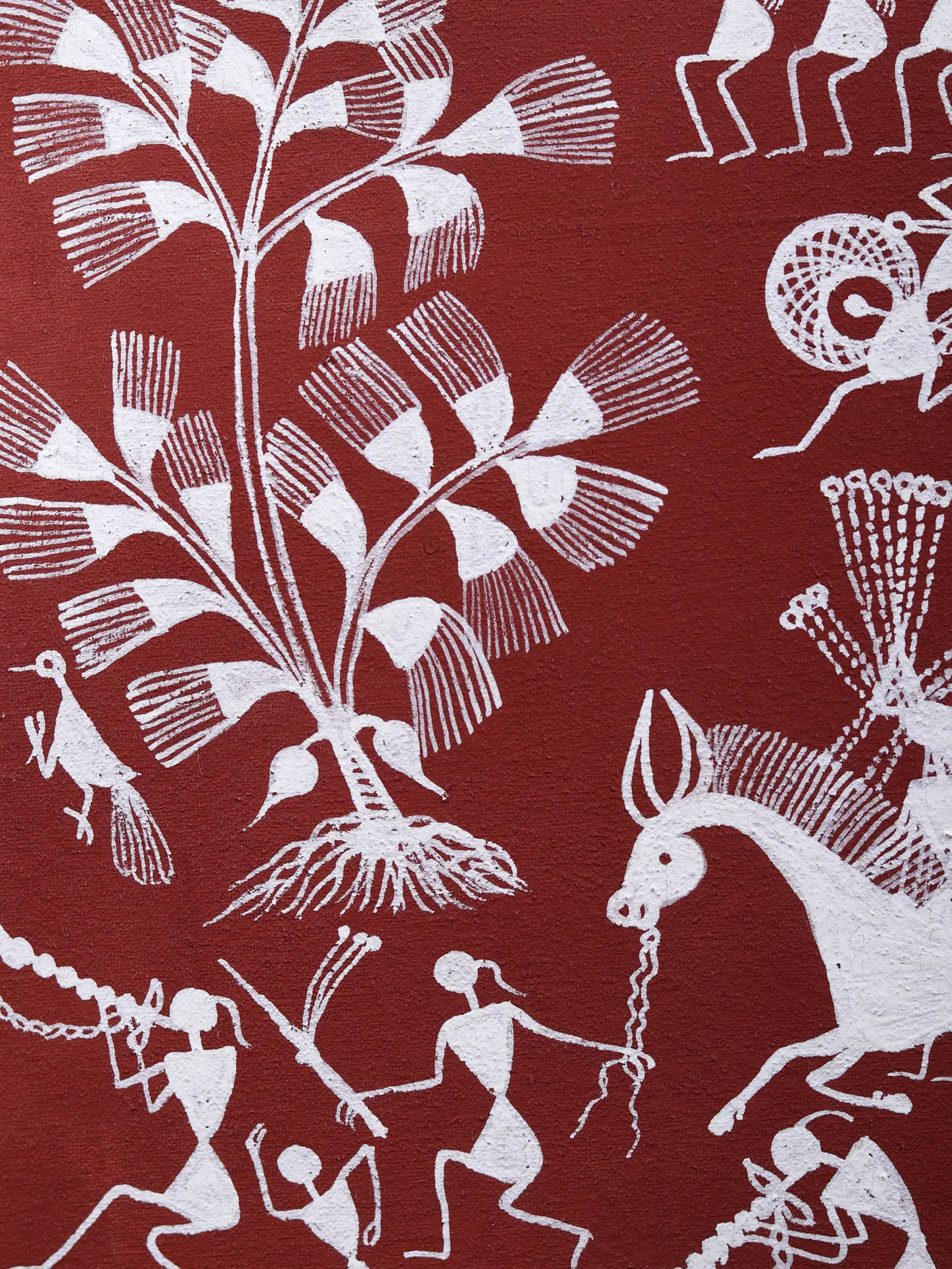 Tribal Warli Painting | Natural Color On Cotton Cloth | By Sanjay Balakrishna Parhad