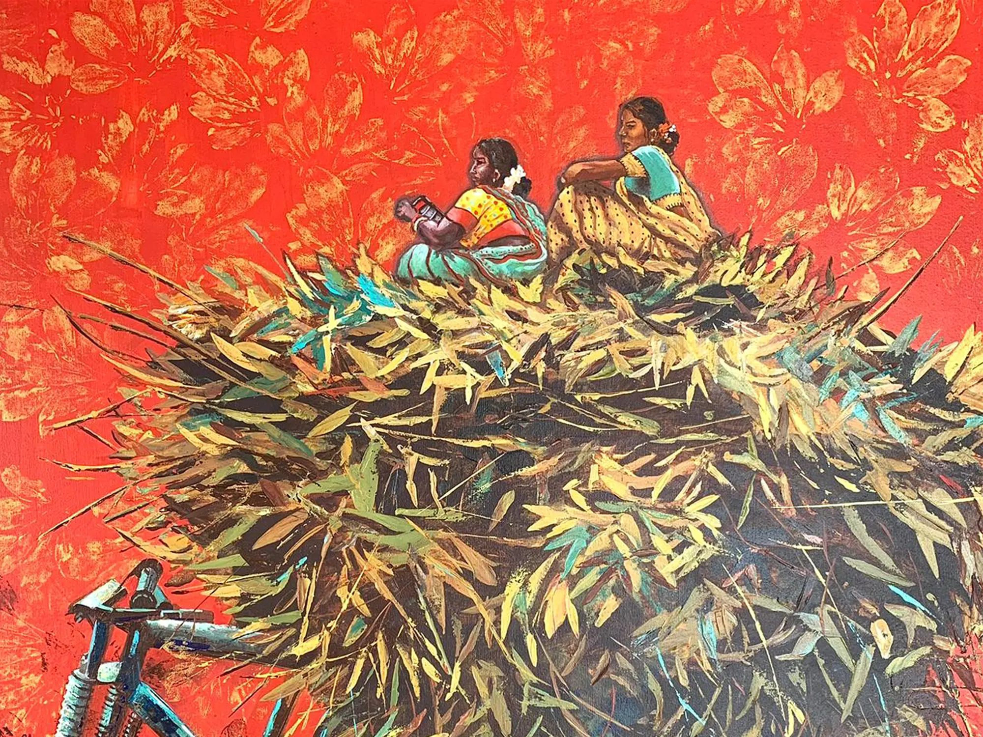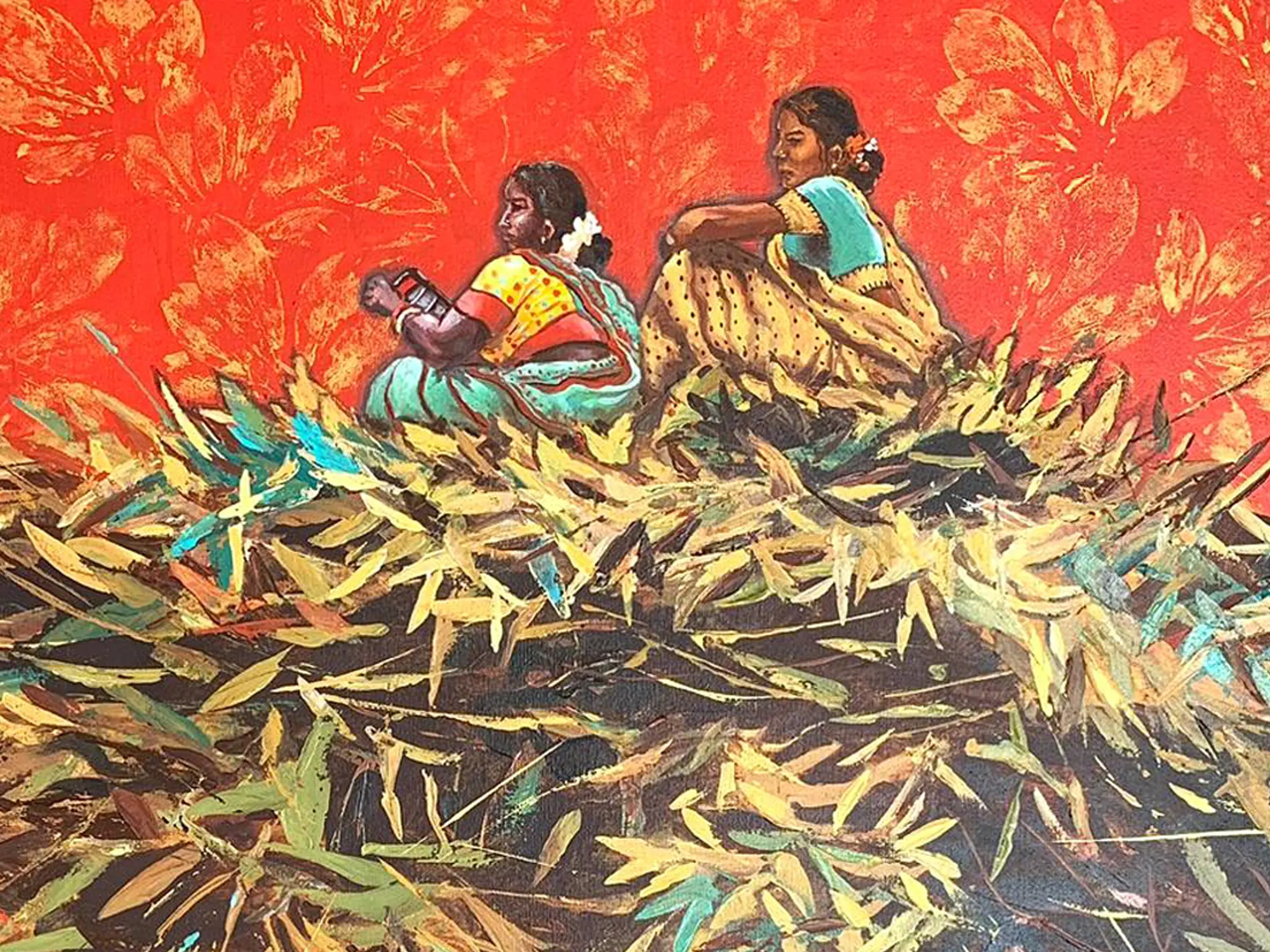 Beautiful Birds On Branches | Madhubani Painting | Acrylic On Canvas | By Rina Patwa