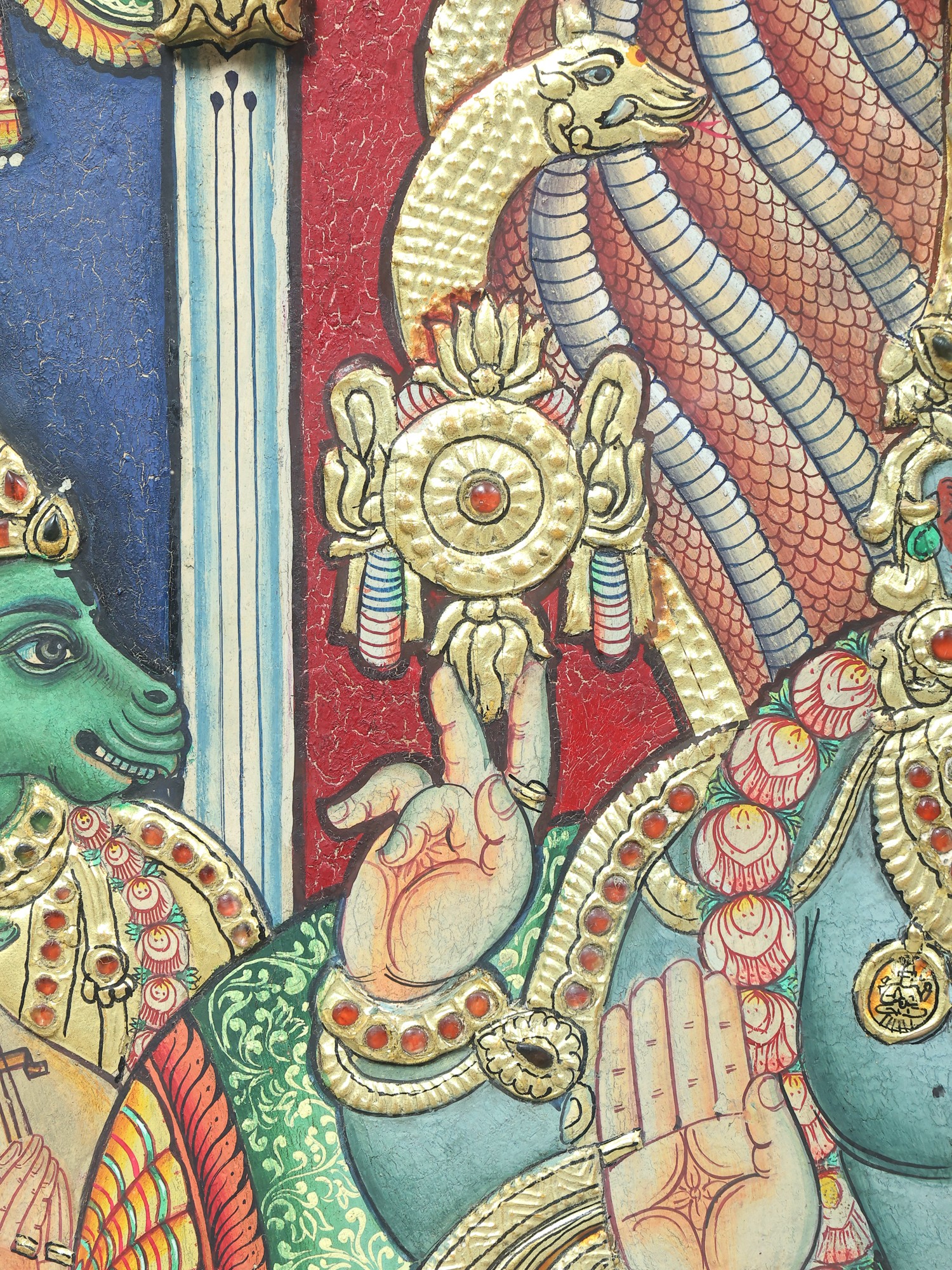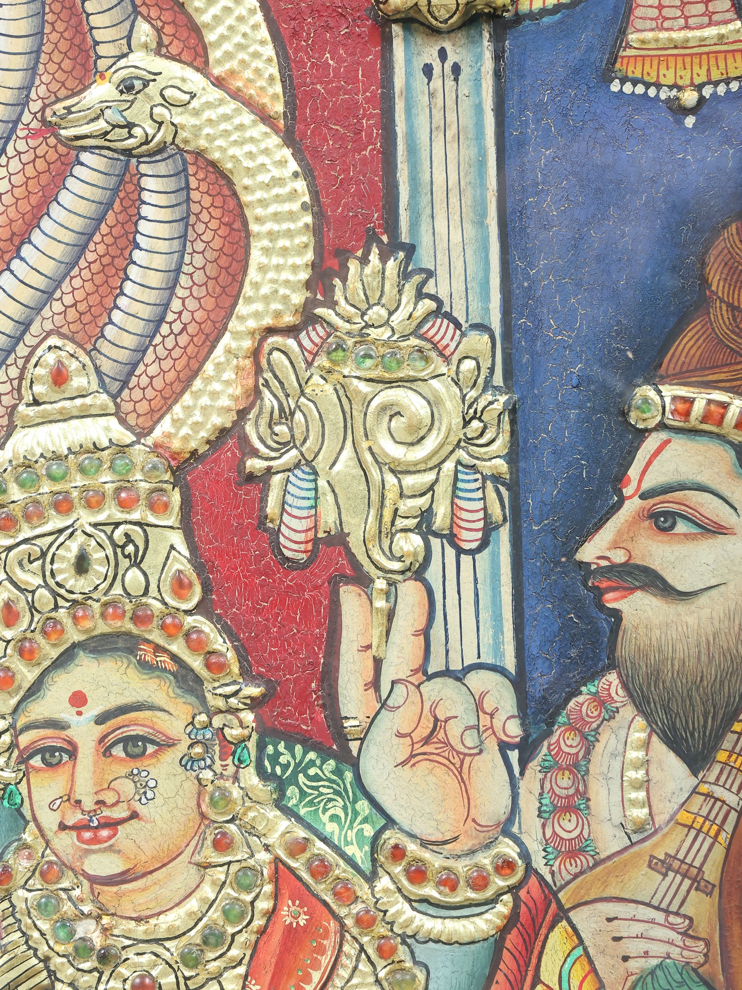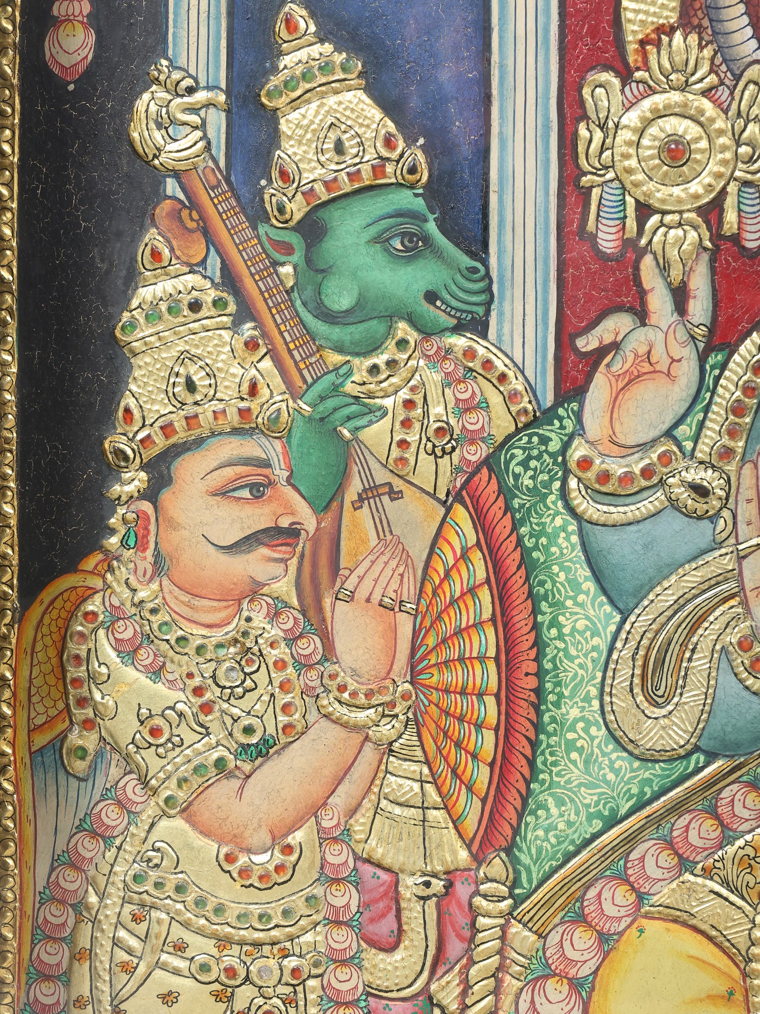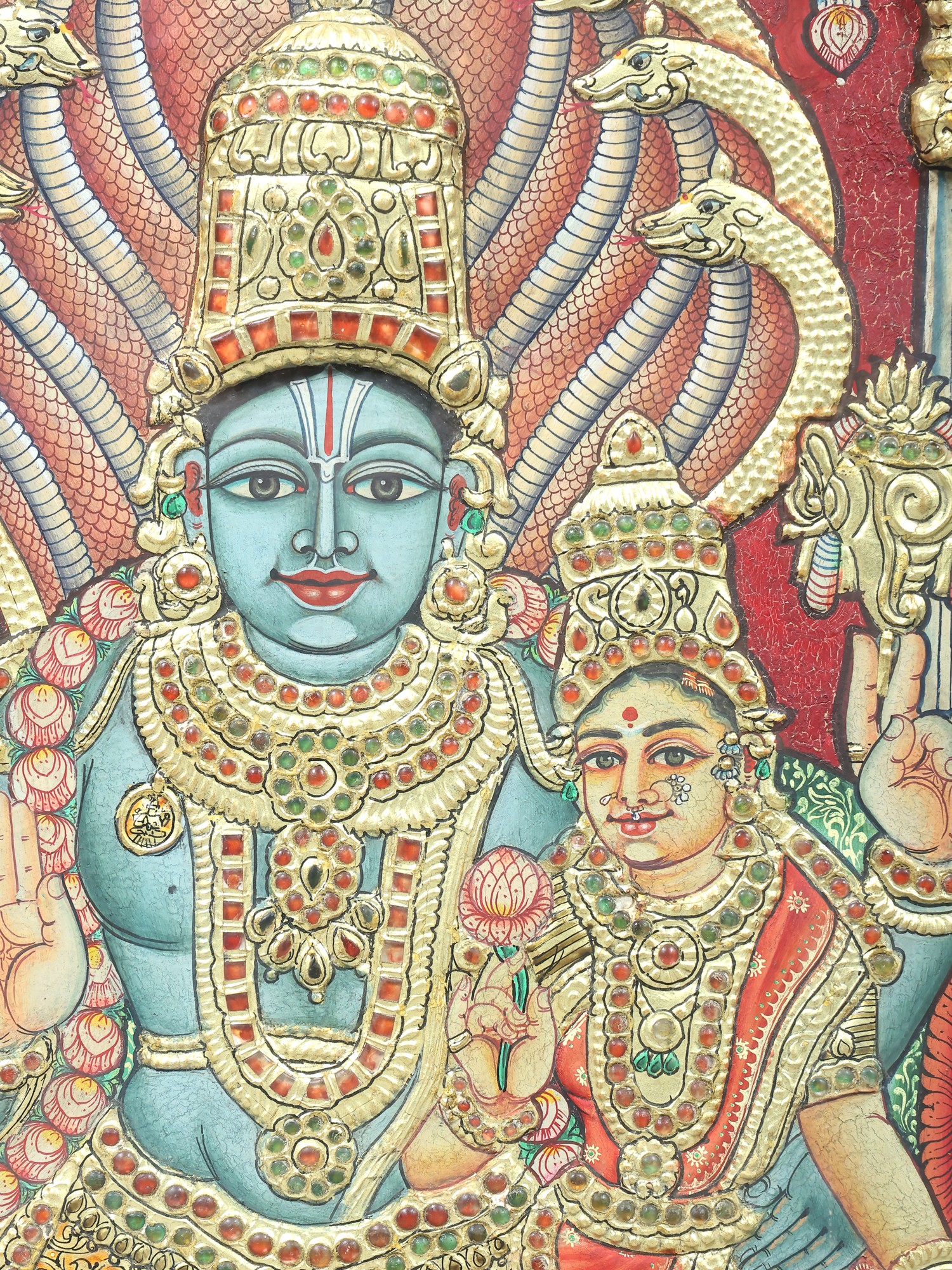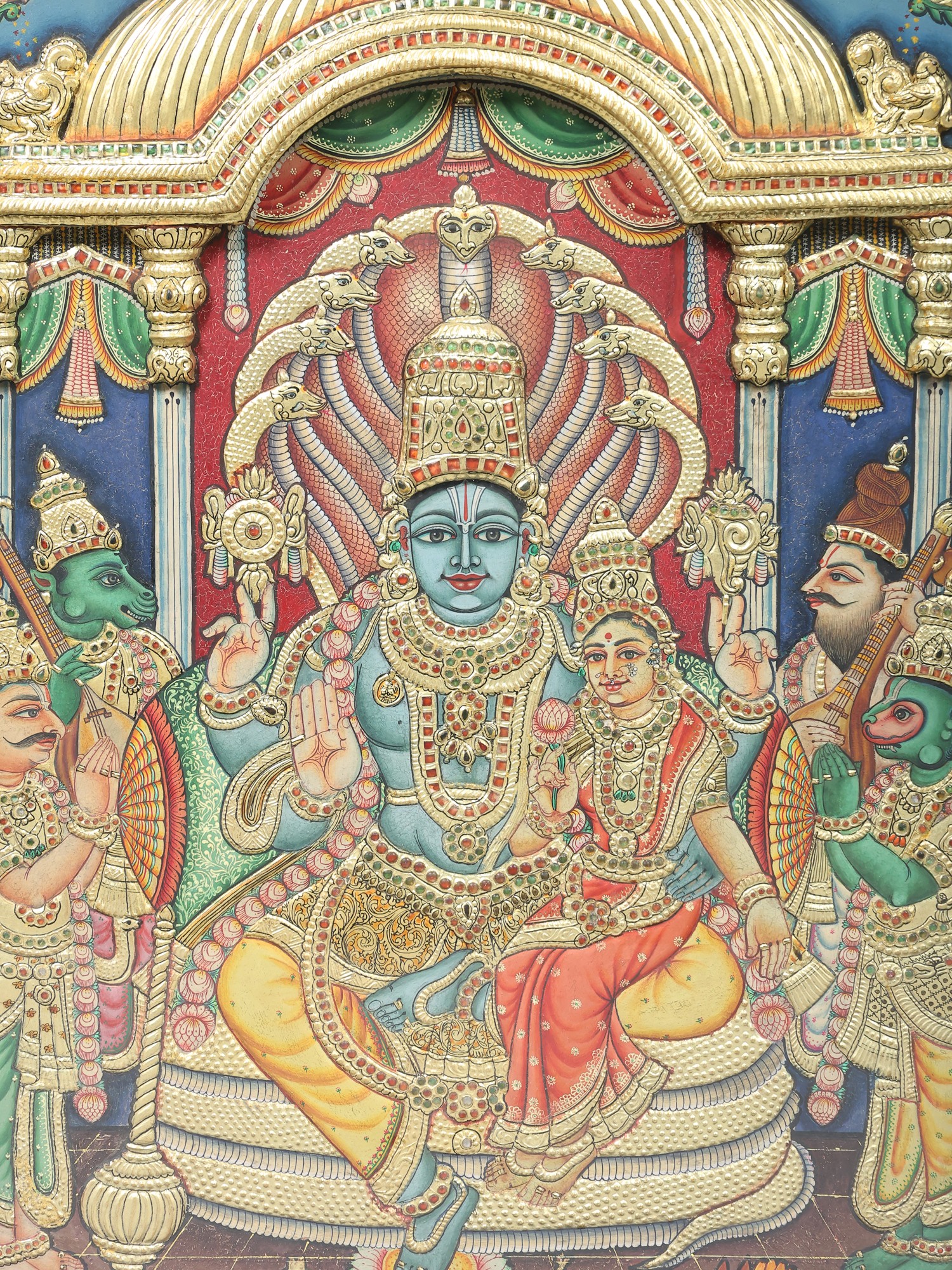Shri Hari Narayan Devi Lakshmi Tanjore Painting | Traditional Colors with 24 Karat Gold | With Frame