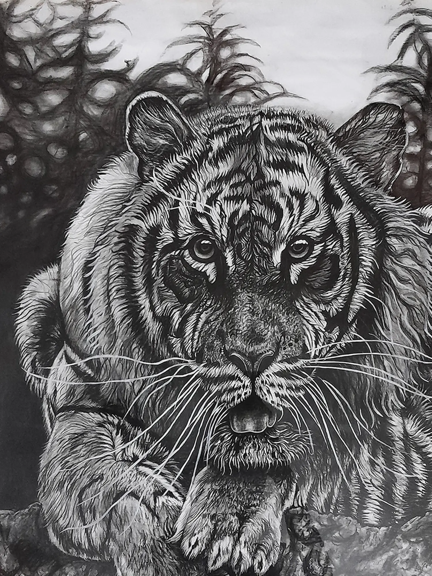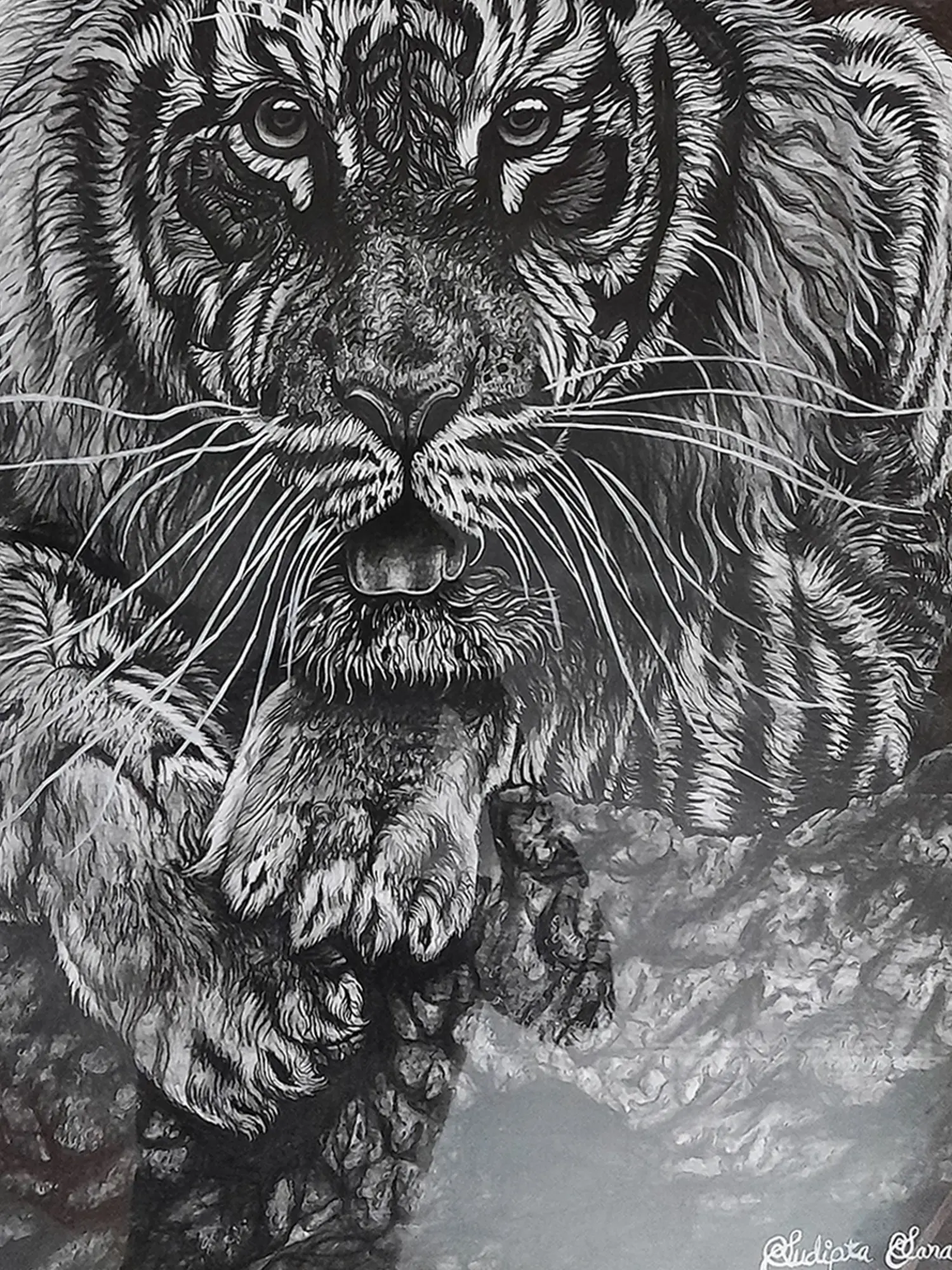 Little Girl With Tiger |Oil On Canvas | By Malhar Ambulgekar