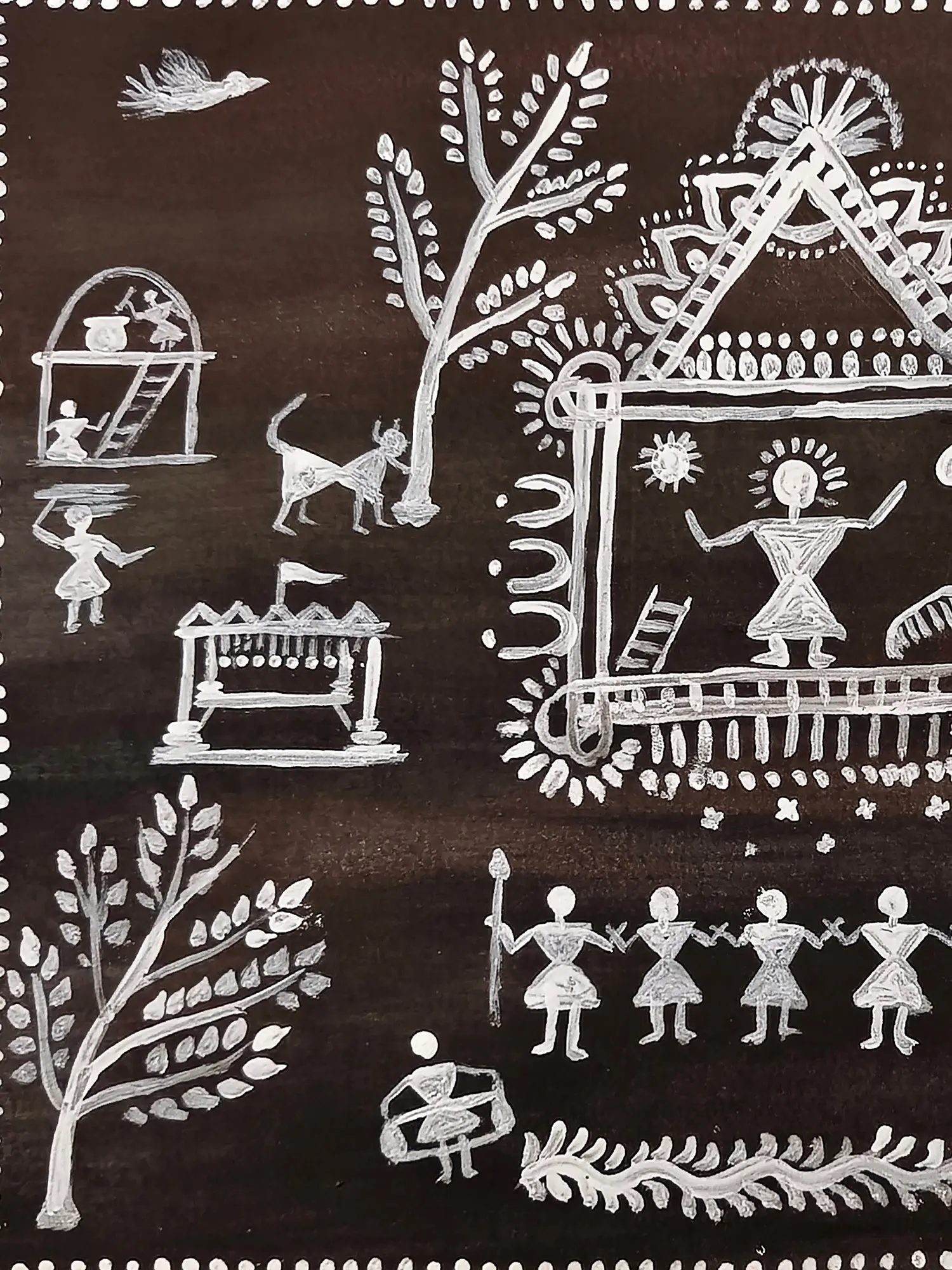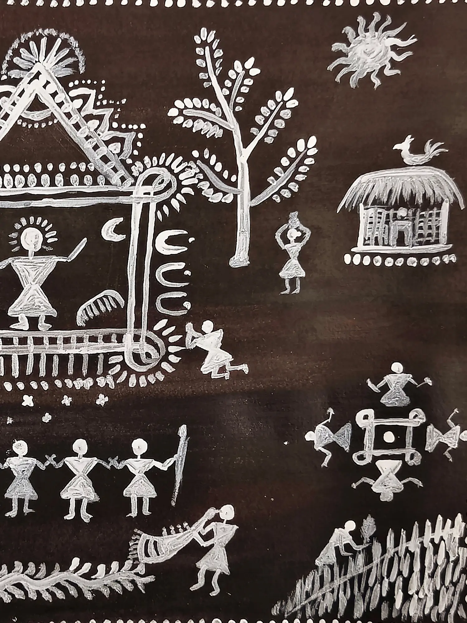 Tribal Warli Painting | Ceramic Dust and Acrylic Art | Poulavi Ghosh