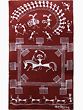 Gaze upon the painting and let your eyes follow the rhythmic movements of the figures. The circular motif at the top evokes the sacred *chowk*, a space prepared for the worship of Palaghata, the mother goddess symbolizing fertility and abundance. Notice the dancers, intertwined in a circle, perhaps celebrating a harvest, a wedding, or another significant event in their community life. Music and merriment pulsate from the figures carrying drums and instruments, inviting you to join their joyous celebration. Below this lively scene, a central figure takes prominence – a horse and rider, armed with a bow and arrows. This imagery can hold multiple interpretations within the Warli worldview. It can represent a hunter, an integral part of the tribe's livelihood, or even a depiction of a deity or mythical figure. The horse, often associated with strength and speed, might symbolize the connection between the earthly and spiritual realms, a conduit for the Warli to connect with their ancestors and deities. The lower portion of the painting presents animals, in a natural procession, walking to join the rest. The stark simplicity belies the depth of symbolism embedded in this artwork. The geometric forms aren't just aesthetic choices; they are symbolic representations of the cosmos, nature, and the interconnectedness of life. Warli art is a reminder that even in simplicity, profound beauty and meaning can be found. By bringing this painting into your home, you're not just acquiring a piece of art; you're embracing a piece of living history and inviting the wisdom of an ancient culture to enrich your space.