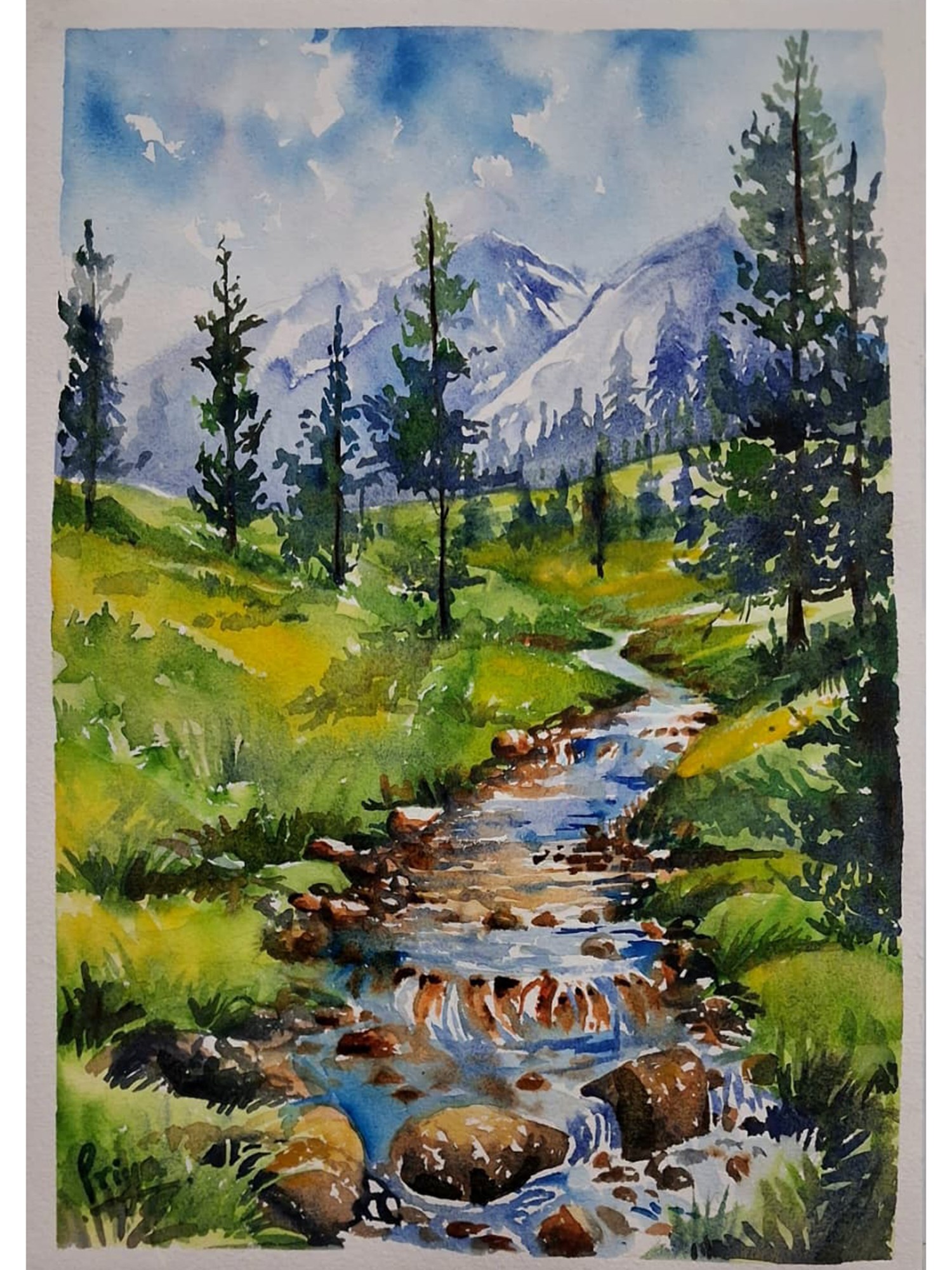 Waterfall Portrait | Watercolor Painting | Kulwinder Singh