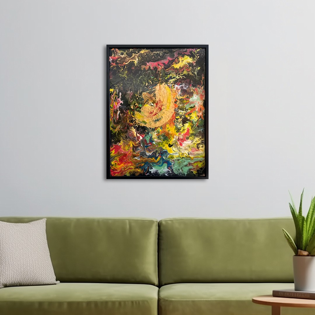 Floating Leaves Abstract Painting with Frame | Mixed Media and Acrylic on Canvas | By Ruchi Gupta