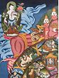 A Thangka is a traditional Tibetan Buddhist painting that usually depicts a Buddhist Deity (Buddha or Bodhisattva), a scene, or a mandala. These paintings are considered important paraphernalia in Buddhist rituals. They are used to teach the life of the Buddha, various lamas, and Bodhisattvas to the monastic students, and are also useful in visualizing the deity while meditating. One of the most important subjects of thangkas is the Bhavacakra (the wheel of life) which depicts the Art of Enlightenment. It is believed that Thangka paintings were developed over the centuries from the murals, of which only a few can be seen in the Ajanta caves in India and the Mogao caves in Gansu Province, Tibet. Thangkas are painted on cotton or silk applique and are usually small in size. The artist of these paintings is highly trained and has a proper understanding of Buddhist philosophy, knowledge, and background to create a realistic and bona fide painting.