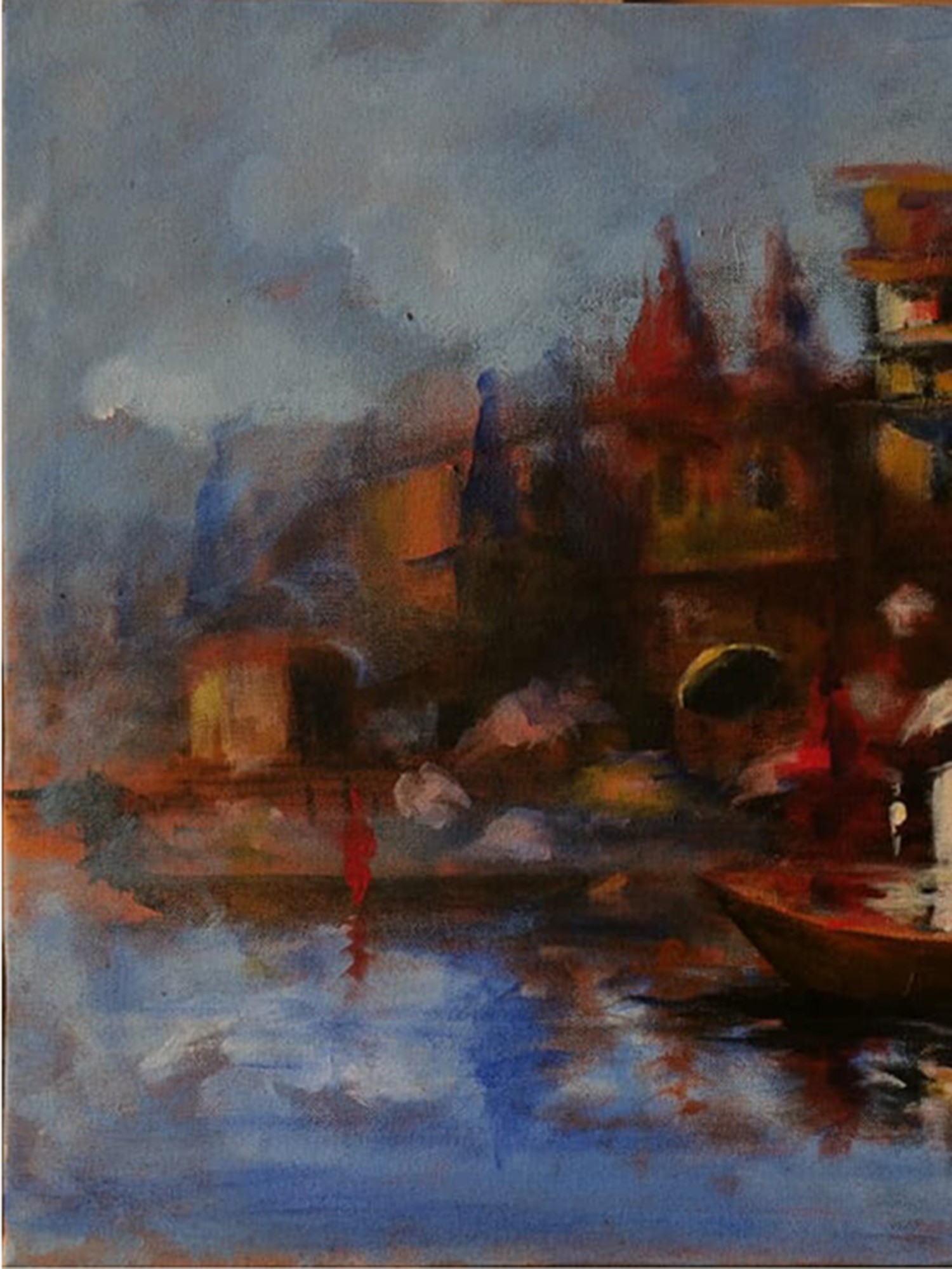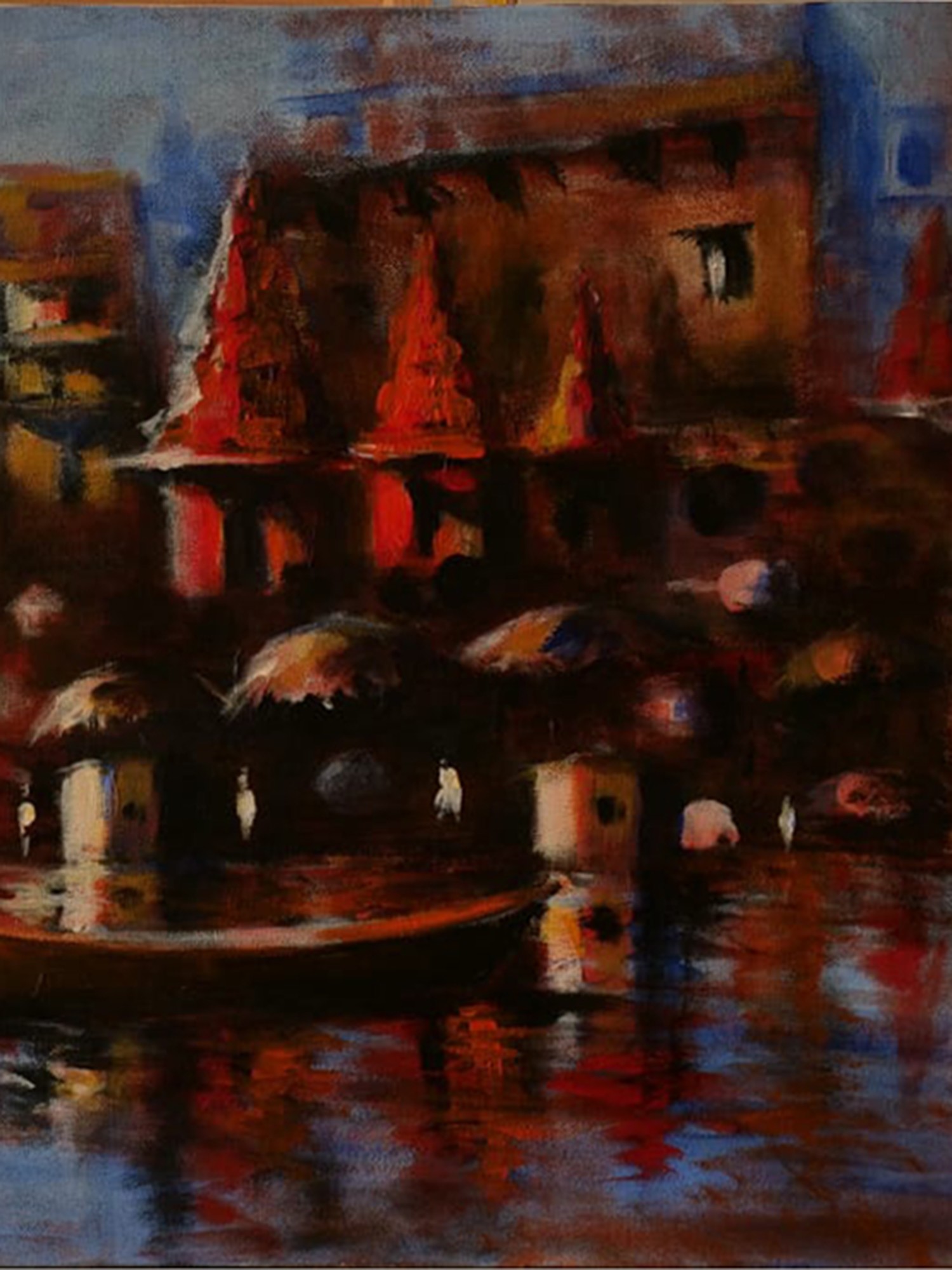 Whispers of the Sacred River | Acrylic Painting on Canvas | Unframed | by Raj Kumar Singh