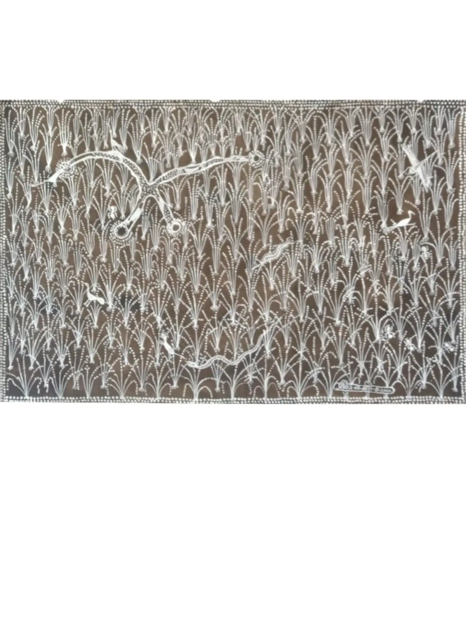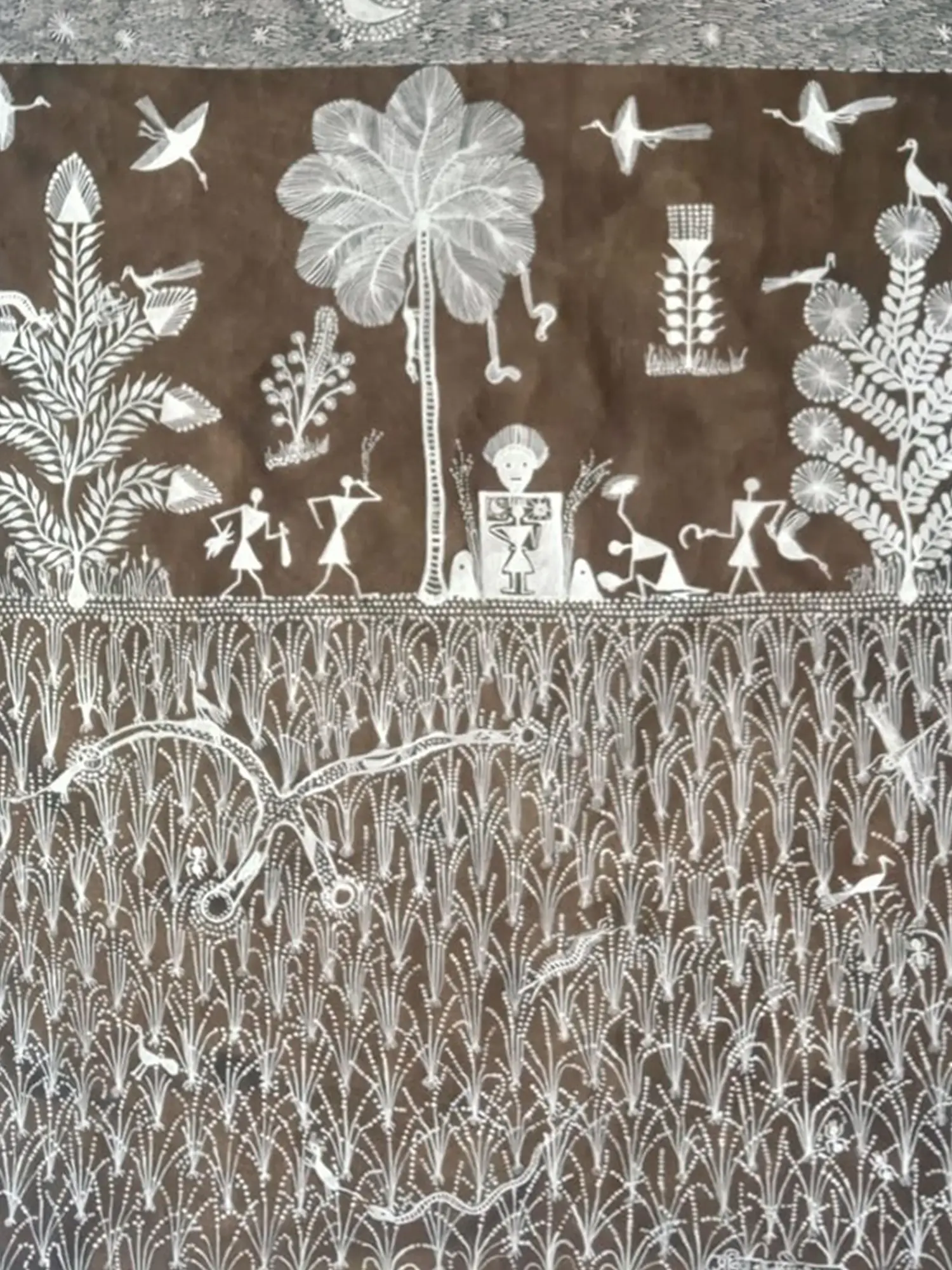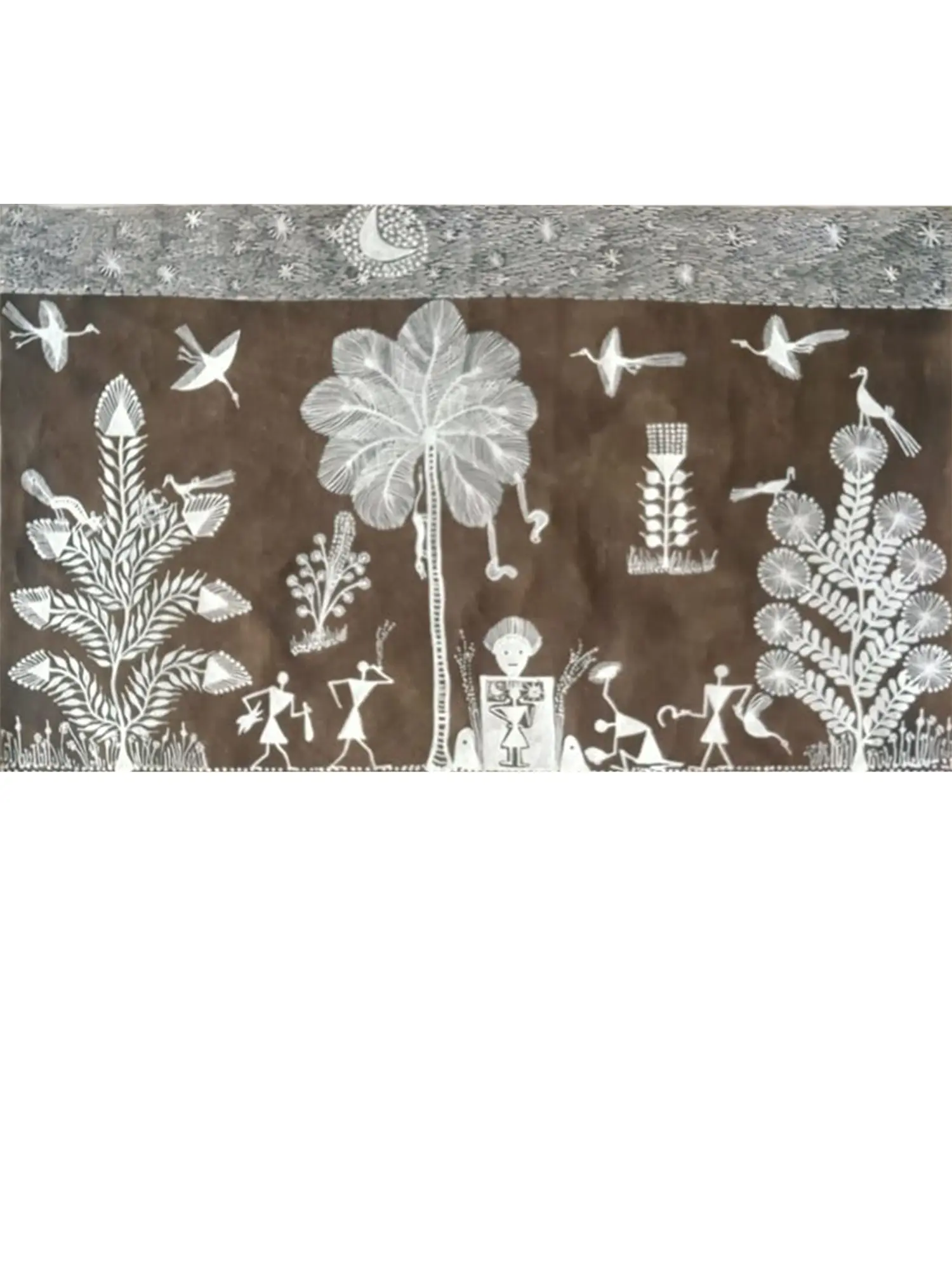 Nature’s Life - Warli Art by Pravin Mhase | Cow Dung and Acrylic on Manjarpat Cloth