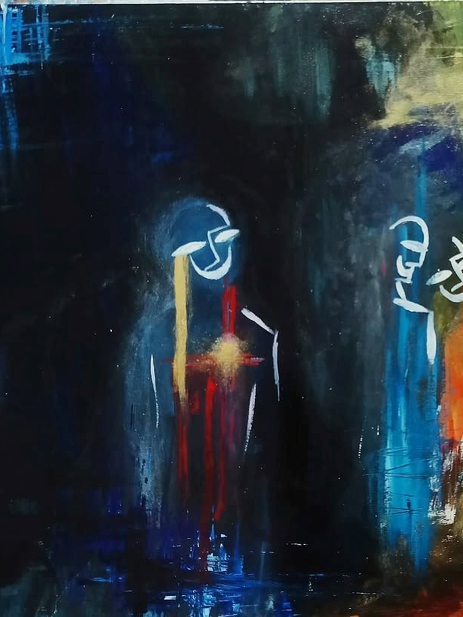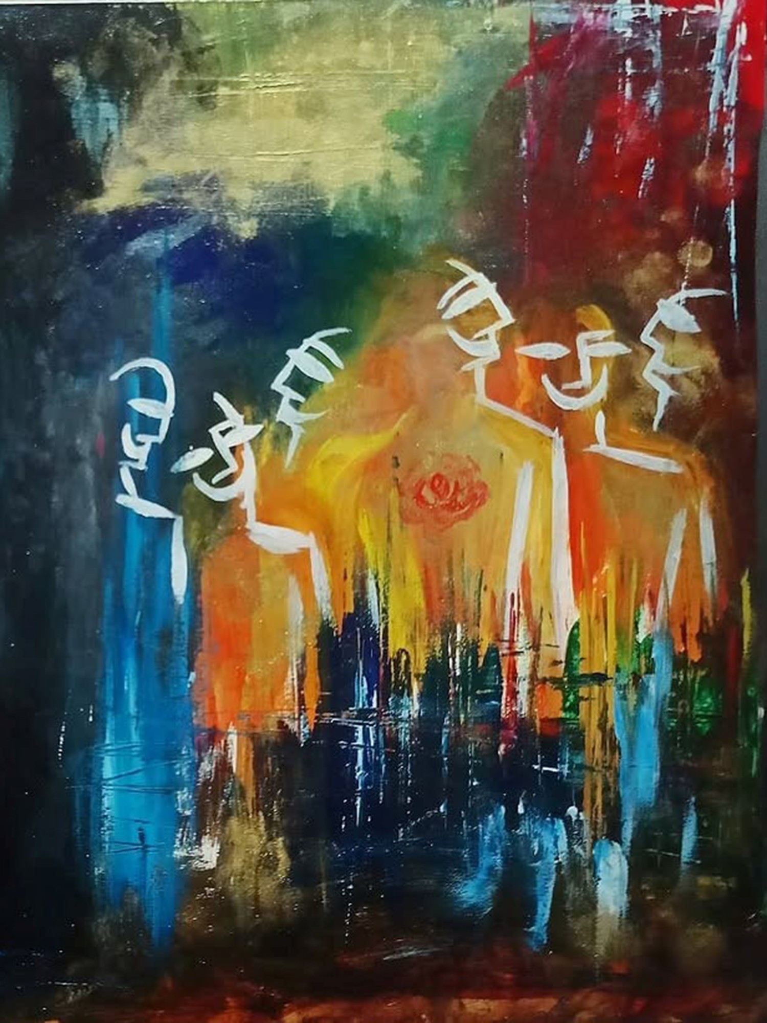 Devotee Surrounded by Spiritual Vibes | Oil on Canvas | Handmade Painting