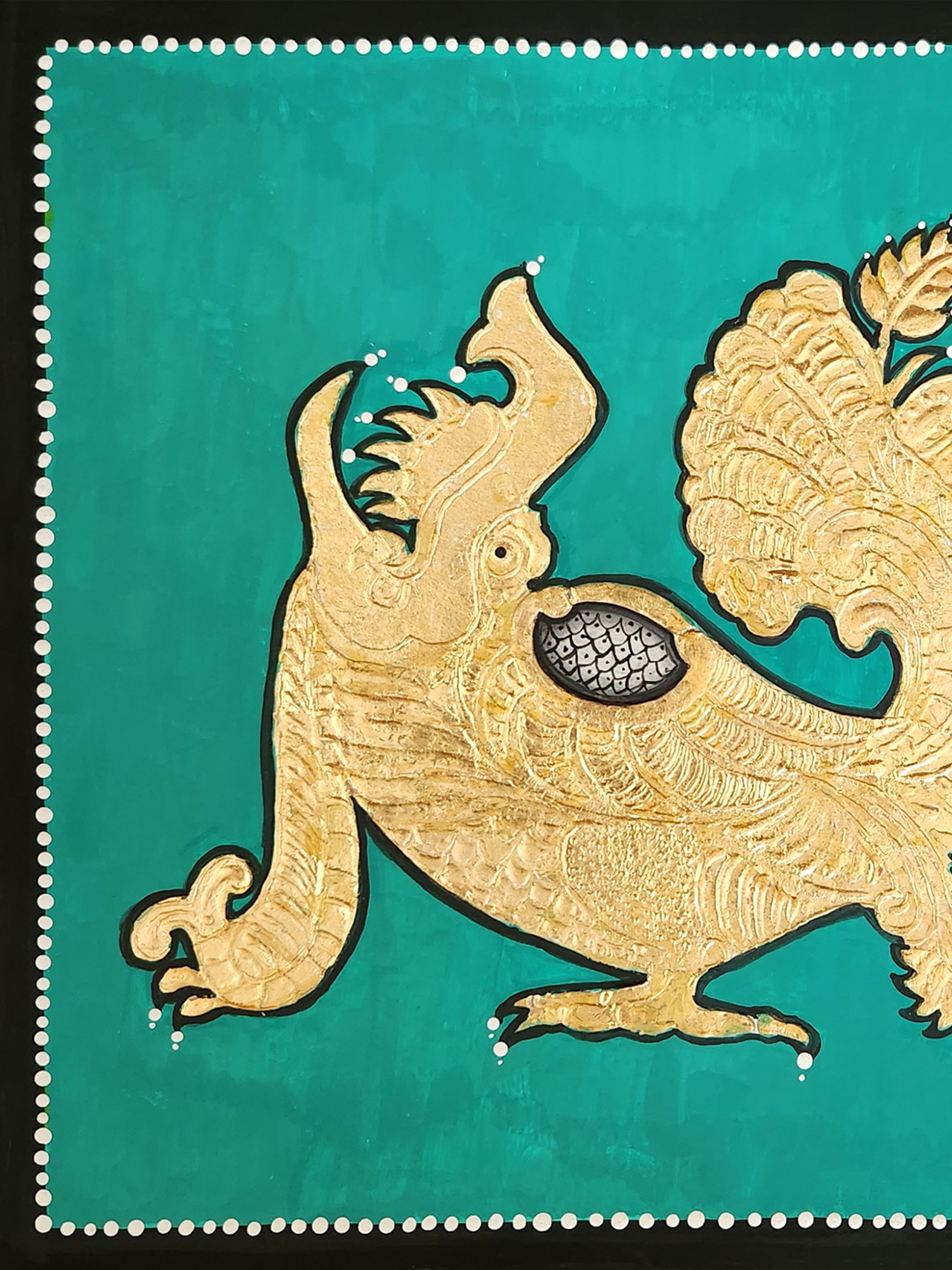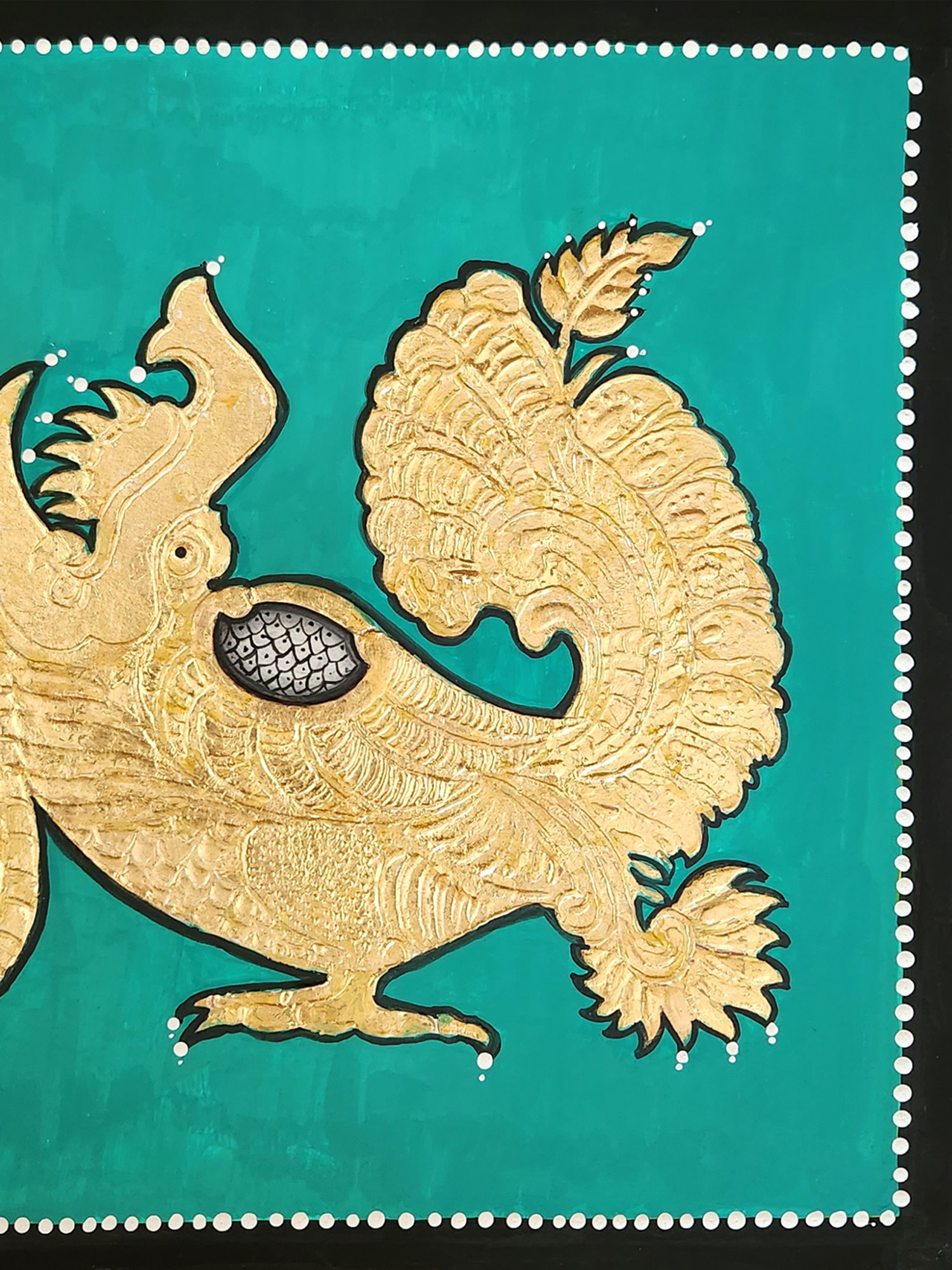 Invite the blessings of prosperity and protection into your living space with this exquisite Yali painting. The art comes ready to hang and is framed, ready to grace your walls with its timeless elegance. Its size allows it to be a focal point in any room, from living spaces and bedrooms to offices and meditation areas. This artwork is not only a visual delight but also a potent symbol of good fortune and security, according to ancient beliefs. This painting serves as a constant reminder of the harmonious blend of strength and serenity. Let this radiant artwork become a cherished heirloom in your home, bringing a touch of ancient wisdom and aesthetic beauty to your everyday life.
