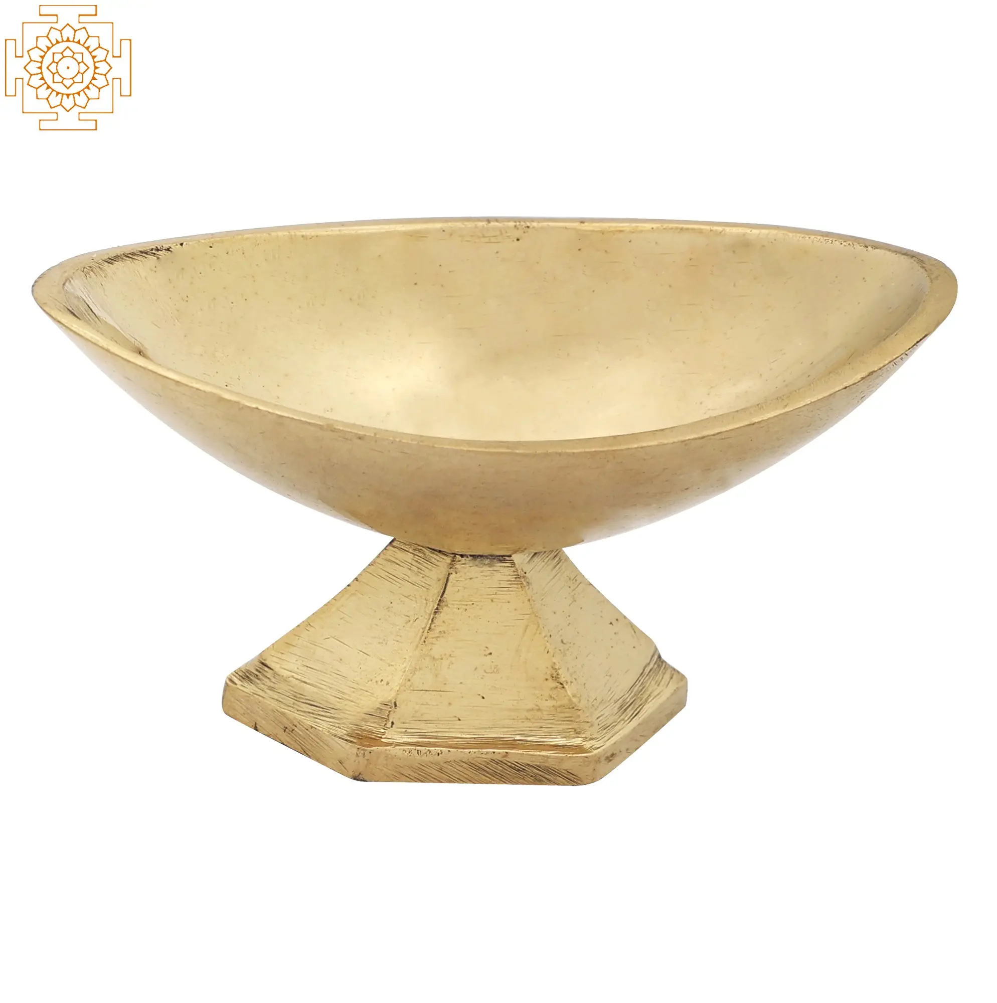 Shiva worshipers see the Vibhooti or Vibhuti as the sacred ash. Lord Shiva is said to apply Vibhooti on himself because it represents detachment and emptiness. This Vibhooti Cup, constructed of brass and equipped with a sturdy pedestal, is used to store Lord Shiva's blessings in the form of Vibhooti. The boat-shaped container can hold a substantial amount of Vibhooti. It is a multifunctional jar that may hold Kumkum or turmeric for ceremonial purposes.
