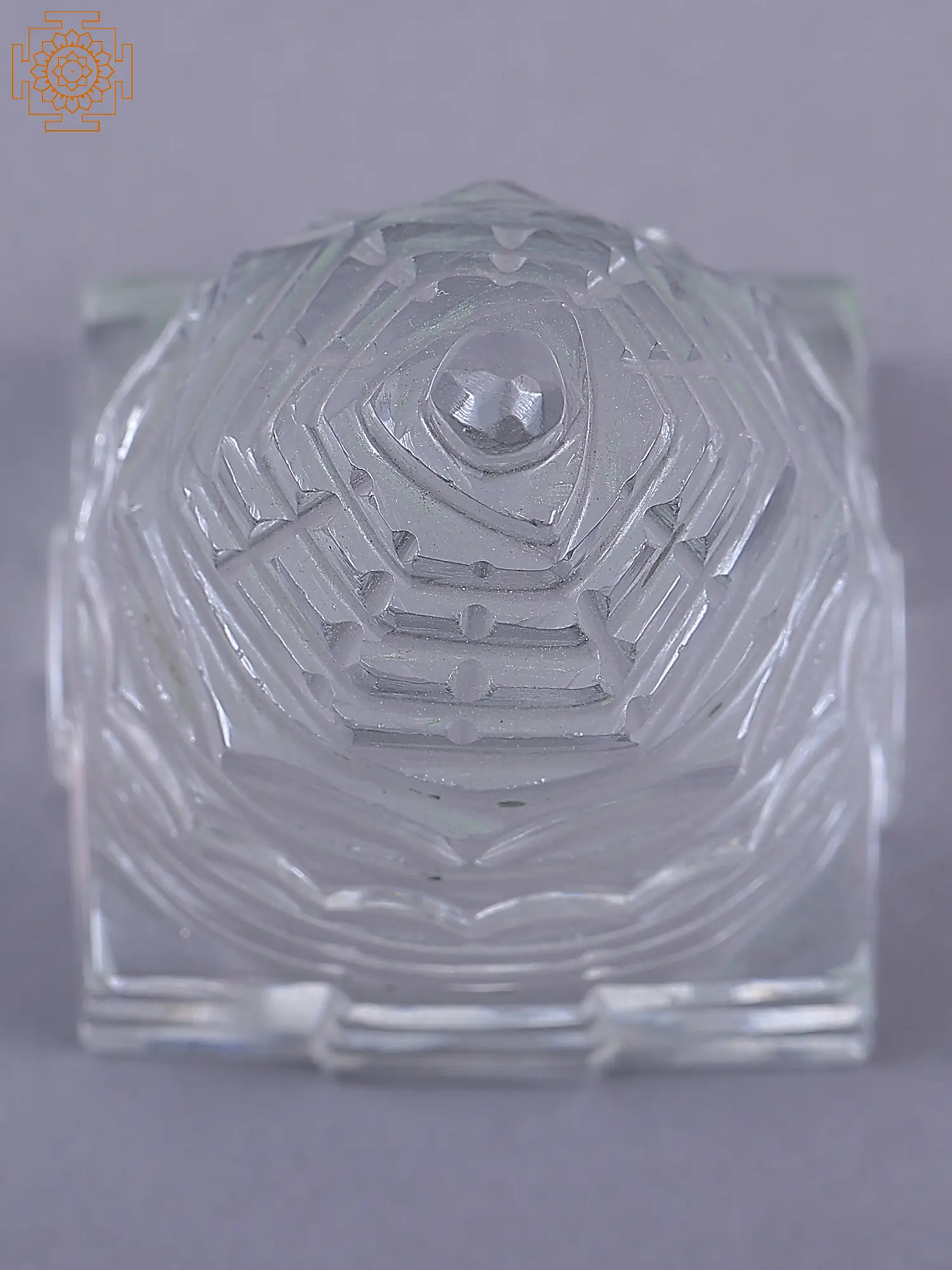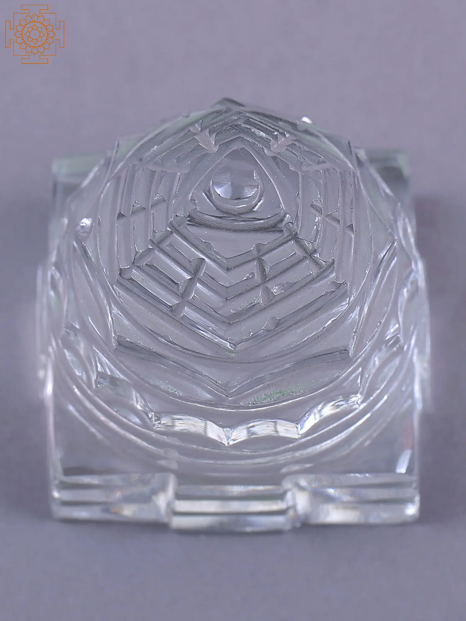 This crystal Shri Yantra is shaped like Mount Meru, the sacred five-peaked mountain. It acts as a conduit for positive energy to enter a home. It is commonly used. A crystal Shri Yantra installed at a store or office offers considerable commercial benefits.
