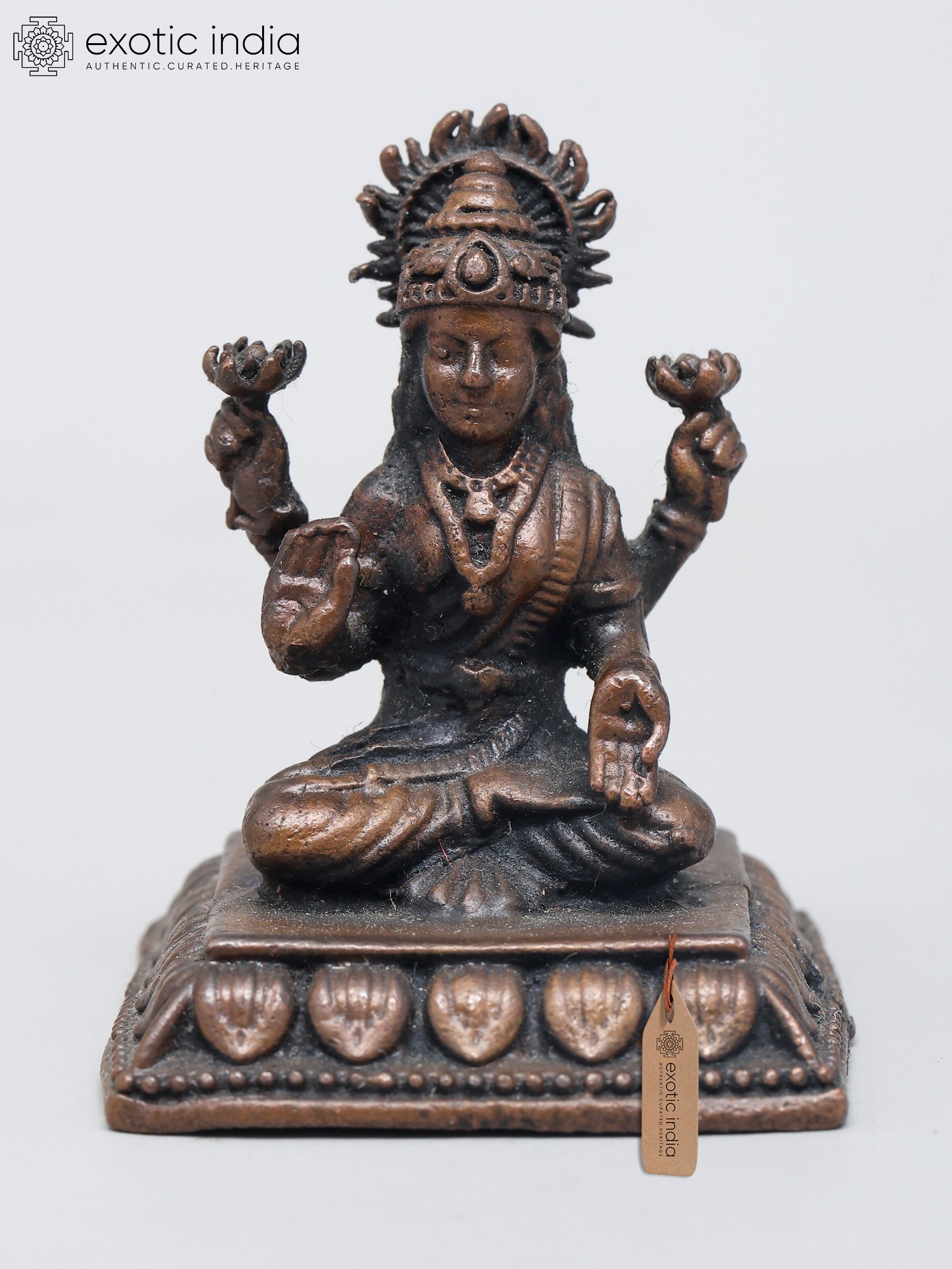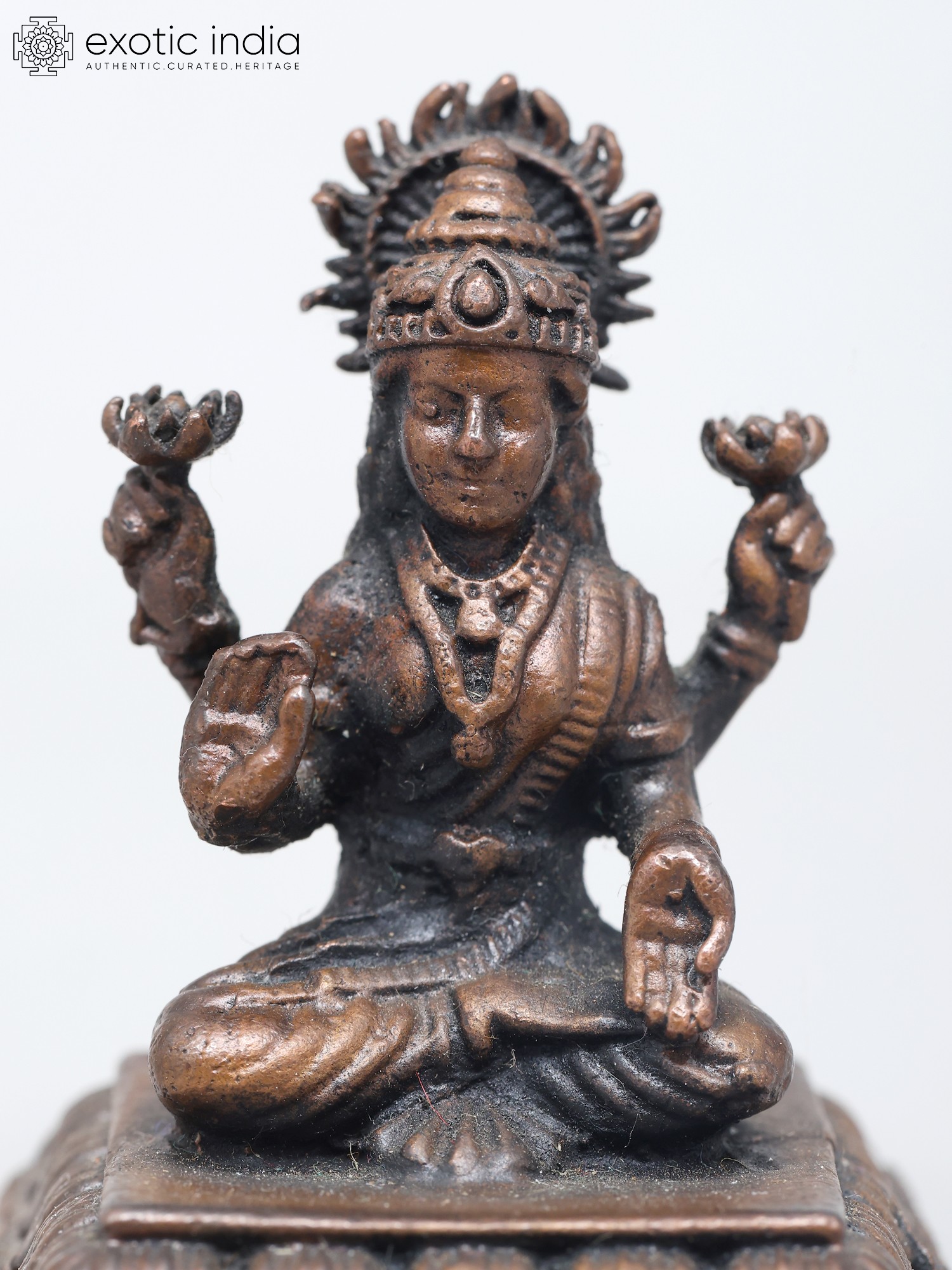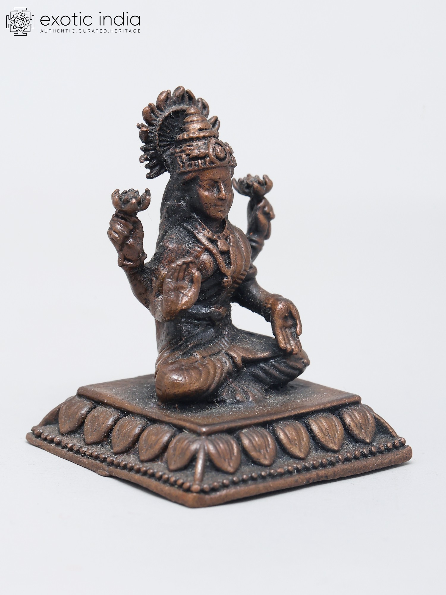 2" Small Sitting Goddess Lakshmi | Copper Statue