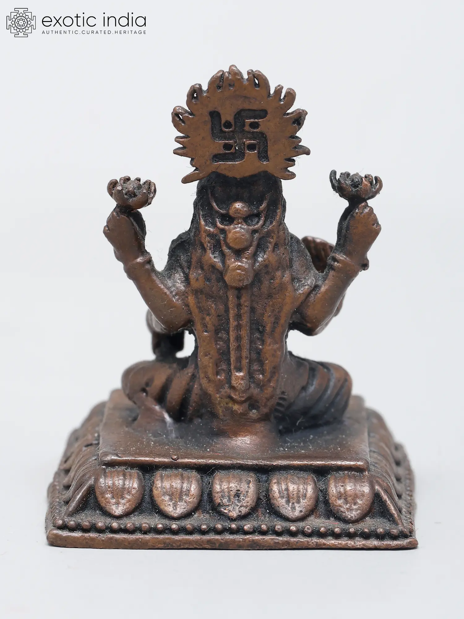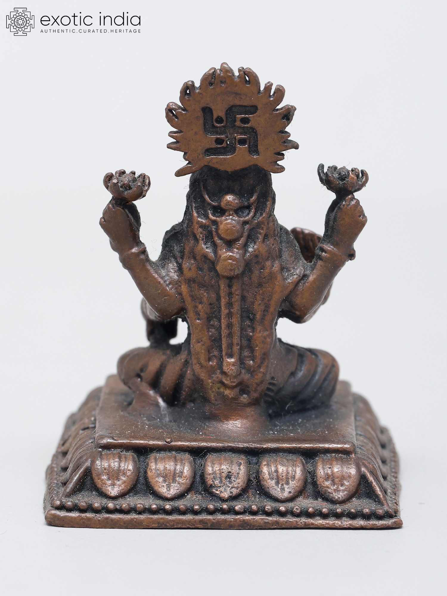 5" Small Lord Narasimha Seated on Serpent Throne with Devi Lakshmi | Copper Statue