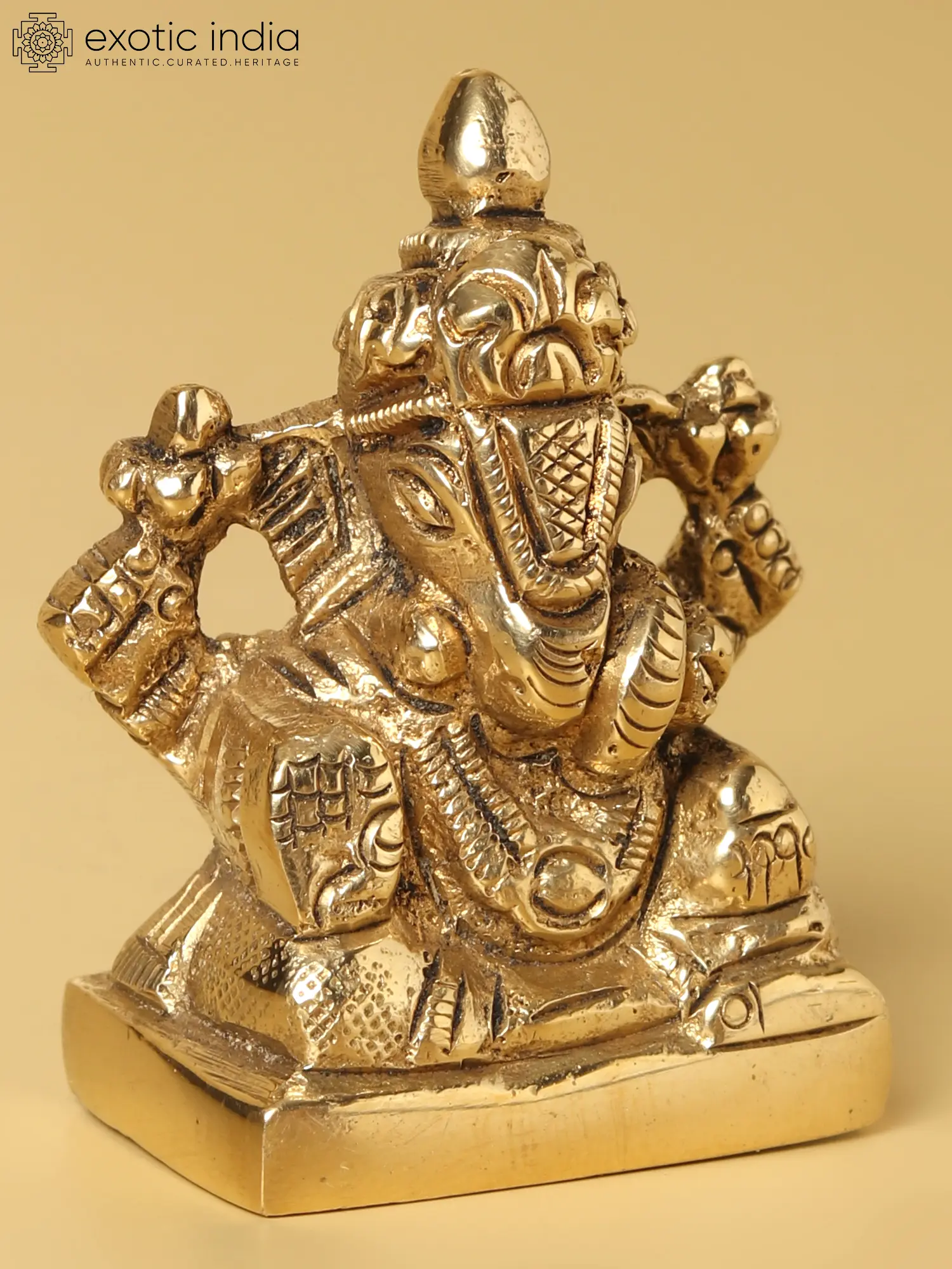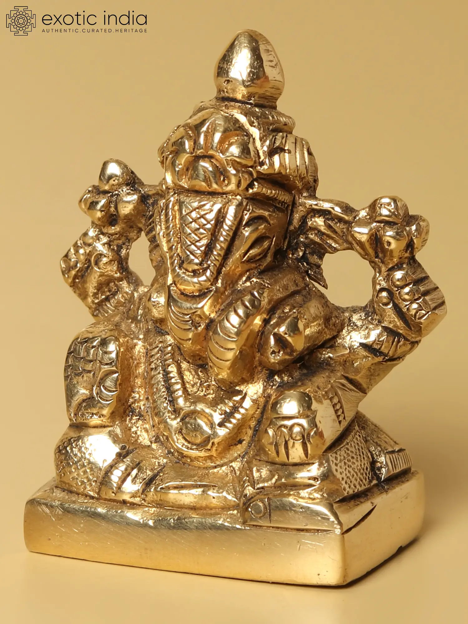 In the realm of devotion, Lord Ganesha, the Deva of intellect and Wisdom, and the divine embodiment of auspiciousness, sits in eternal serenity upon a pedestal. His enchanting form captivates the soul. With a benevolent grace, his right hand assumes the “Ashirwad Mudra”, a gesture of boundless blessings, while his left hand cradles a “Modak”, the sweet nectar of divine wisdom. Worshipping this form of Ganesha bestows a cascade of blessings upon One’s life. This artwork, meticulously crafted in brass, signifies the bestowal of blessings, clearing the path of obstacles and showering devotees with prosperity, success, and guidance.