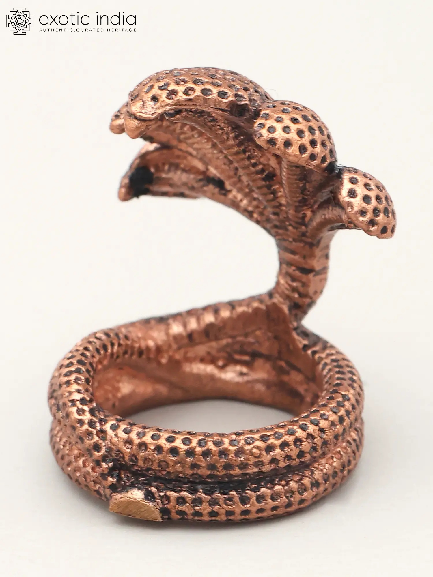 4" Small Lord Ganesha Seated on Five Hooded Serpent | Copper Statue