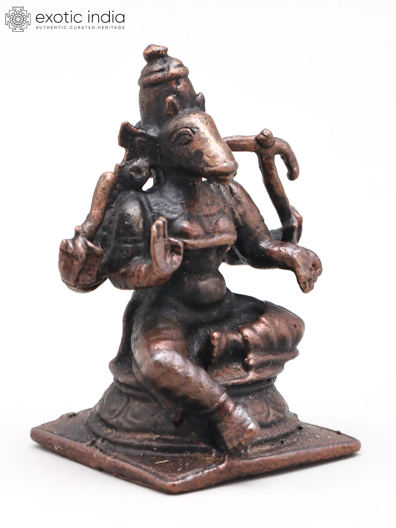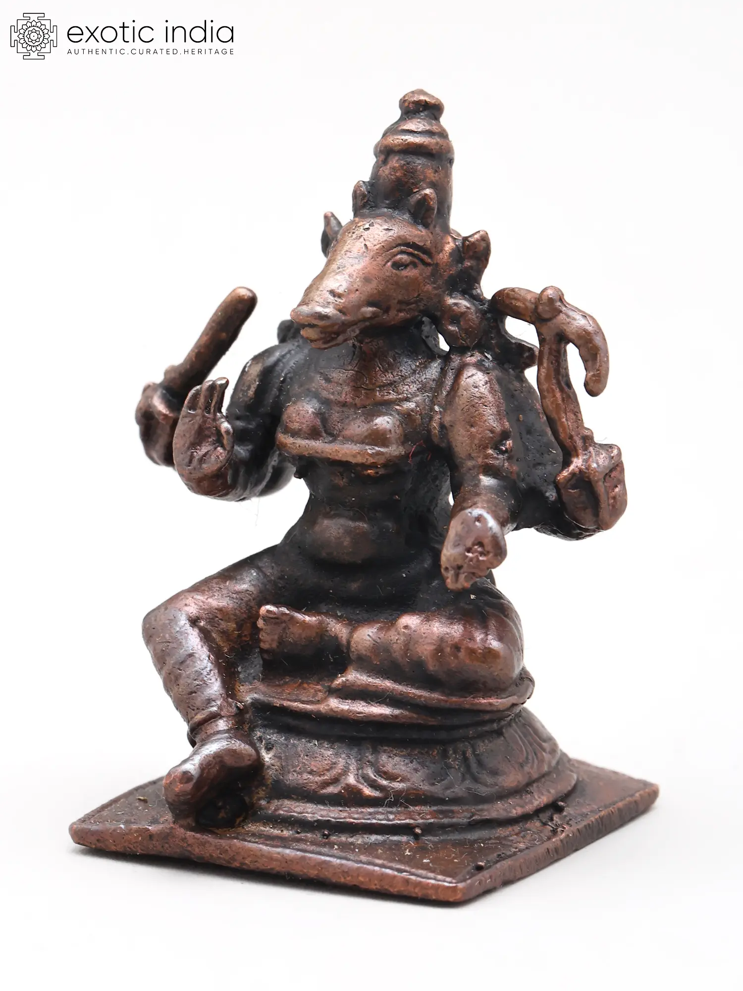 4" Small Sitting Lord Varaha with Goddess Lakshmi | Copper Statue
