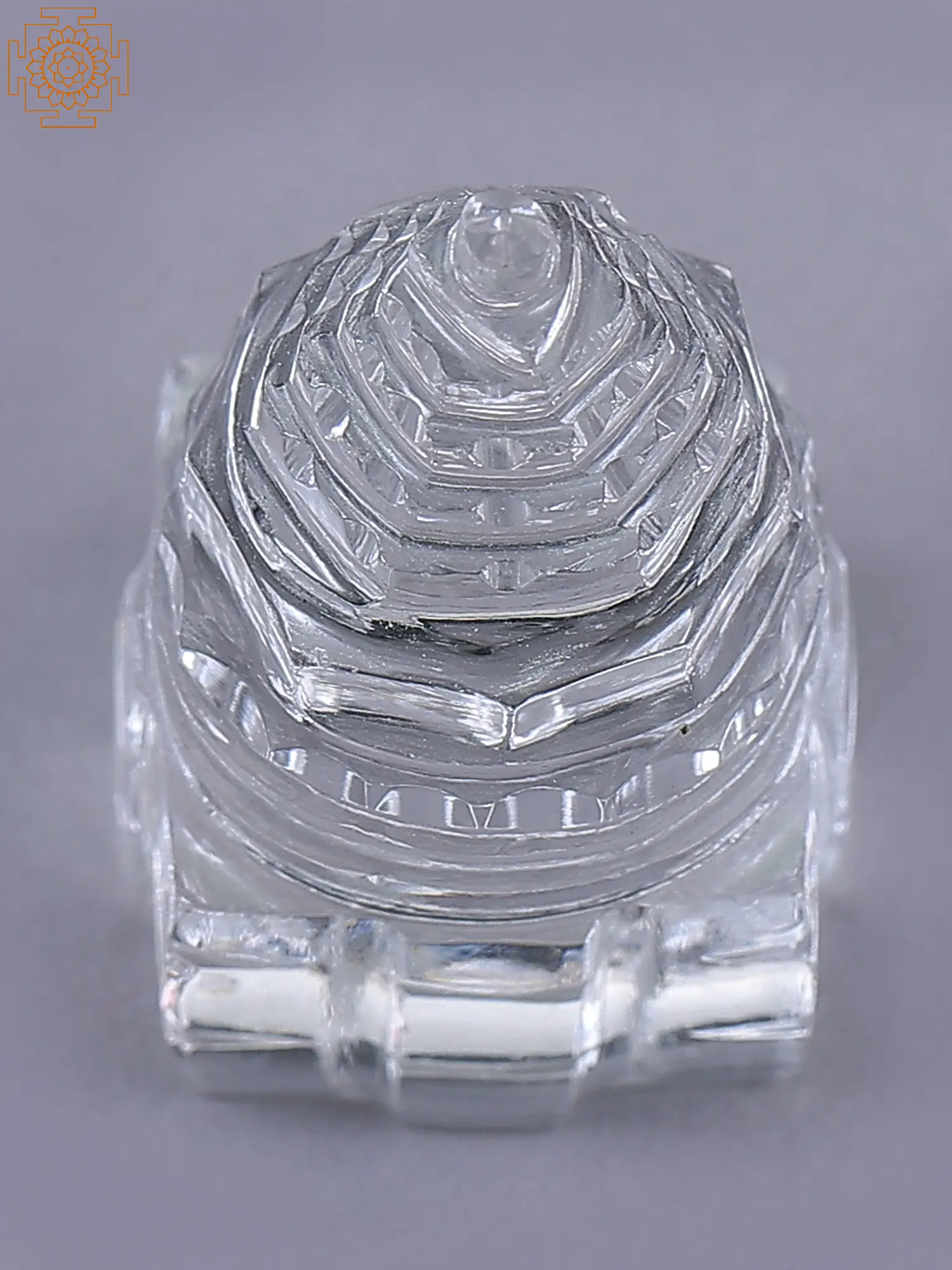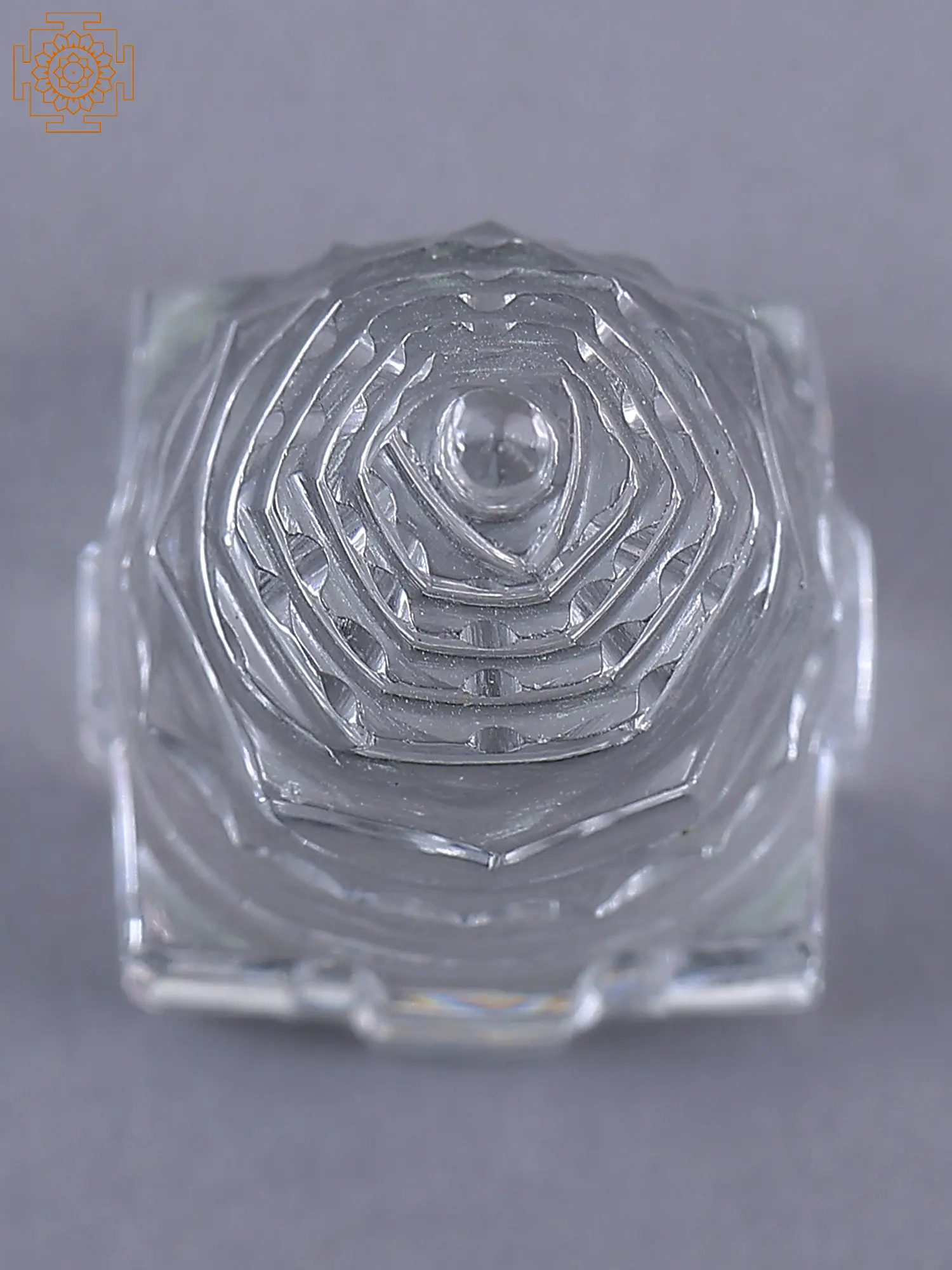 This small Shri Yantra statue, intricately carved from crystal, is a sacred and revered object in Hindu and Buddhist spirituality. It depicts the venerable Shri Yantra geometric pattern in three-dimensional form. This crystal representation embodies the cosmic and divine energies, serving as a powerful tool for meditation, manifestation, and spiritual growth. Its transparent, radiant appearance symbolizes purity and clarity of mind. Displayed or used in rituals, it fosters a sense of spiritual harmony and invites positive energies into one's life.