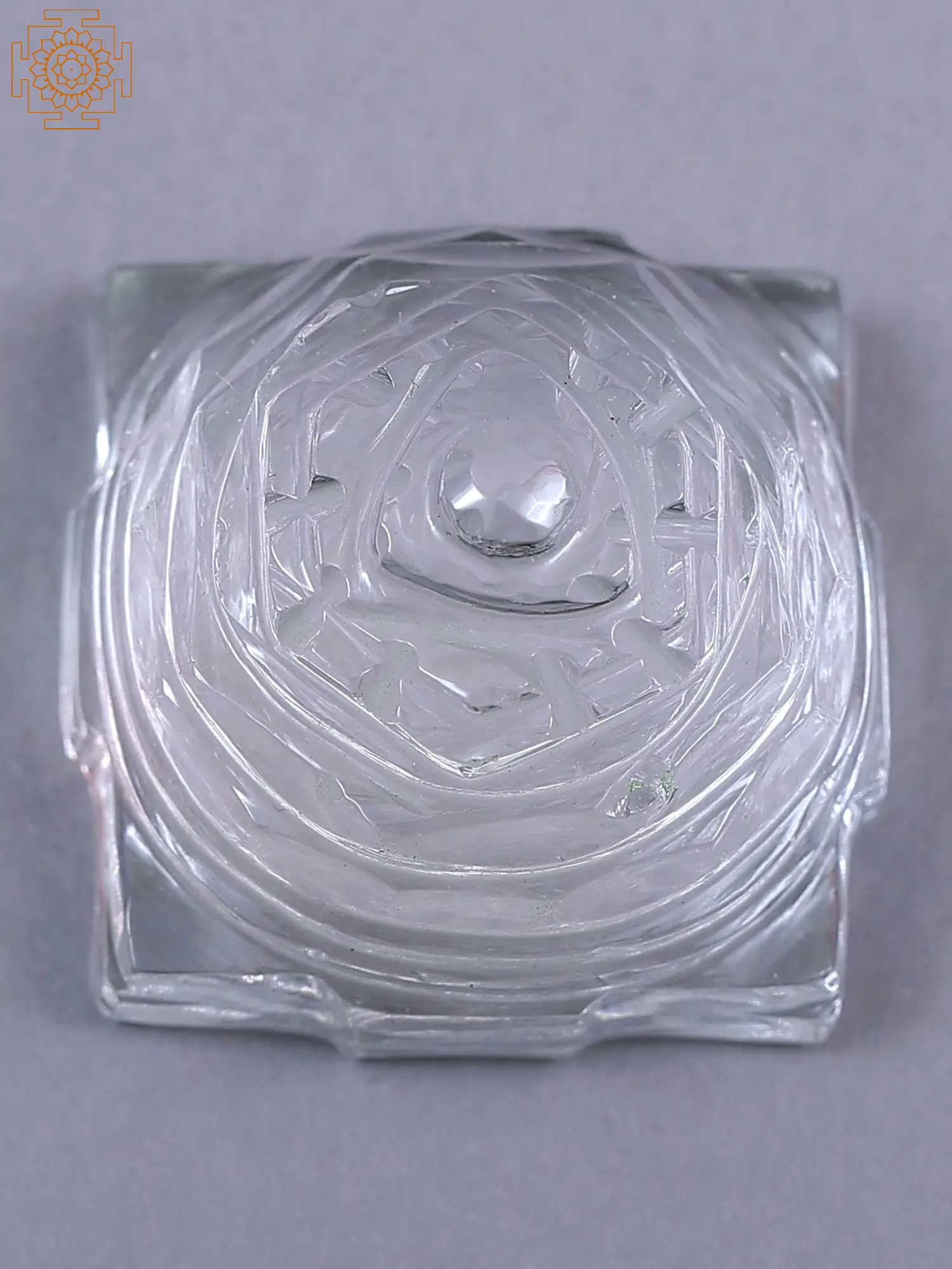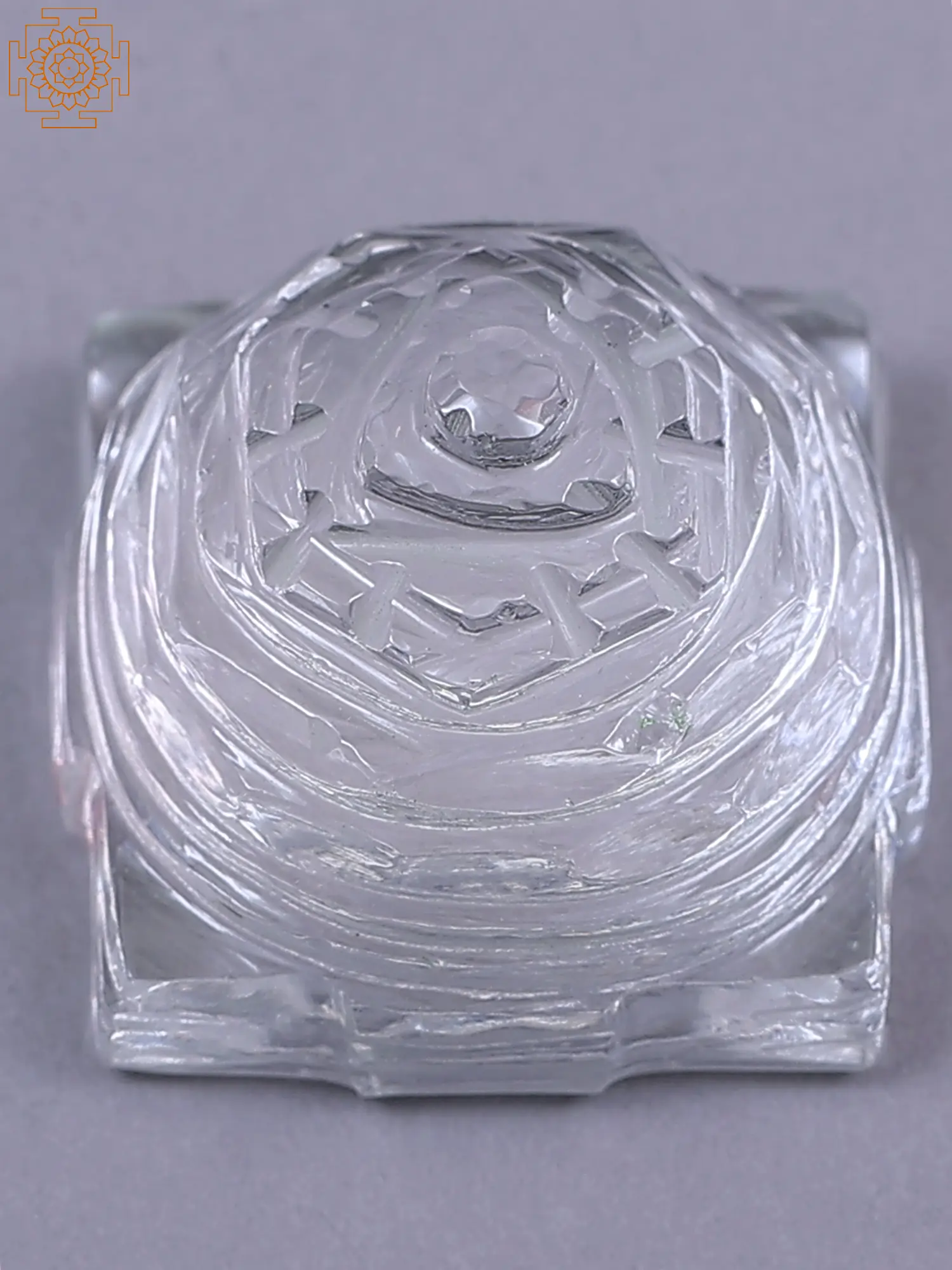 This Shree Yantra is a sacred geometric statue crafted from crystal. Its intricate design comprises a stair-like structure depicting Mount Meru, a divine mountain. The yantra holds great significance in Hindu and Buddhist spirituality, serving as a meditation tool to enhance focus and invite positive energies. Its use is believed to bring harmony, prosperity, and spiritual enlightenment, making it a revered symbol for achieving holistic well-being and manifesting one's desires.