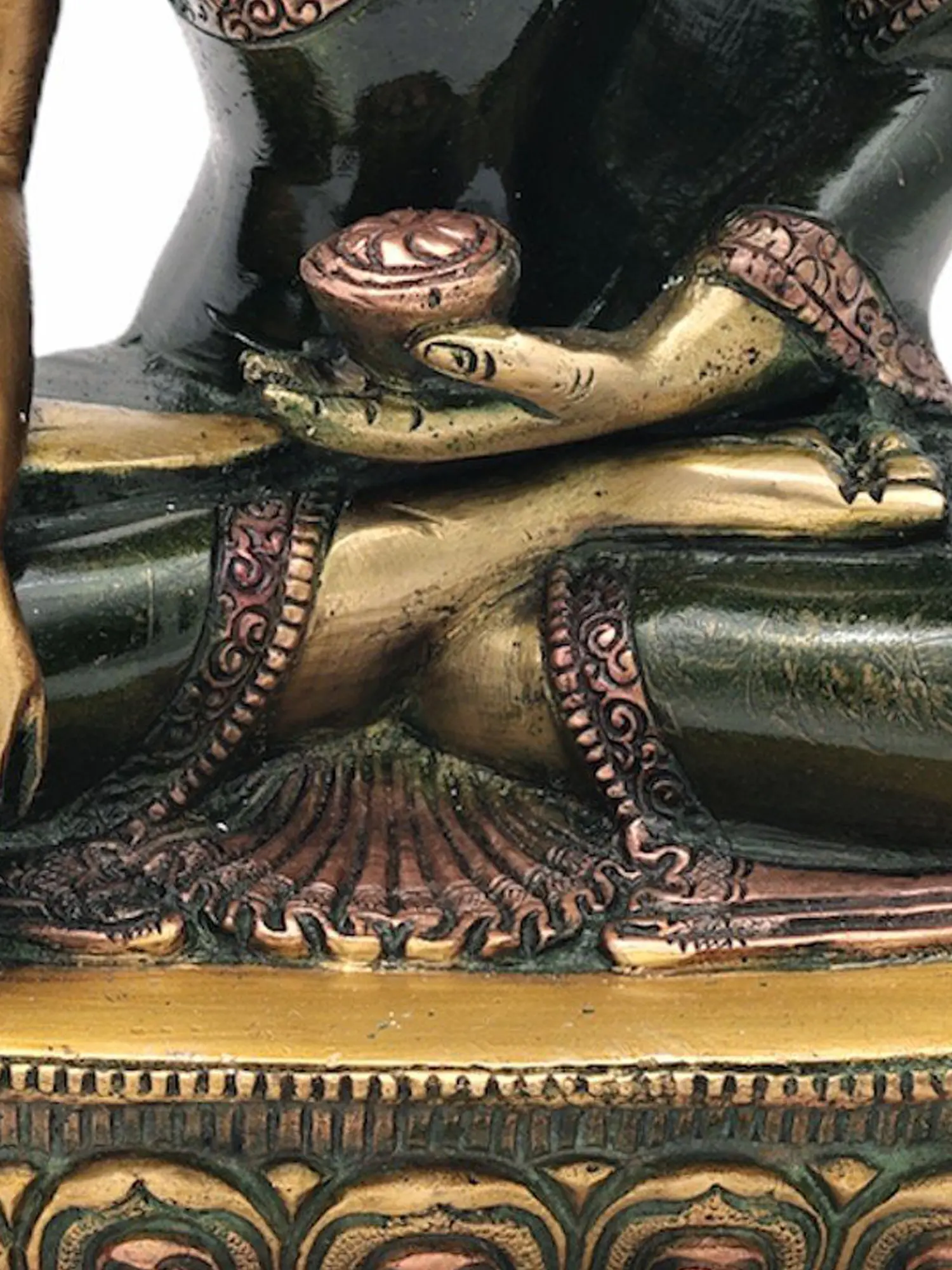 10.5" Buddha Brass Statue | Lord Buddha in Mara Vijay Mudra Brass Statue | Medicine Buddha | Handmade | Made In India