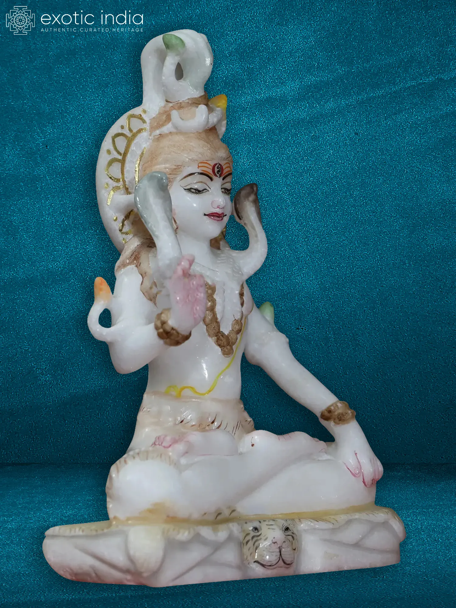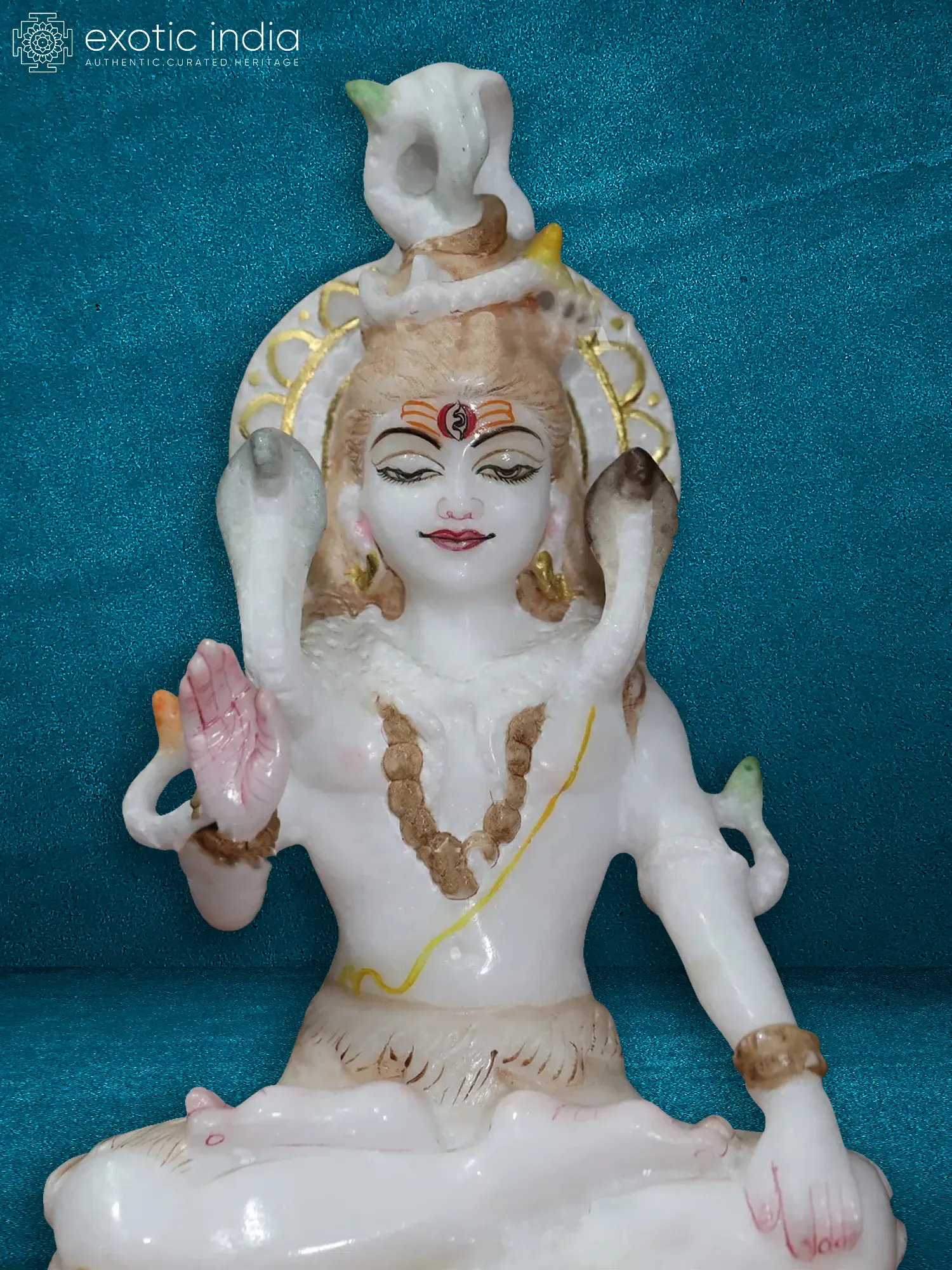 12" Nandi Waiting of Lord Shiva | White Makrana Marble Sculpture