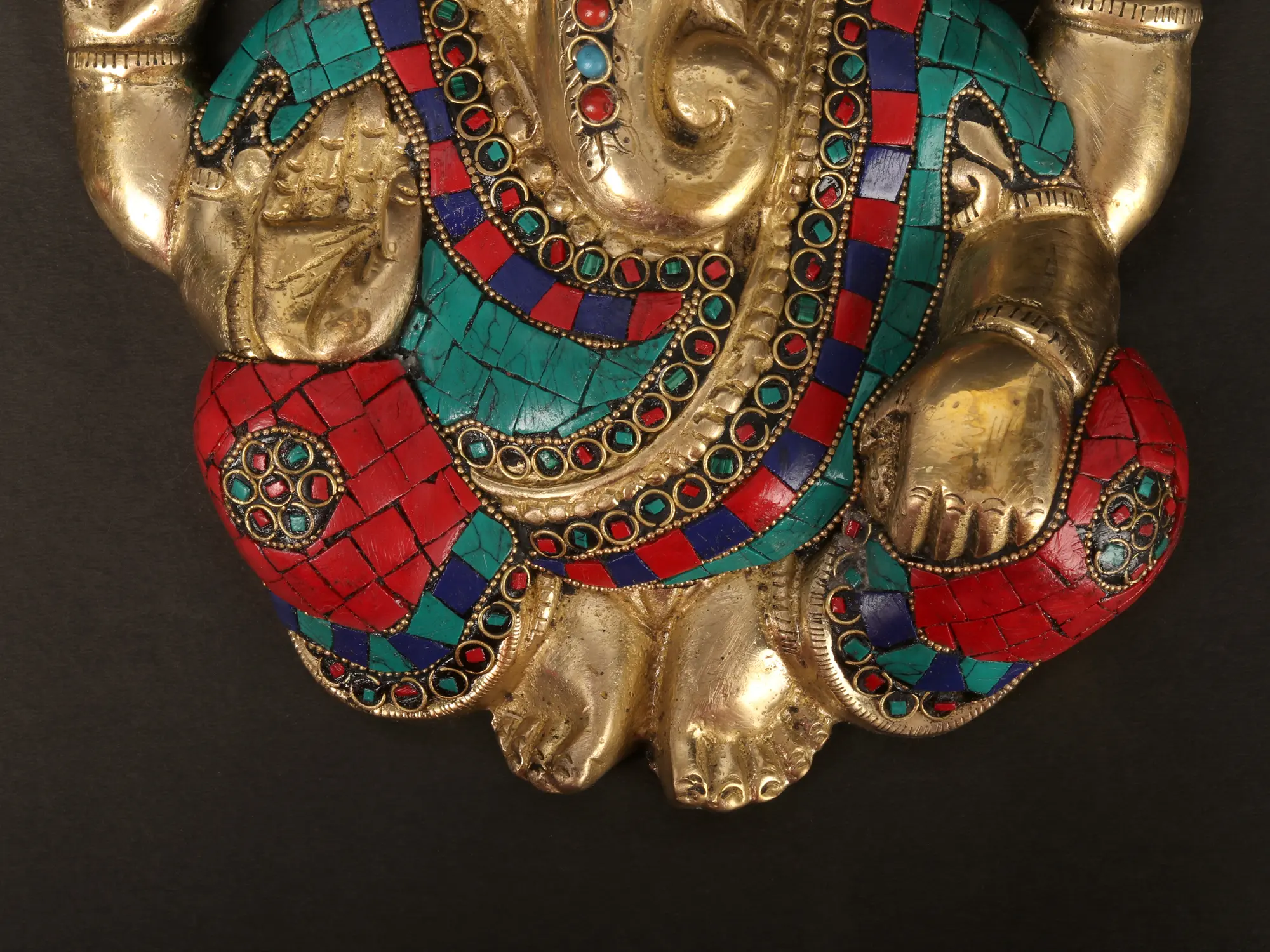 11" Brass Stylized Wall Hanging Ganesha Idol on Mushak Sawari