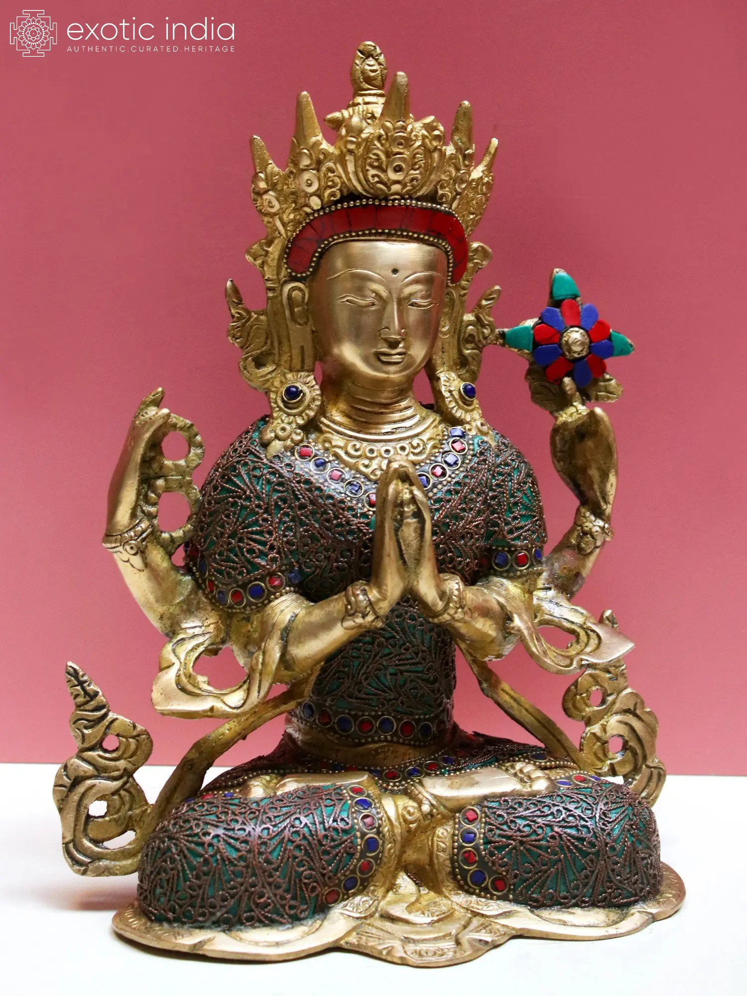 10" Brass Chenrezig with Inlay Work