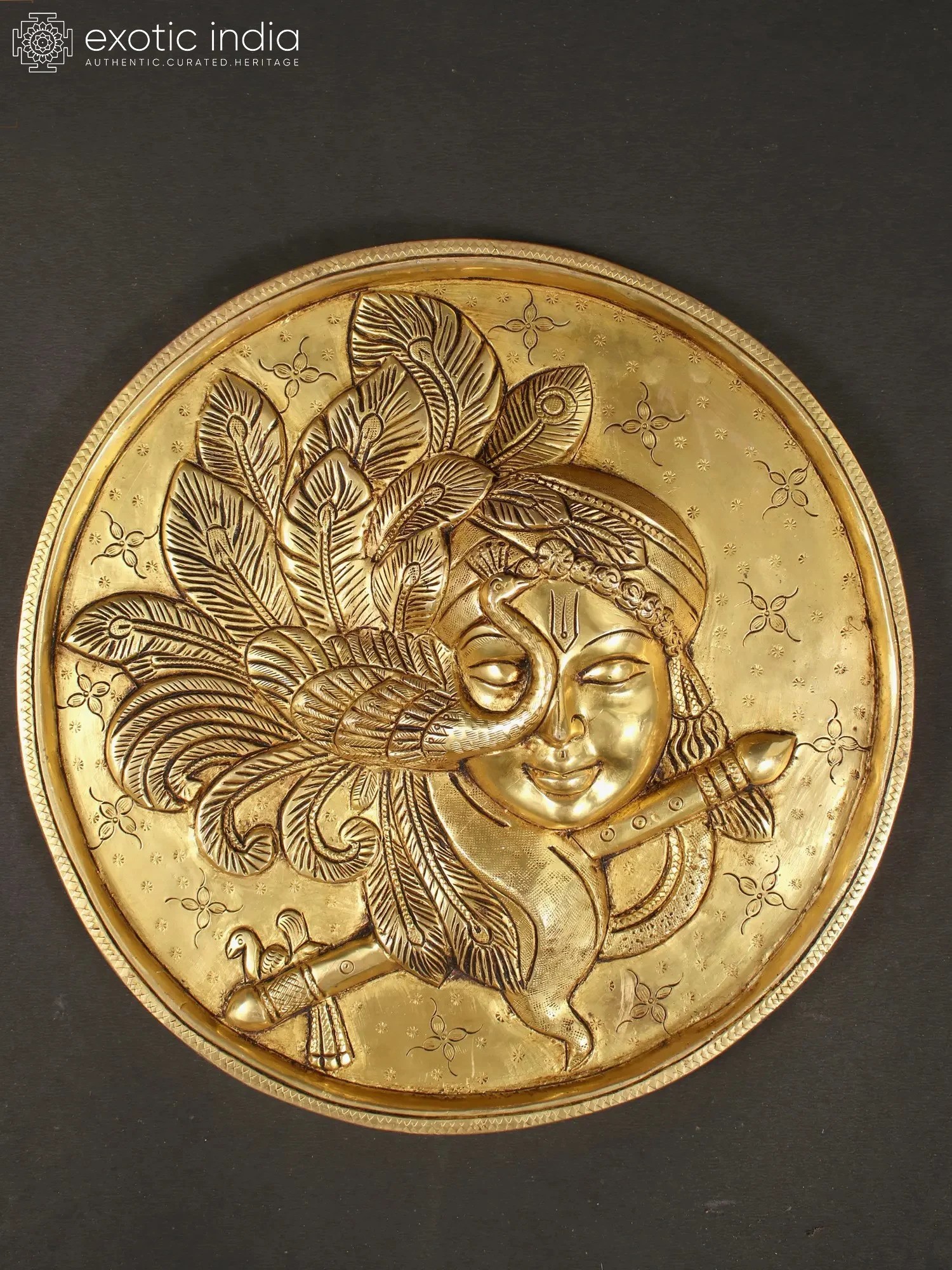 33" Shri Krishna Lila Wall Hanging Bell in Brass | Handmade | Made in India