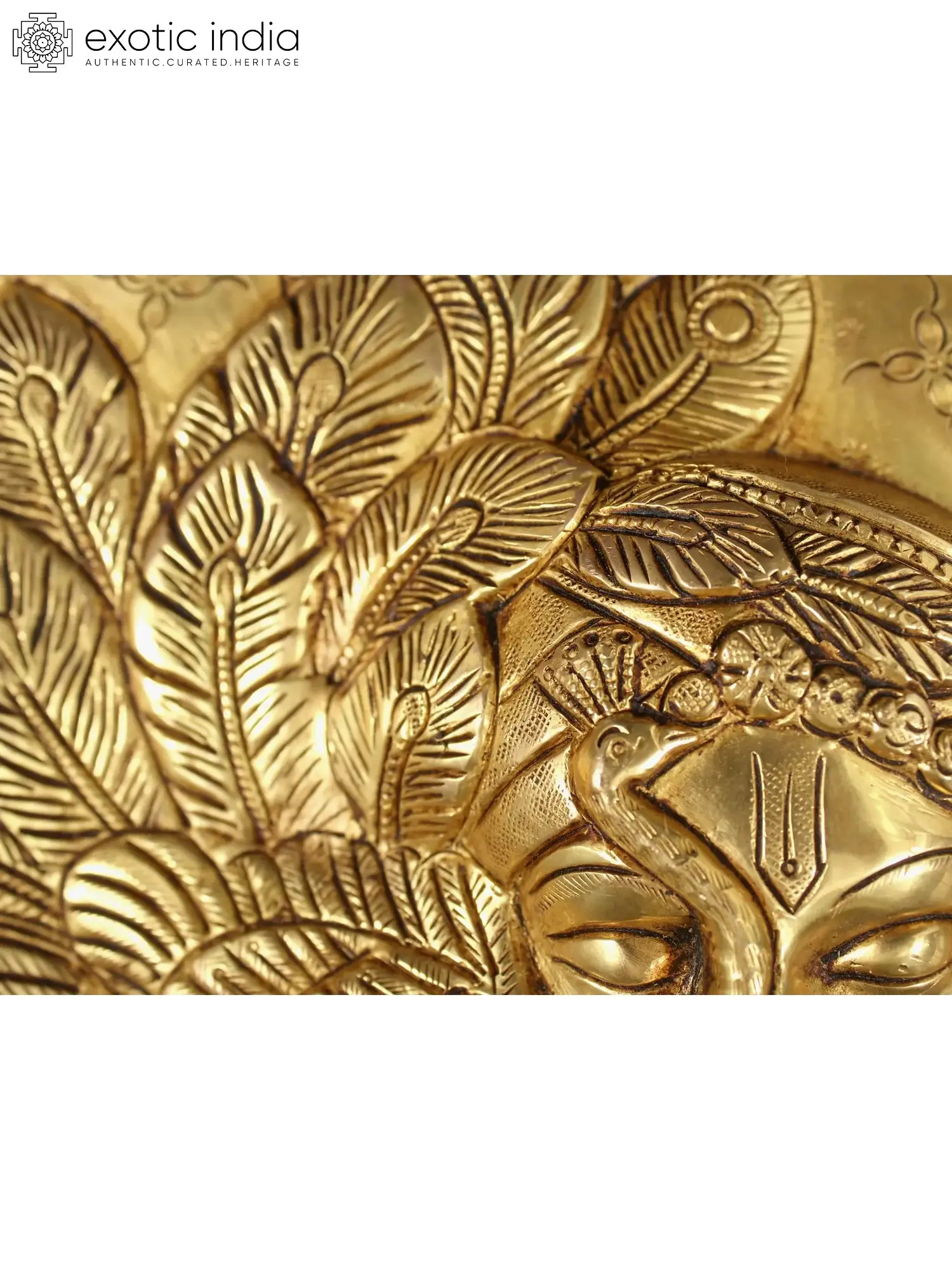 9" Baby Krishna on Peepal Leaf Wall Hanging In Brass