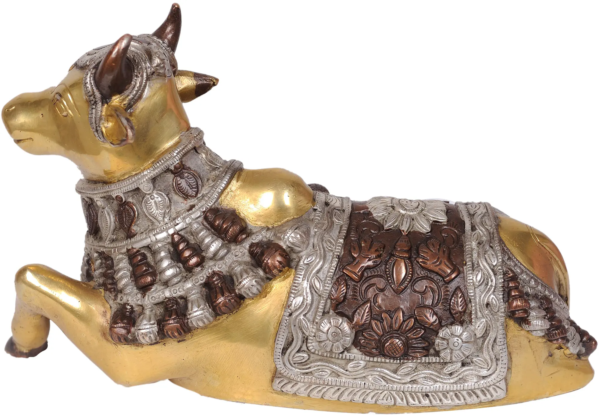 With a form that exudes both power and gentleness, Nandi stands as a symbol of unwavering devotion to his lord. His gaze is fixed upon Shiva, mirroring the deep connection between devotee and deity, as he patiently awaits the divine commands, embodying the role of the faithful guardian and companion.