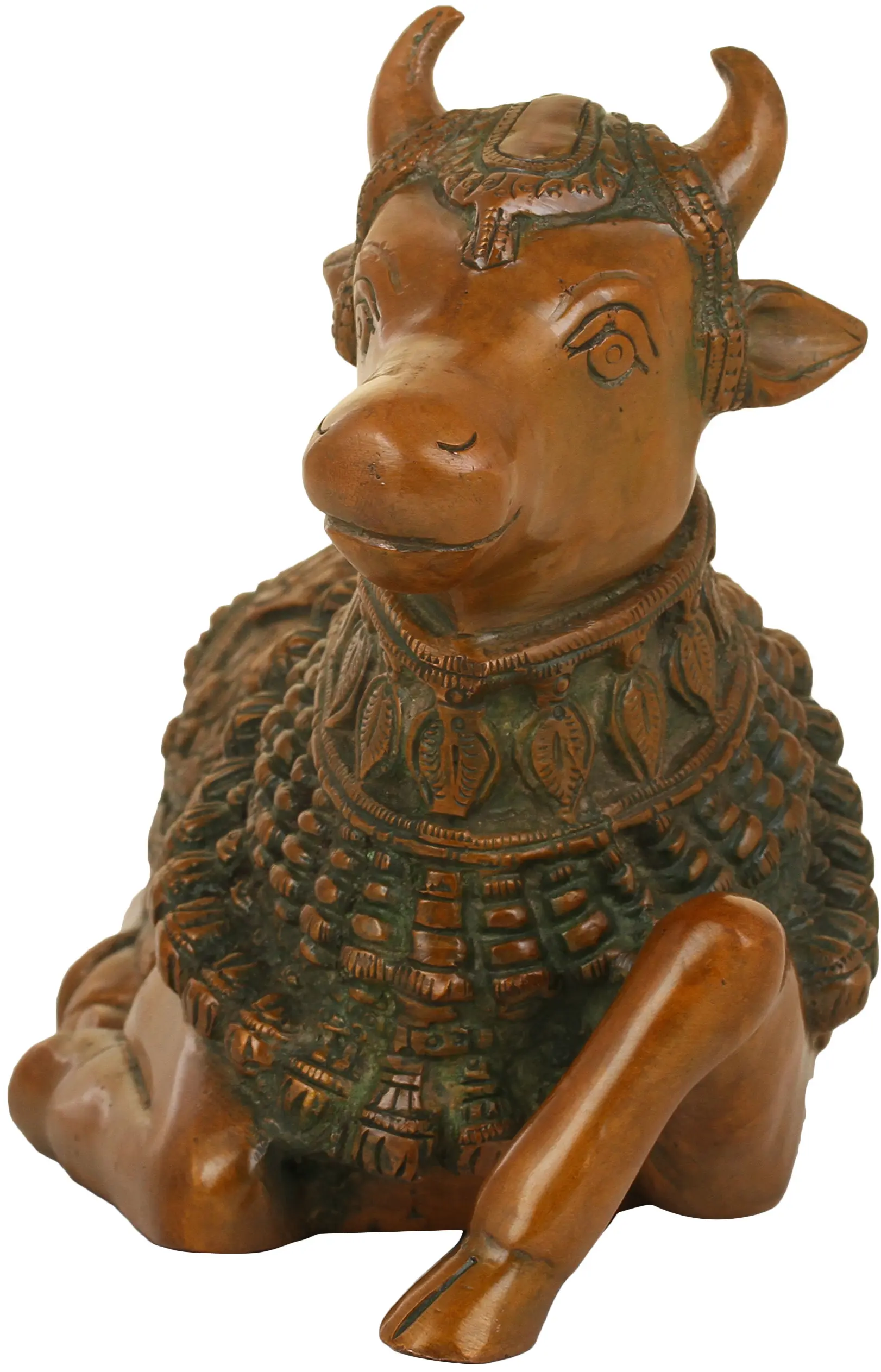 With a form that exudes both power and gentleness, Nandi stands as a symbol of unwavering devotion to his lord. His gaze is fixed upon Shiva, mirroring the deep connection between devotee and deity, as he patiently awaits the divine commands, embodying the role of the faithful guardian and companion.