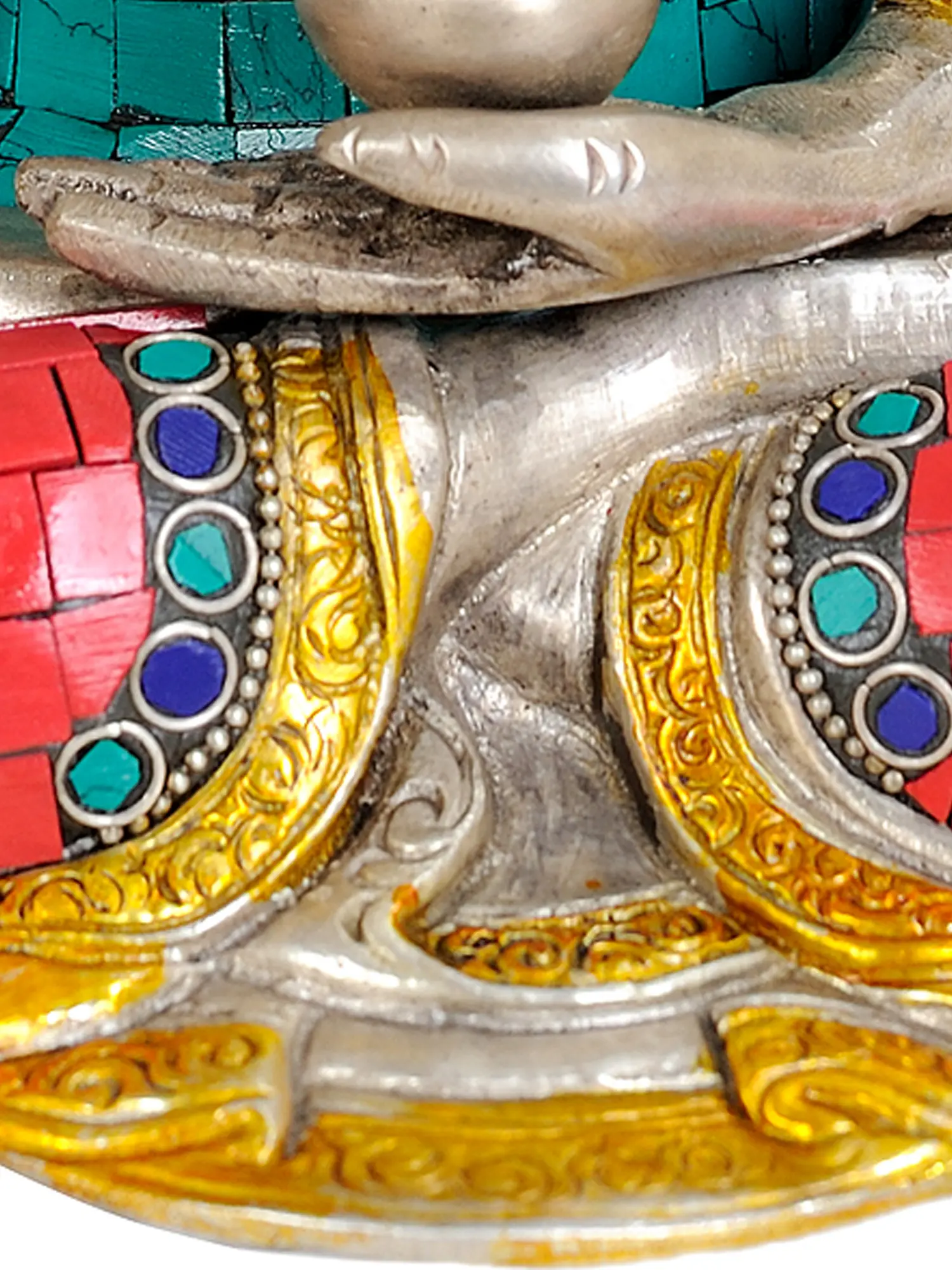 The shining brass statue of Shakyamuni Buddha is a captivating example of the peaceful union of spirituality and artistic expression in the field where spirituality and enlightenment coexist. This magnificent work of art, painstakingly produced by trained hands in India, perfectly reflects the profound wisdom and teaching act of the Buddha. The brass sculpture invites us to explore the spiritual depths of Shakyamuni Buddha's dharma by showing him during a moment of heavenly revelation. It's more than just artwork; it's a doorway to a spiritual realm where the teachings of the Buddha are realized. With grace and reverence, this piece of art connects the material and the spiritual, inviting us to travel the path to enlightenment and inner serenity.