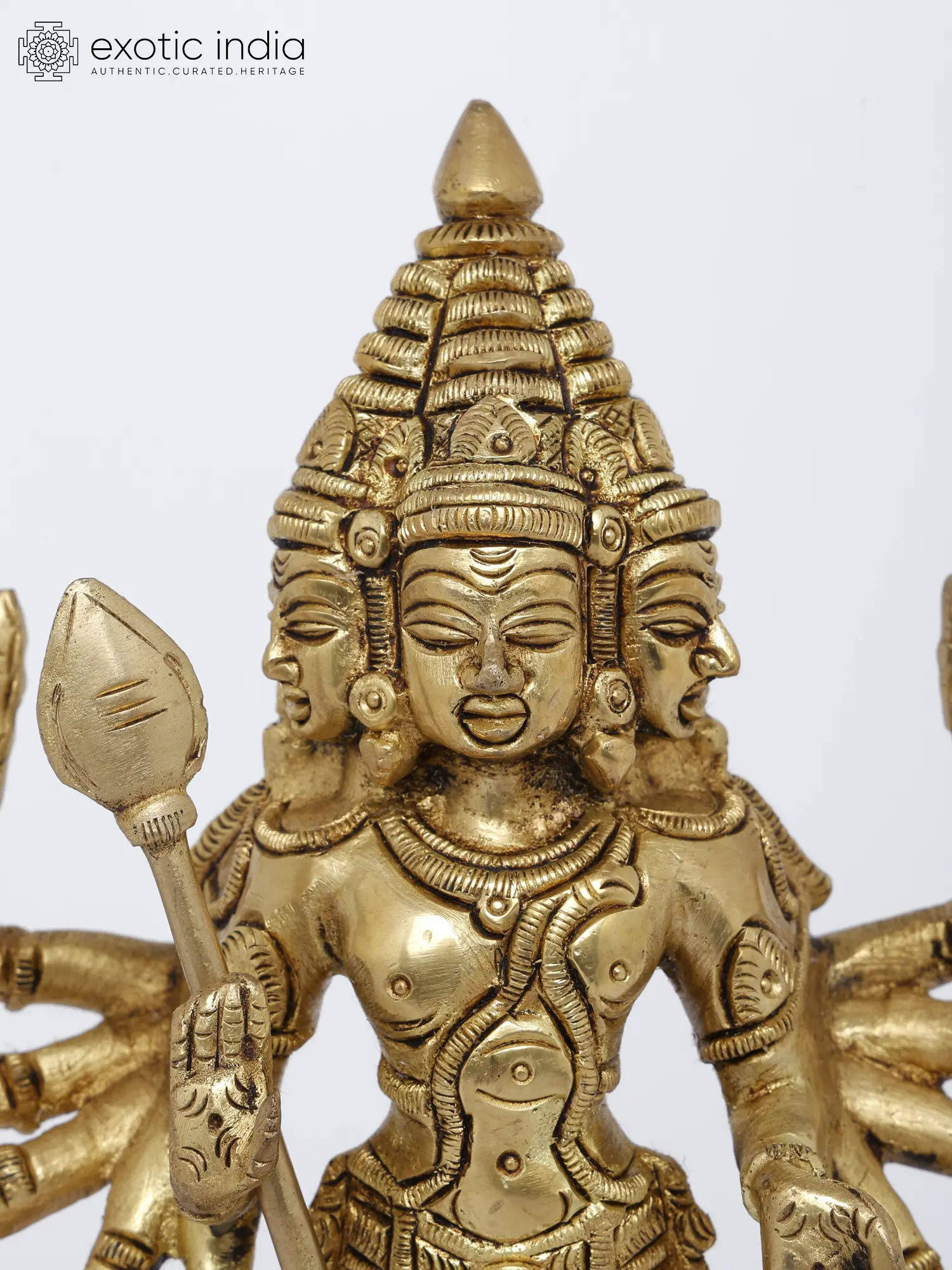 Crafted from high-quality brass, this statue is a masterpiece of traditional Indian artistry. The detailed carving and the warm, lustrous finish of the brass imbue the sculpture with a timeless elegance and spiritual aura. The intricate patterns and ornamentation adorning the deity's attire, crown, and weapons reflect the skilled craftsmanship passed down through generations. This statue is not merely an object of devotion but also a piece of art that brings an element of sacred beauty and divine grace into any space. It serves as a powerful reminder of the eternal principles of courage, wisdom, and spiritual victory.