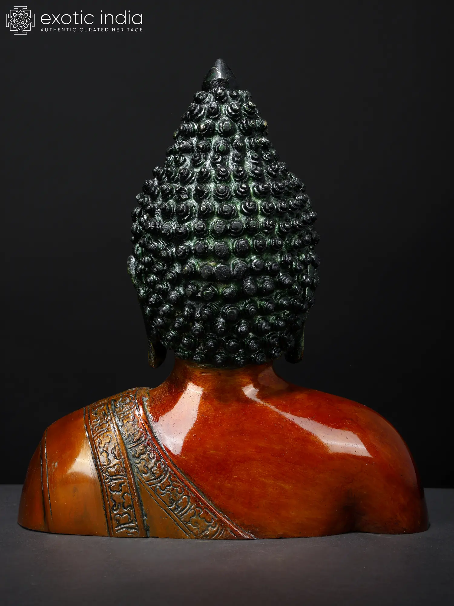 The Buddha's image is rich with symbolic meaning. The ushnisha, the cranial protuberance on top of the head, signifies wisdom and spiritual attainment. The urna, the small dot between the eyebrows, represents the all-seeing eye, a symbol of divine perception. The long earlobes, a reminder of the Buddha's princely past when he wore heavy jewels, now symbolize his renunciation of material possessions. Each of these features is carefully incorporated into this bust, creating a potent visual representation of the Buddha's teachings. Beyond the individual features, the overall posture of the bust conveys a sense of tranquility and balance. This is the embodiment of the middle way, the path of moderation that the Buddha advocated for achieving enlightenment. Displaying this handcrafted piece invites the energy of peace, calm, and clarity into your space.
