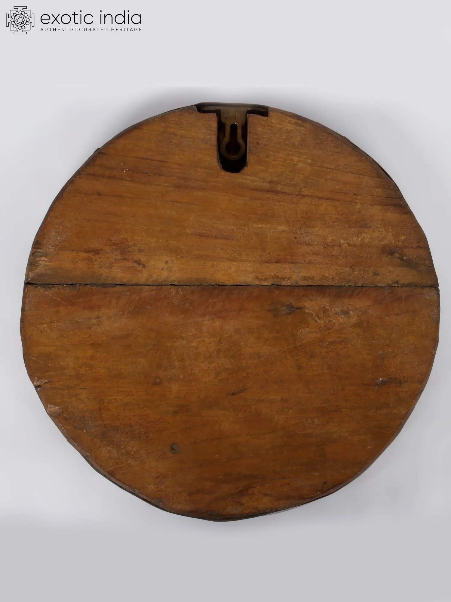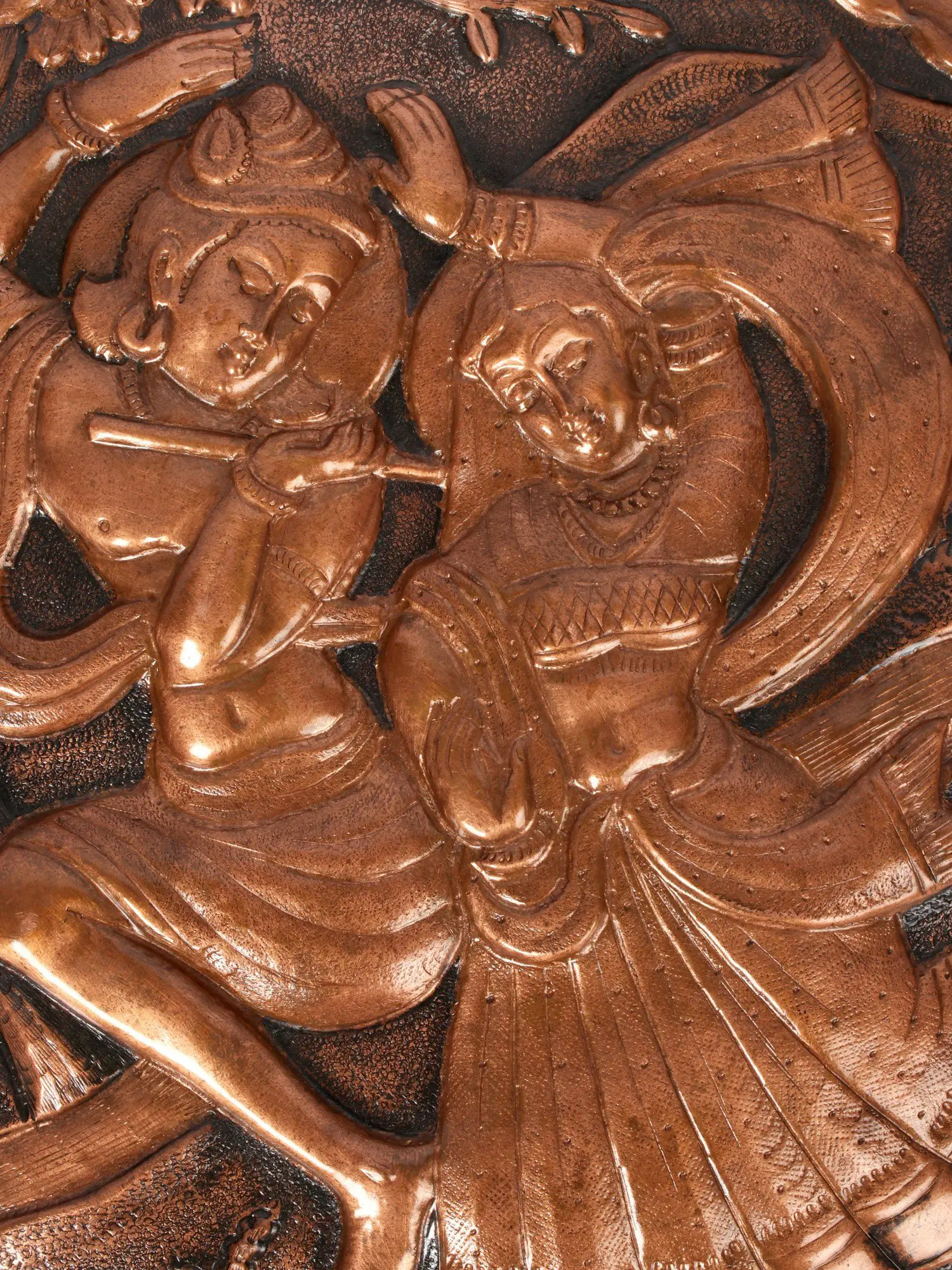 10" Copper & Wood Dancing Radha Krishna Wall Hanging