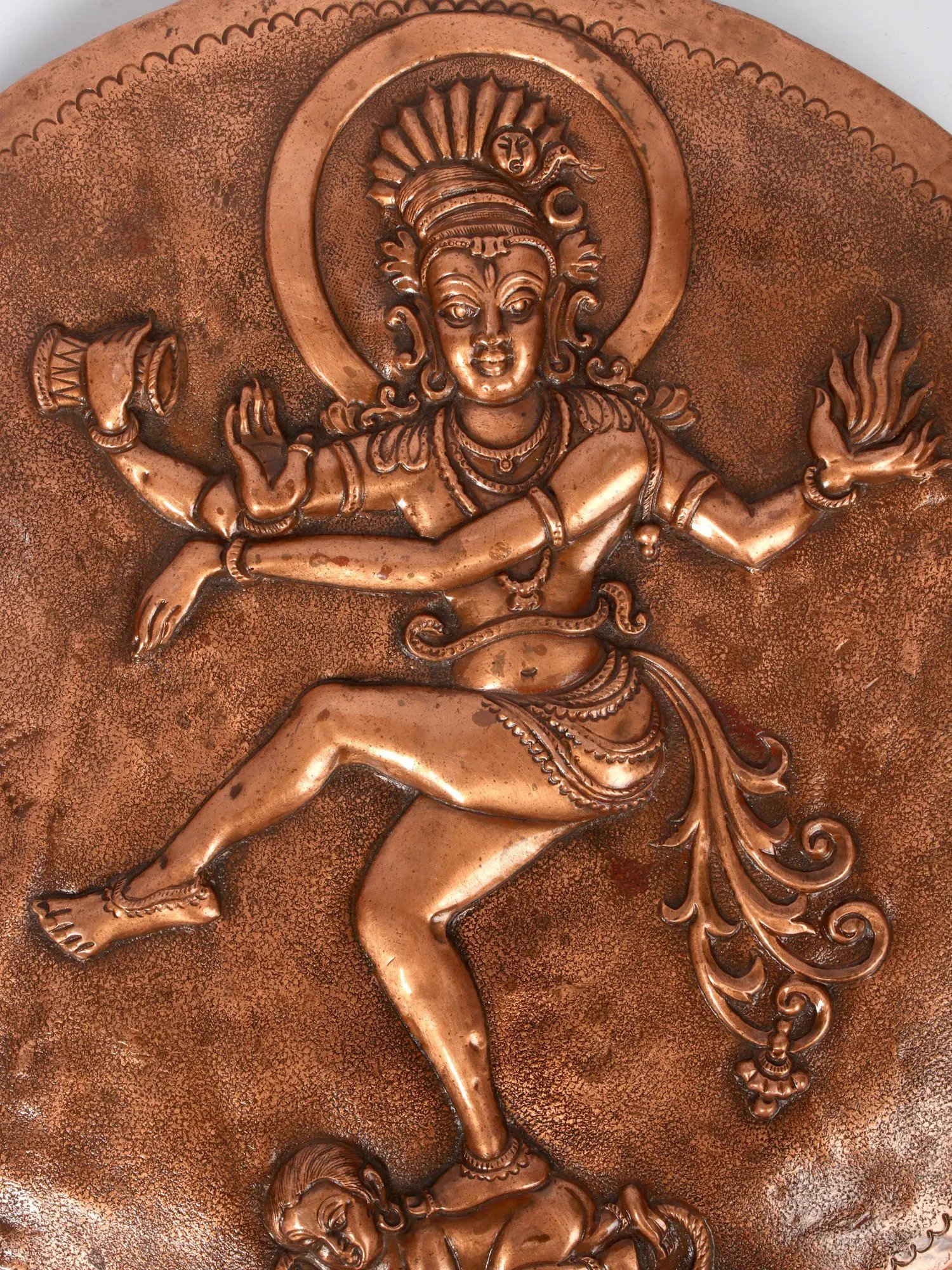 Immerse yourself in the divine energy of Lord Shiva as Nataraja, the Lord of Dance, with this exquisite copper and wood wall hanging. This captivating piece captures the essence of Shiva's cosmic Tandava, the celestial dance that propels the universe through cycles of creation, preservation, and destruction. The intricate detailing in copper, expertly hammered and embossed, brings to life the dynamic pose of Nataraja, his graceful form suspended in a perpetual dance.