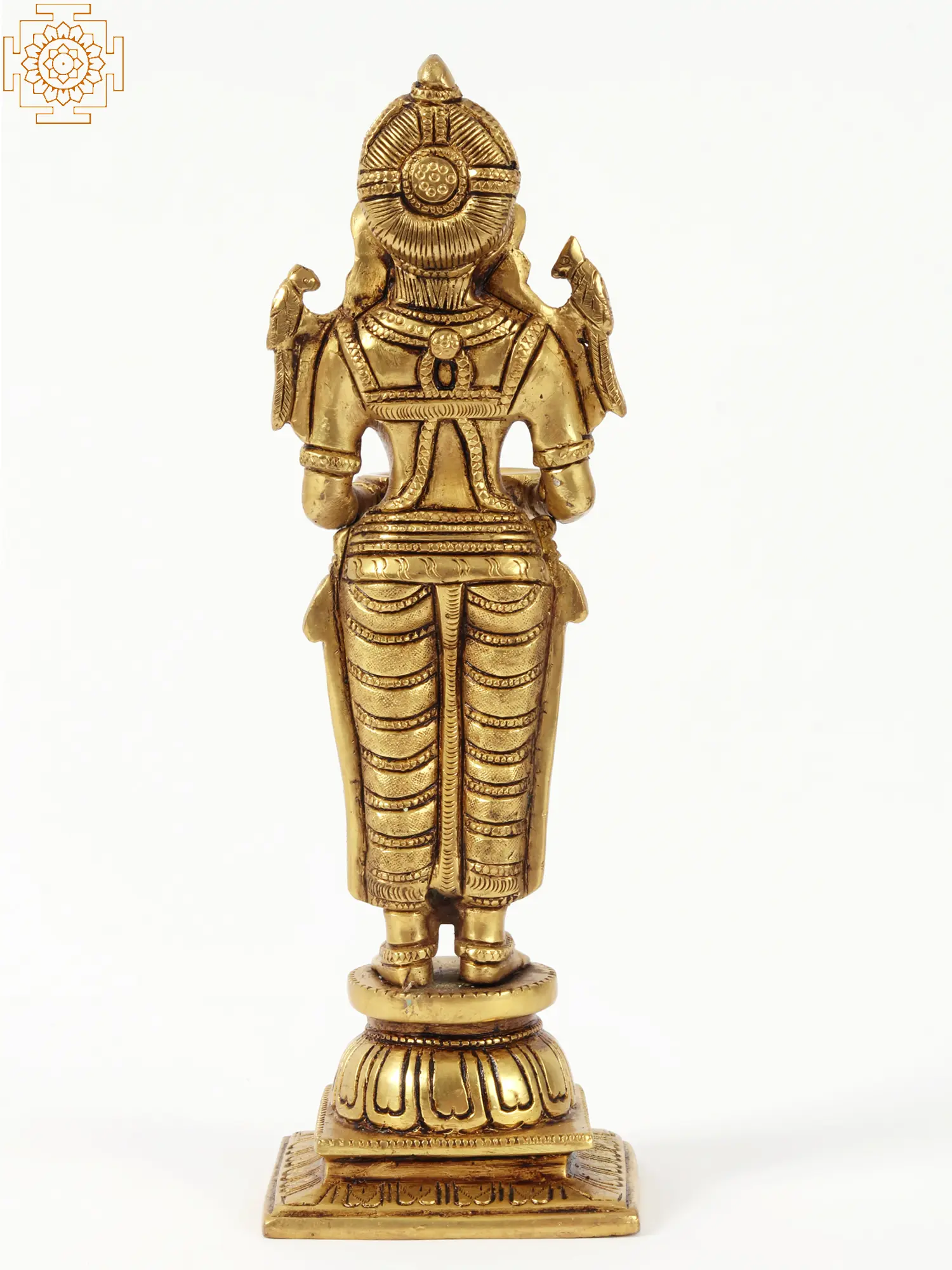 Each statue is a testament to the enduring legacy of Indian brass artistry. The intricate detailing on the attire, the serene expression on the face, and the delicate form of the parrot all showcase the immense skill and dedication of the craftspeople. The traditional casting techniques employed have been passed down through generations, ensuring that each piece is not merely an object but a work of art infused with cultural heritage. This statue serves as a beautiful reminder of the deep-rooted traditions and spiritual practices that continue to inspire and enrich lives. Its substantial feel and polished finish speak to its quality and enduring beauty, promising to be a cherished heirloom for years to come.