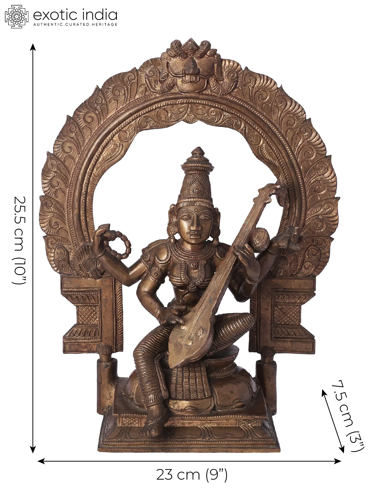 10" Devi Saraswati Panchaloha Bronze Statue from Swamimalai | Madhuchista Vidhana (Lost-Wax)