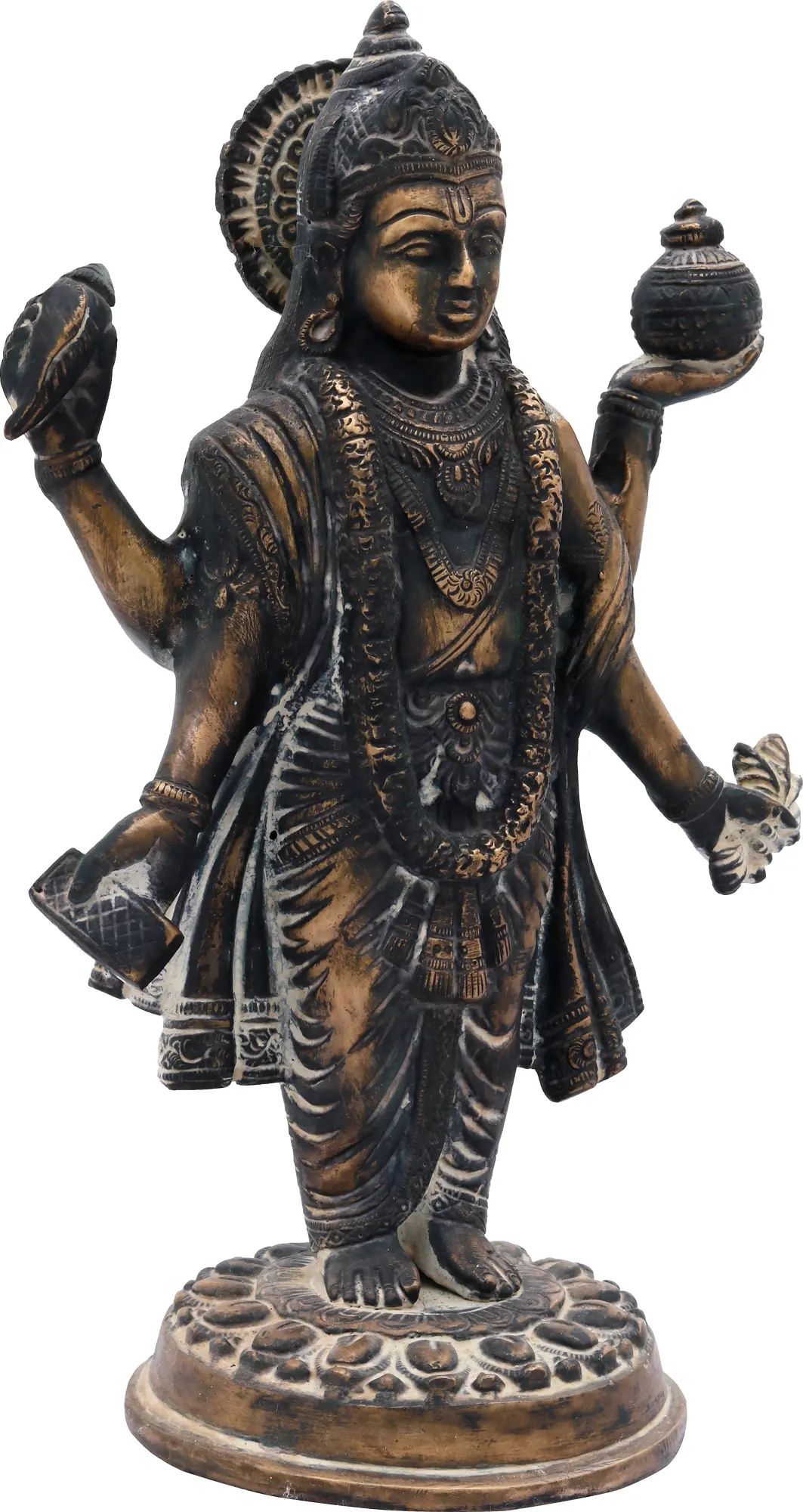 Experience the healing grace of Dhanvantari with this Handmade Brass Dhanvantari idol. This exquisite piece, crafted in India, embodies the concept of divine healing and well-being. Dhanvantari is revered as the physician of the gods, holding the vessel of immortality and herbs. This symbolizes the interconnectedness of spirituality and physical well-being, reminding us of the Ayurvedic principles deeply rooted in Indian tradition. The presence of Dhanvantari in your space not only adds a touch of elegance but also invokes the energy of healing and good health. It reinforces the core belief that our well-being is deeply intertwined with our spiritual journey.