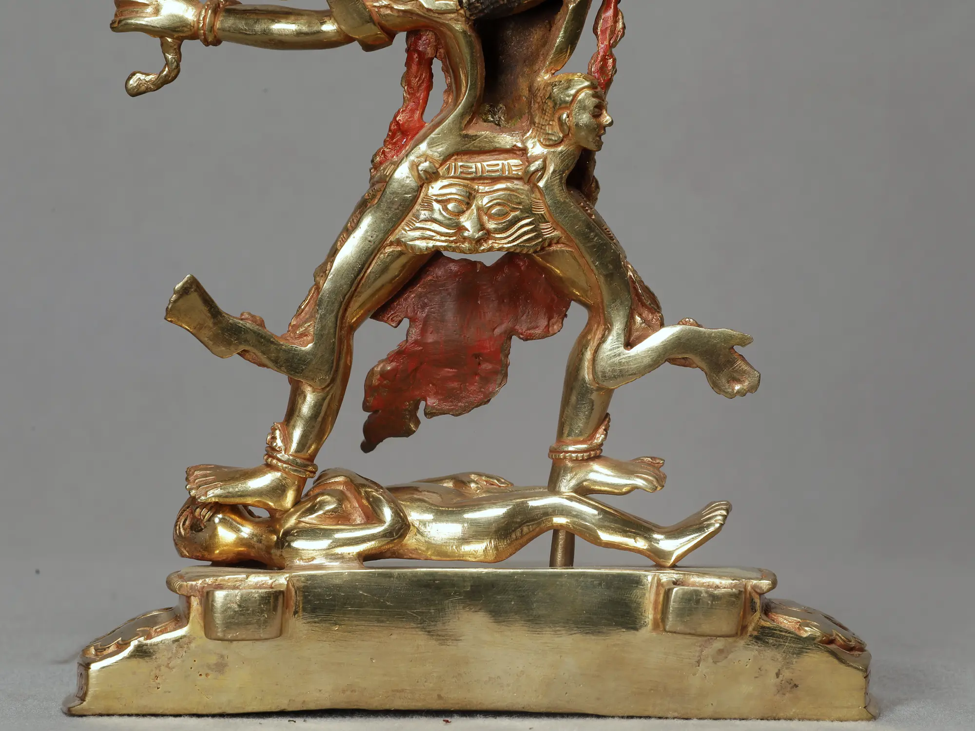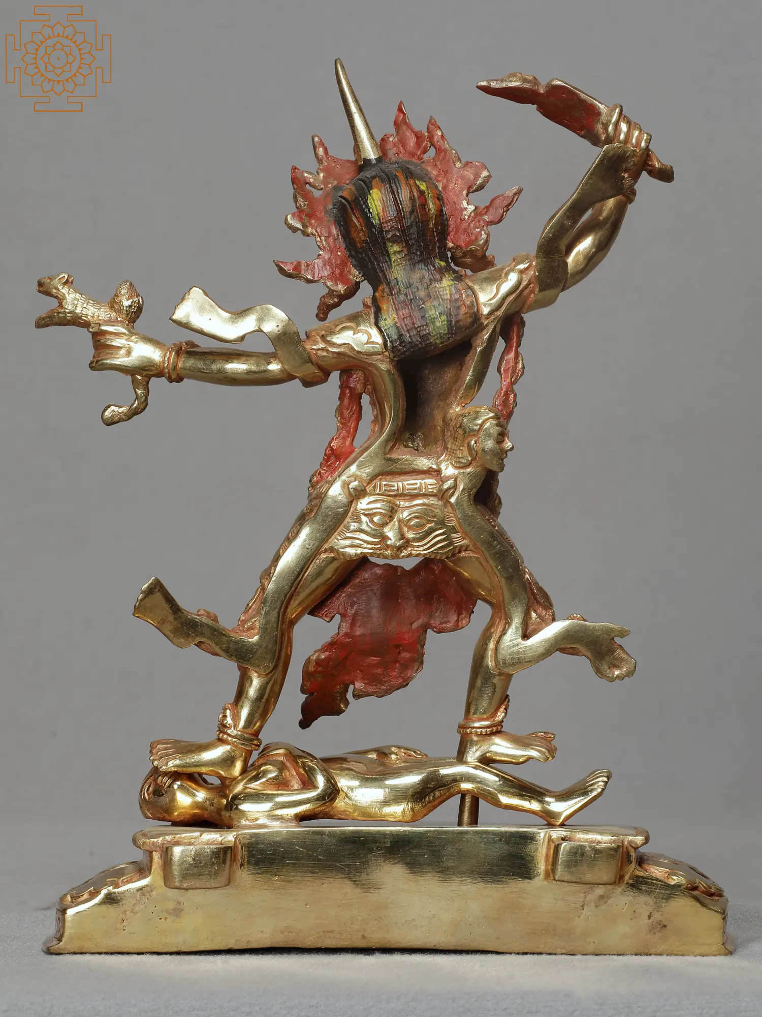 Ekajata wields a wisdom sword, symbolizing the eradication of ignorance, and may hold a skull cup with the elixir of wisdom, emphasizing her role in bestowing transformation insight. Her devotees praise her for her protection on the spiritual path, seeking her assistance in overcoming difficulties, the swift accomplishment of goals, and the enhancement of wisdom. In Tibetan Buddhist iconography, Ekajata stands as a powerful and compassionate force, embodying the fierce aspects of enlightened wisdom.