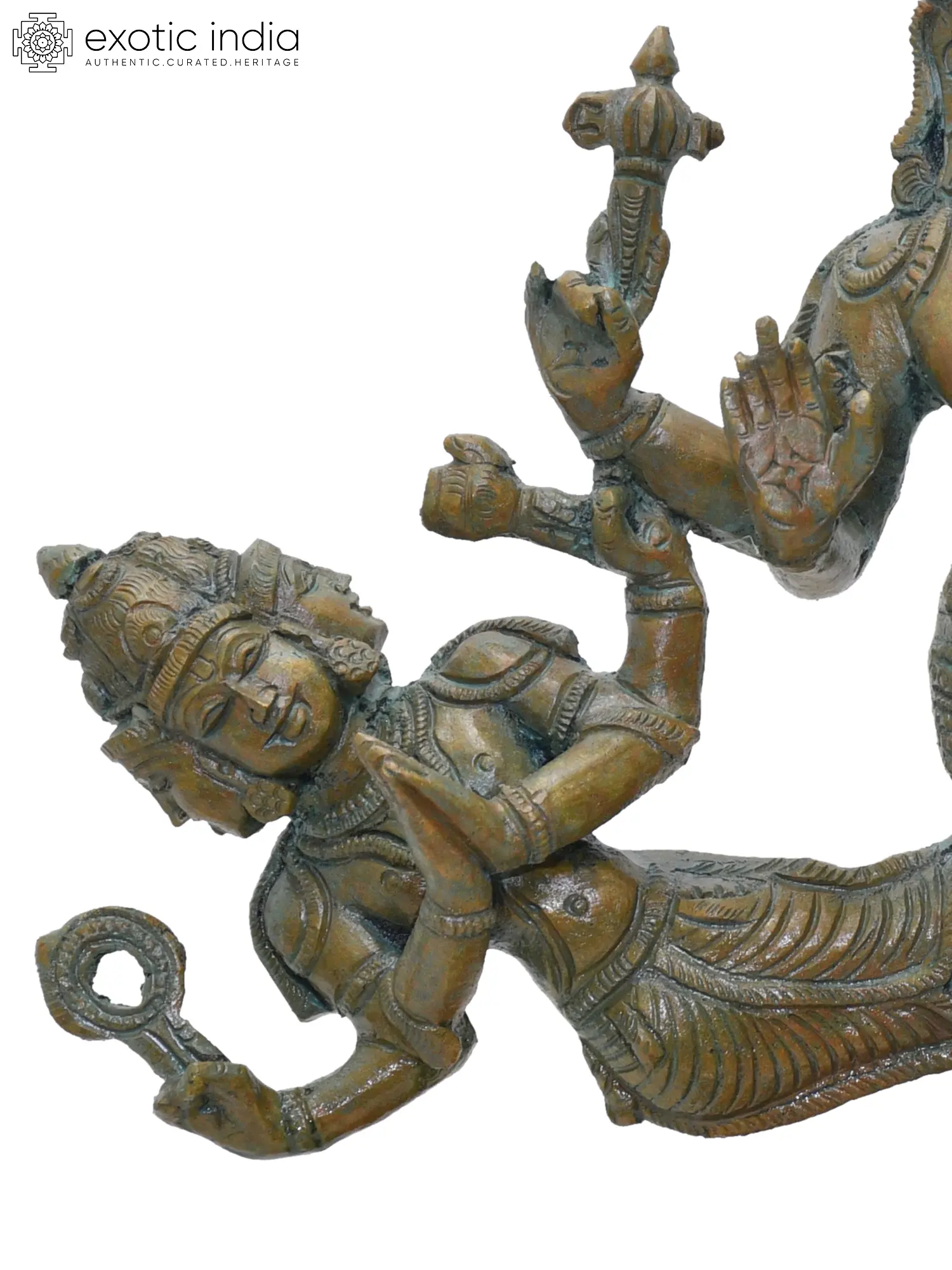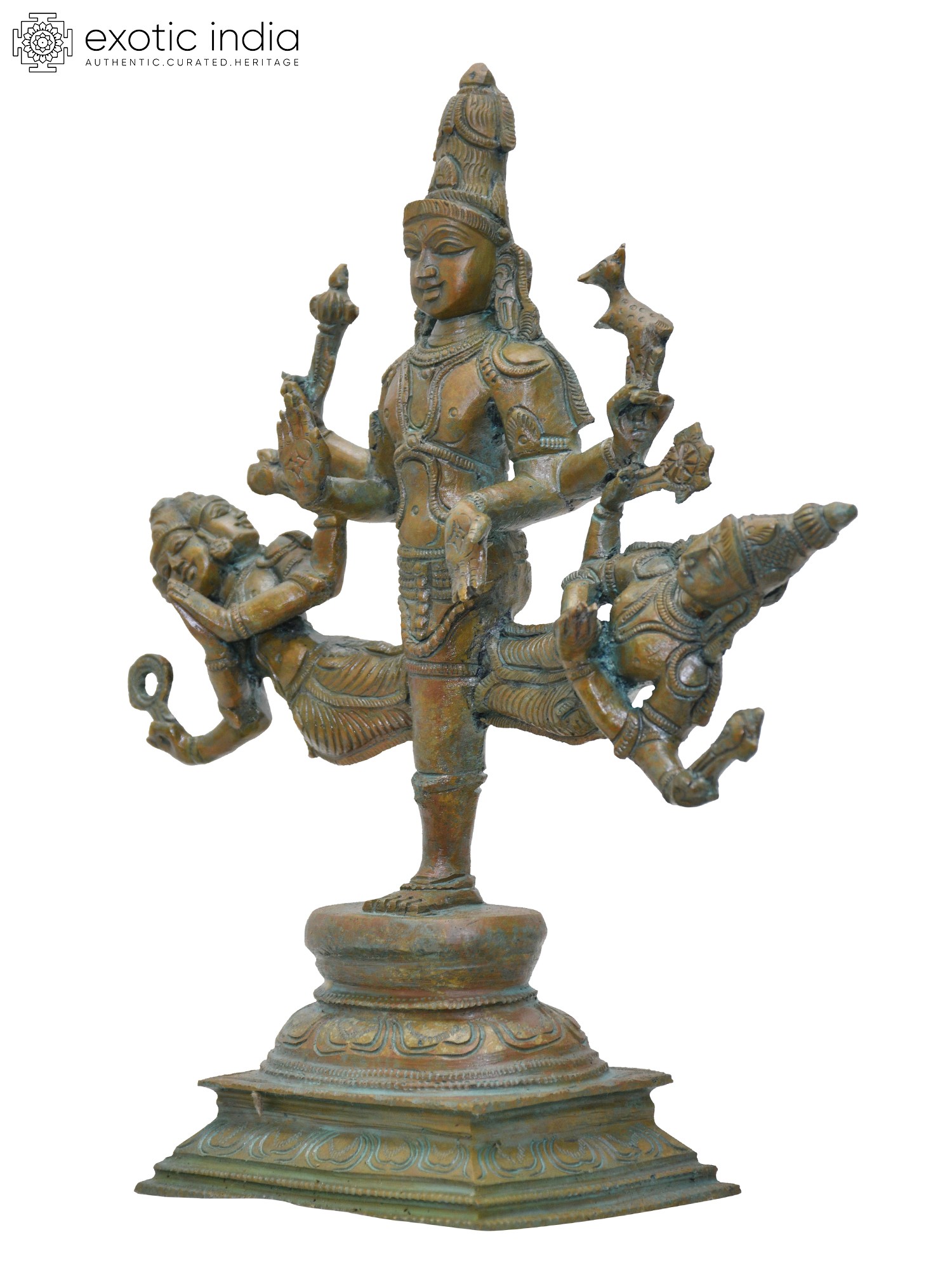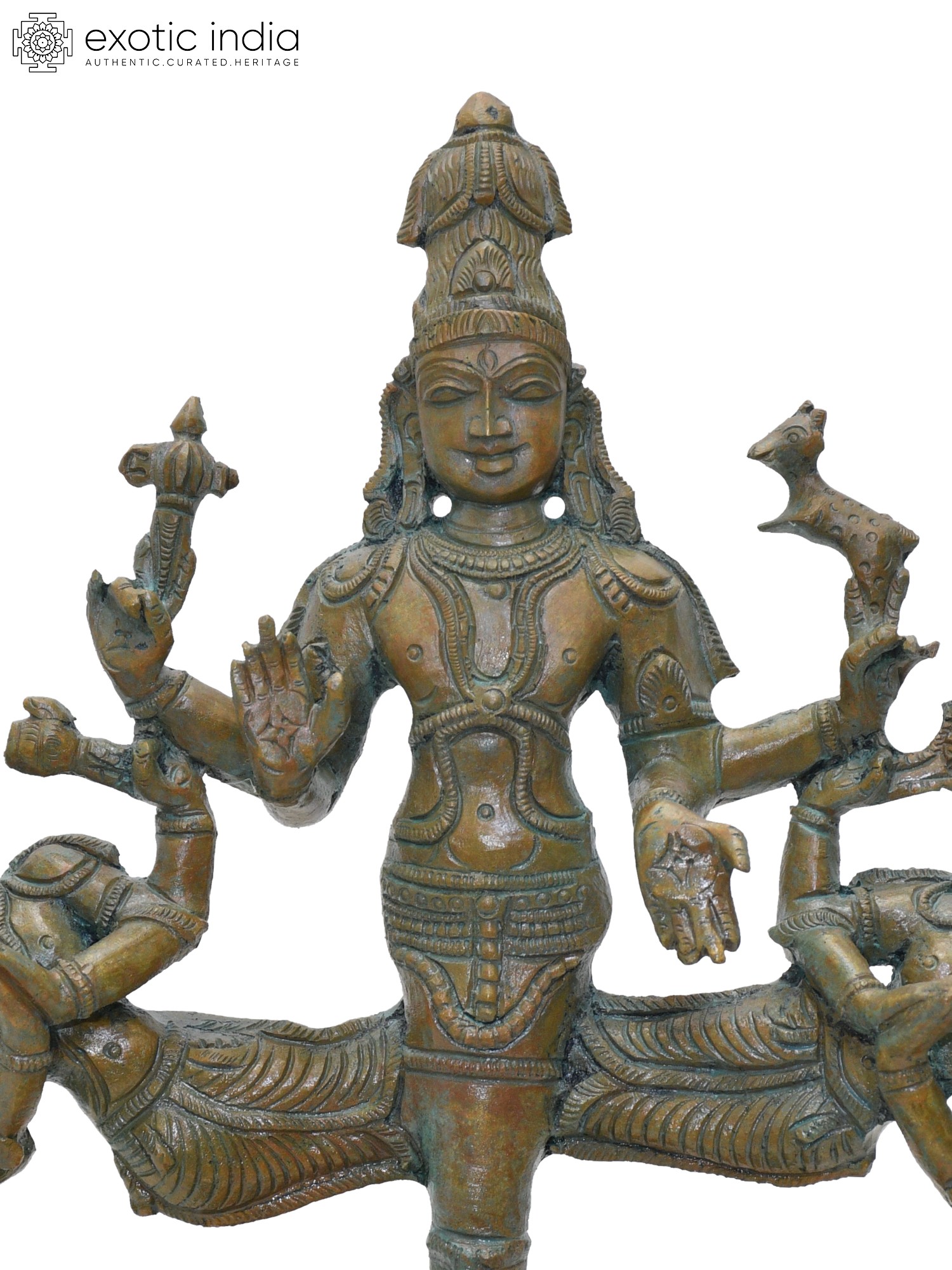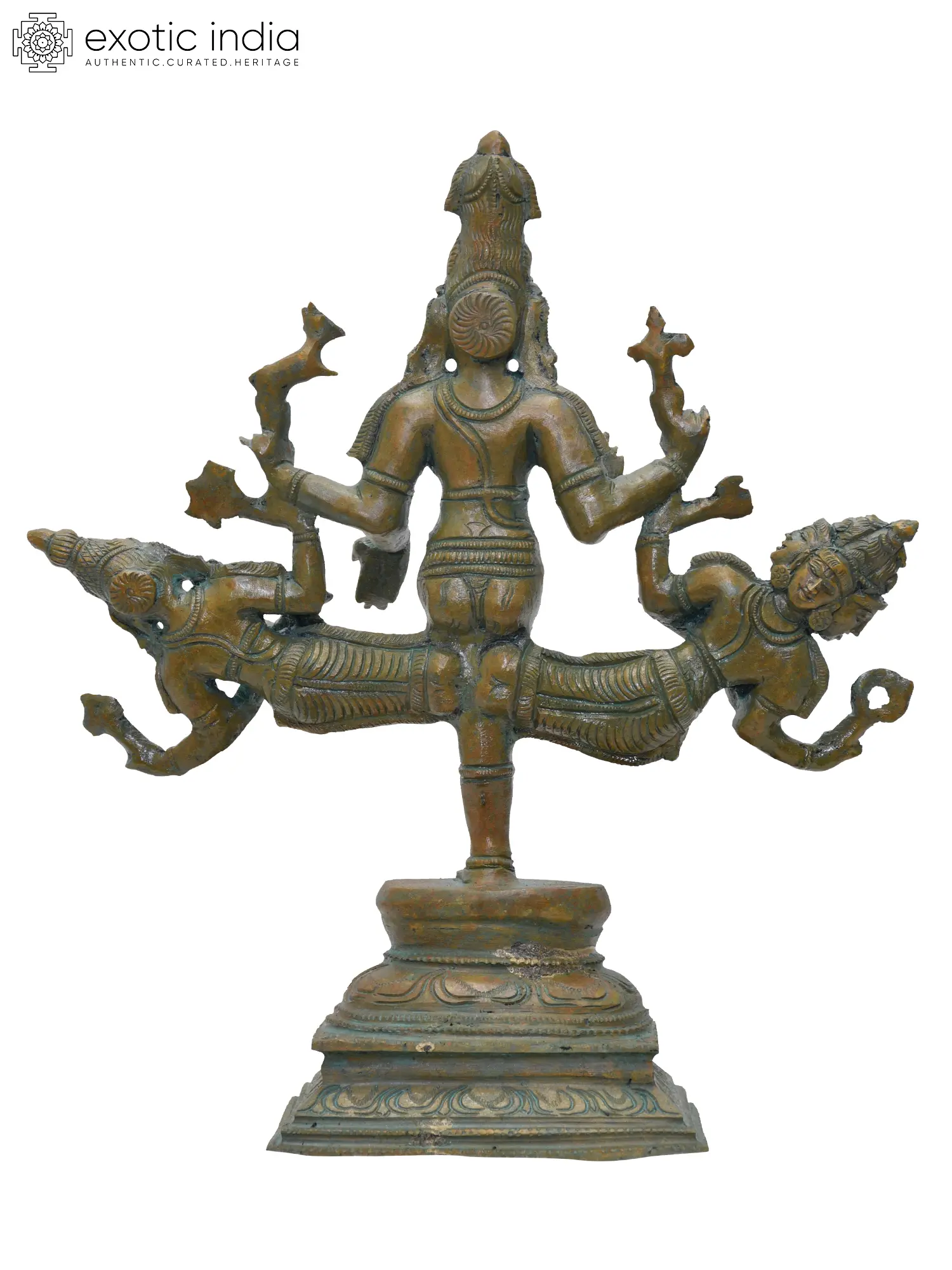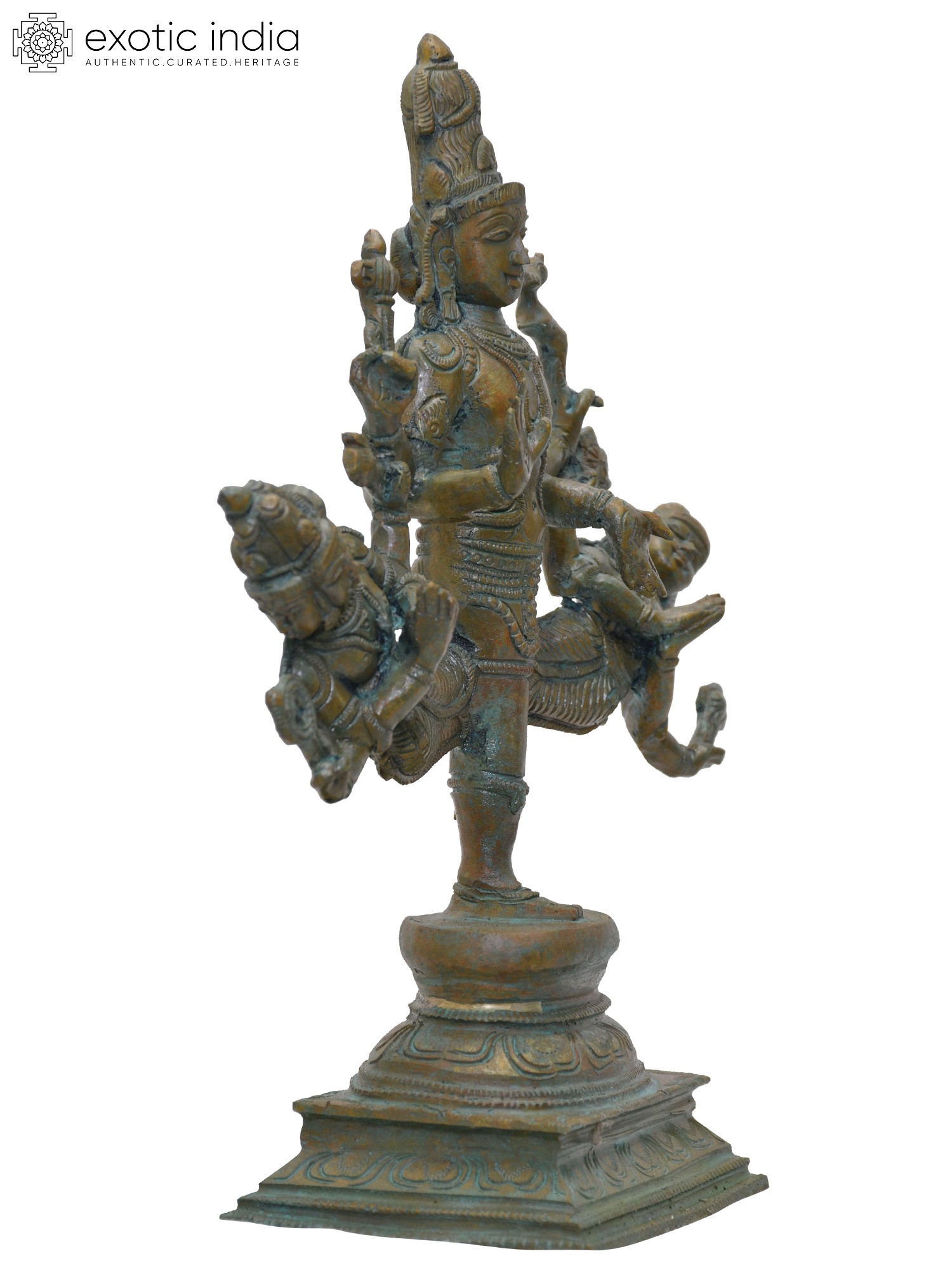 Behold a manifestation of divine unity, captured in bronze through the ancient Madhuchista Vidhana, or lost-wax, technique. This captivating sculpture represents Ekapada Trimurti, a unique and profound representation of Lord Shiva, embodying within himself the energies and roles of Lord Brahma and Lord Vishnu. Crafted in the renowned bronze workshops of Swamimalai, this Panchaloha statue embodies the rich artistic and spiritual traditions of South India.