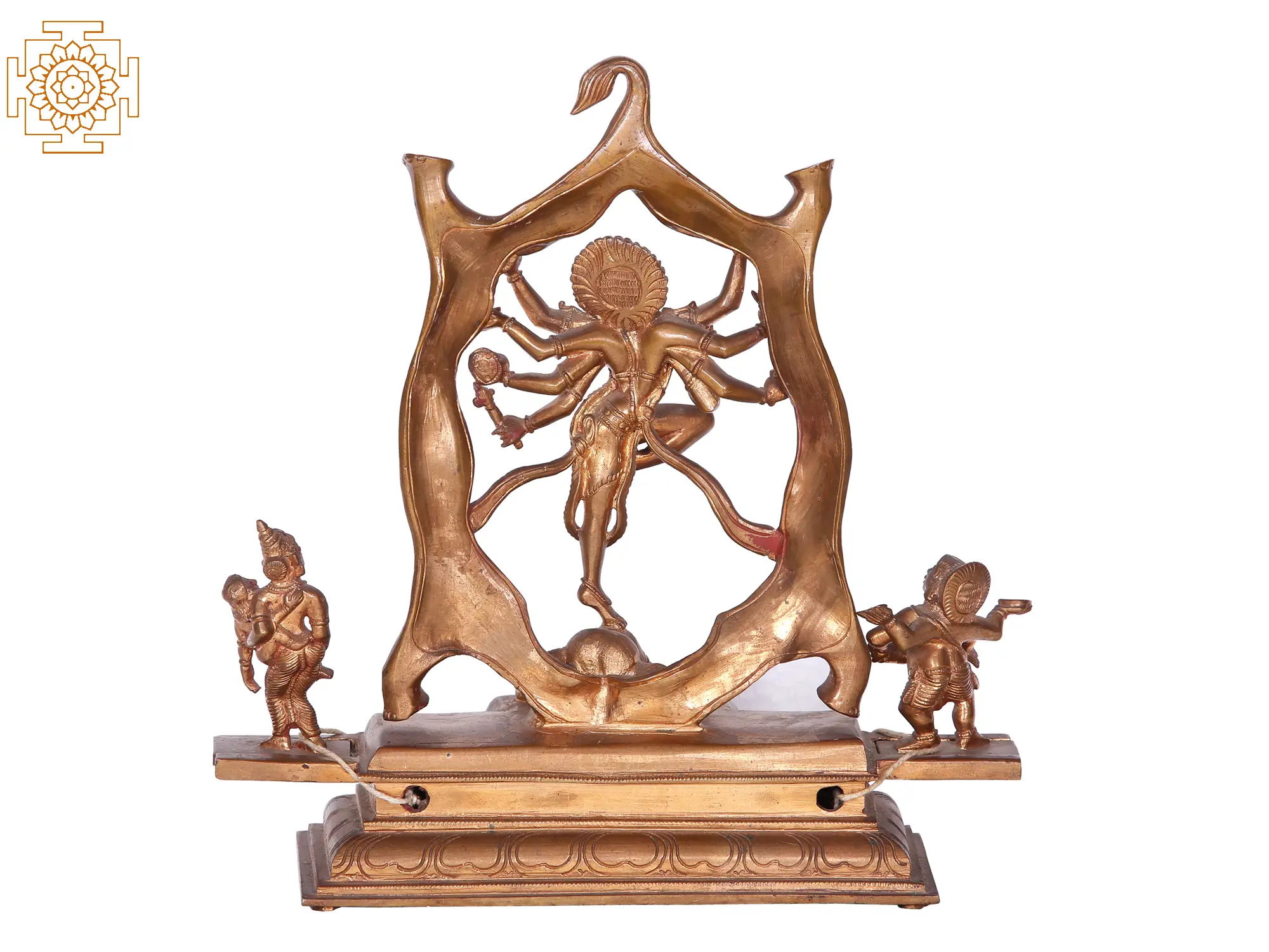 The elephant-shaped demon, whose body has been stretched like an ethereal halo around Shiva’s form, was engaged in destroying the worship of Shiva-Lingam, when Mahadeva appeared to protect his devotees. In his Ashtabhuja (eight-armed) powerful form, Shiva ended the reign of terror of the elephant demon.