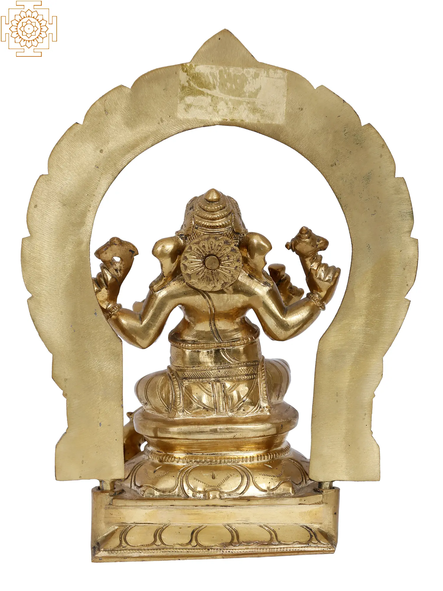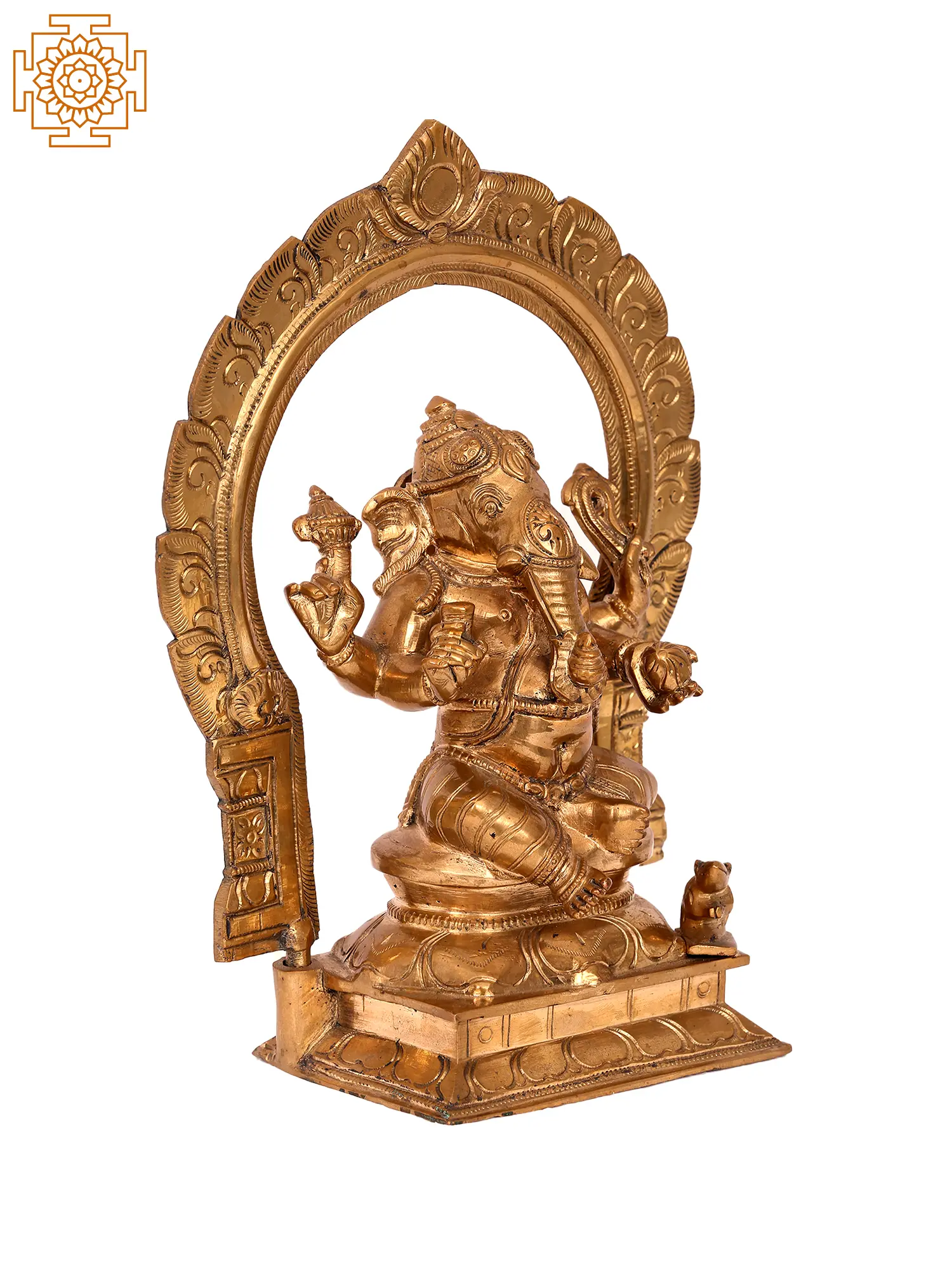 Chaturbhuja Lord Ganesha Seated on Kirtimukha Throne | Panchaloha Bronze Statue