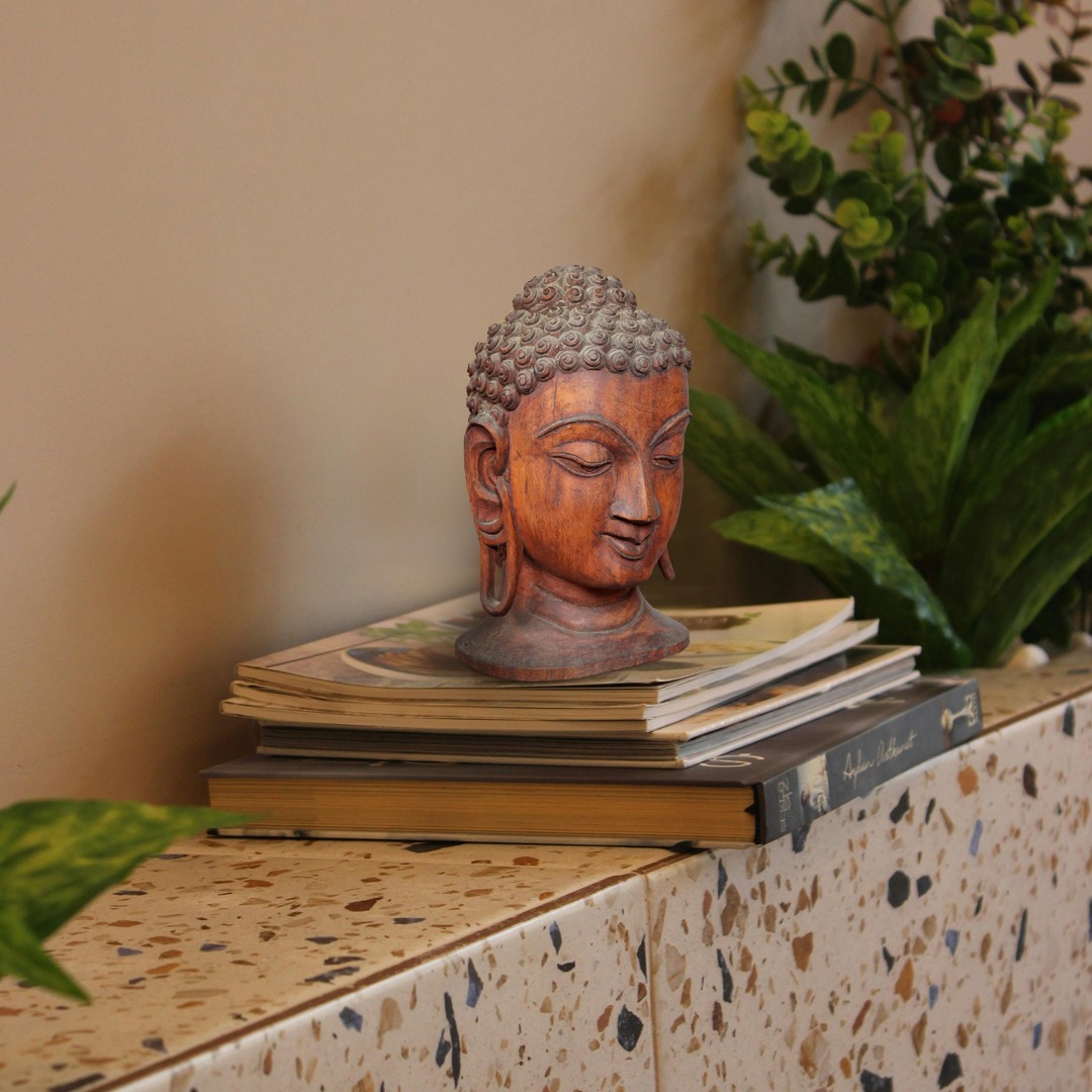 Wood Lord Buddha Head With Beautiful Carving | For Decor