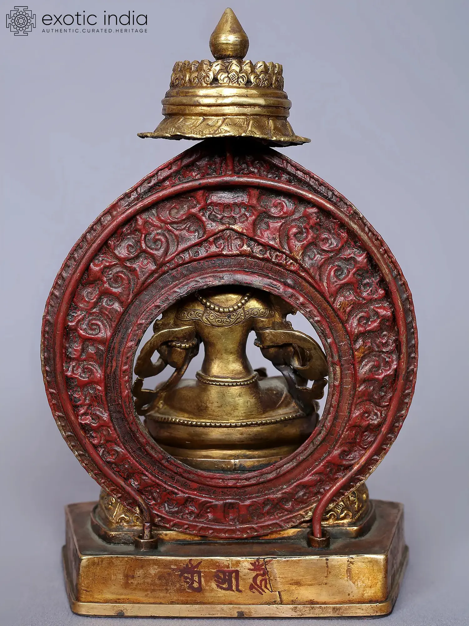 Now comes the most important part of Nepalese art which is gold gilding. This is done by the traditional fire gilding method. A mixture of mercury and 18K gold is applied on the surface of the statue and heat is applied using a flame torch. The result is that mercury evaporates along with impurities, leaving a pure 24K gold finish.