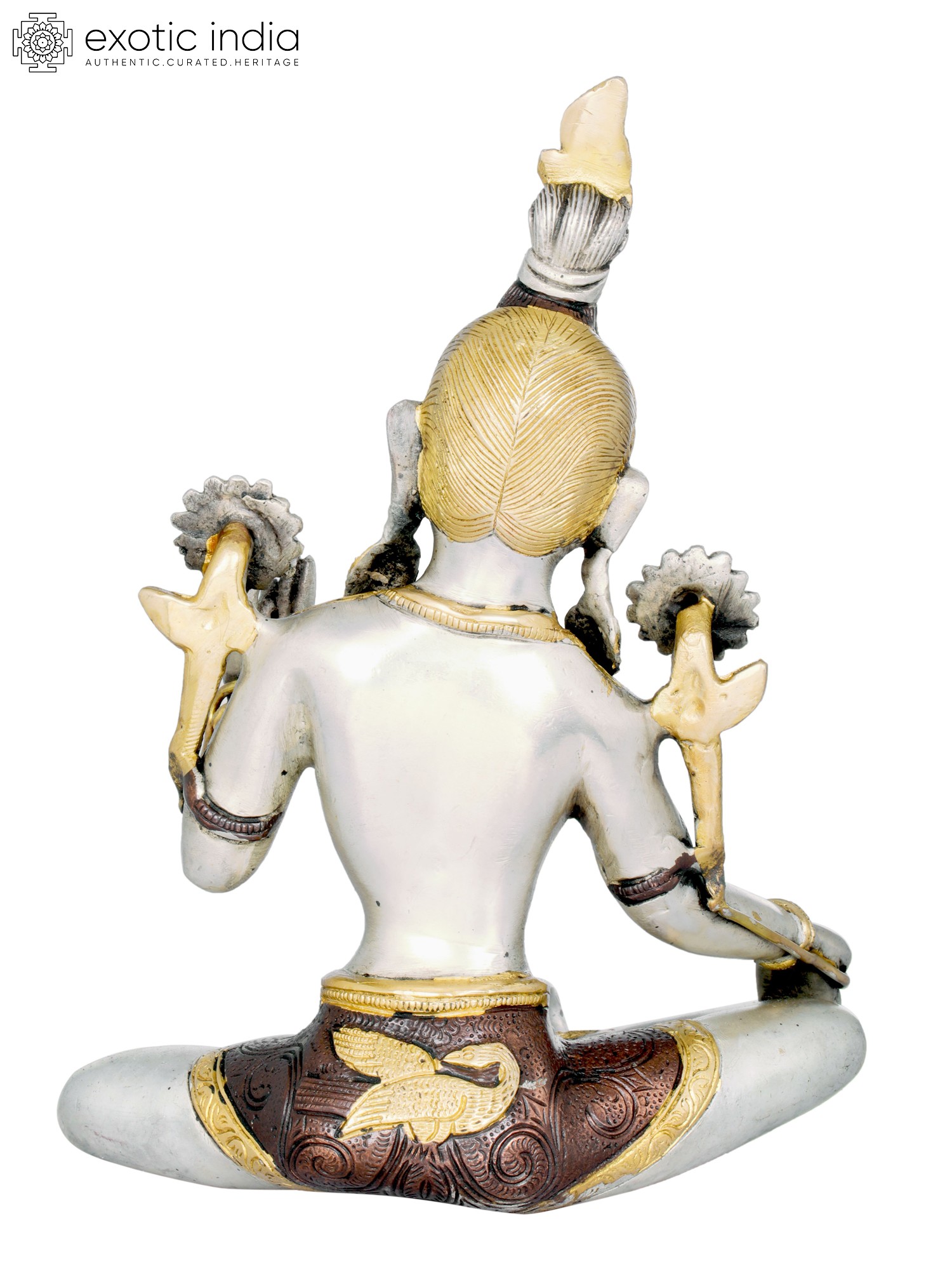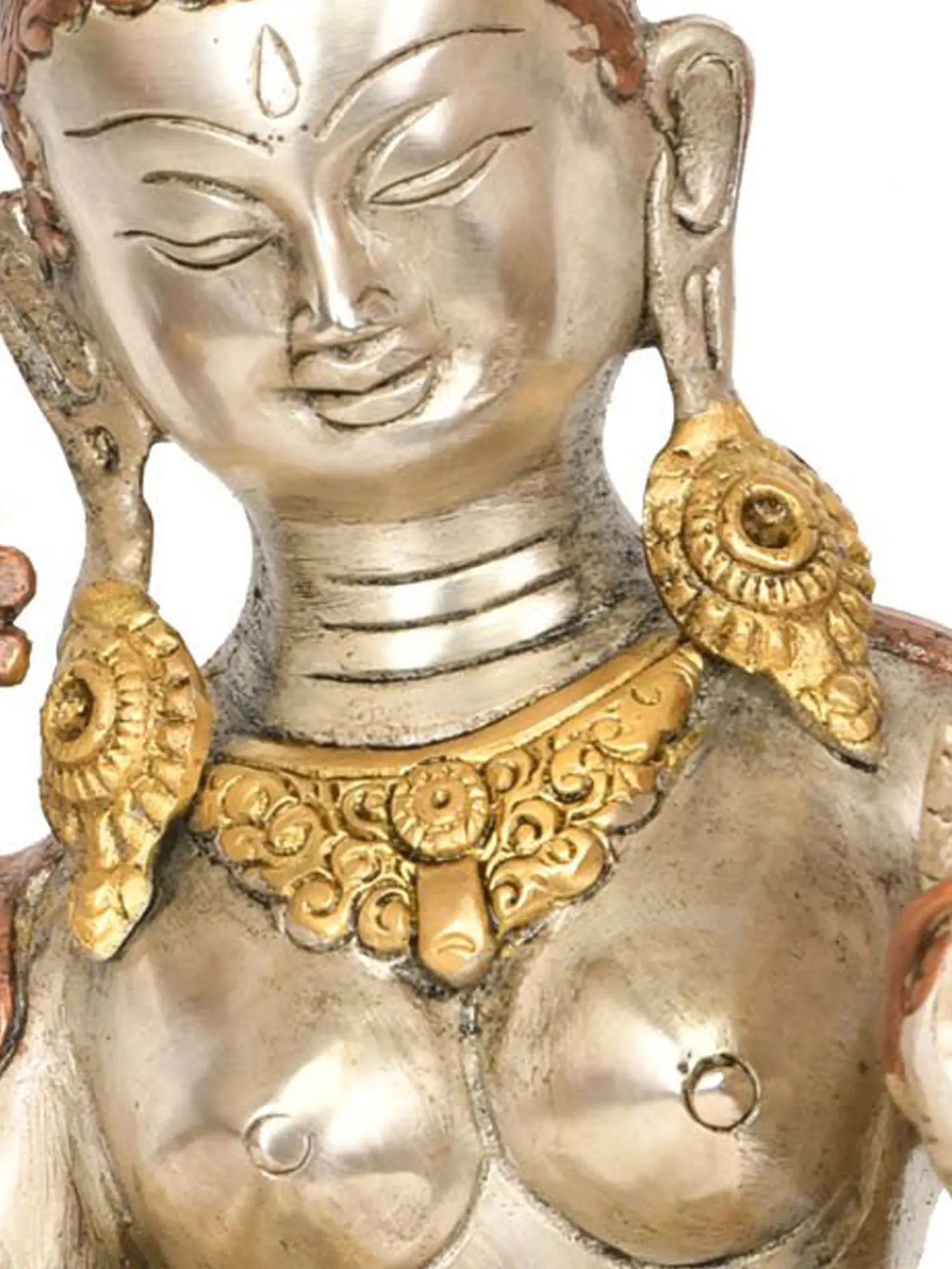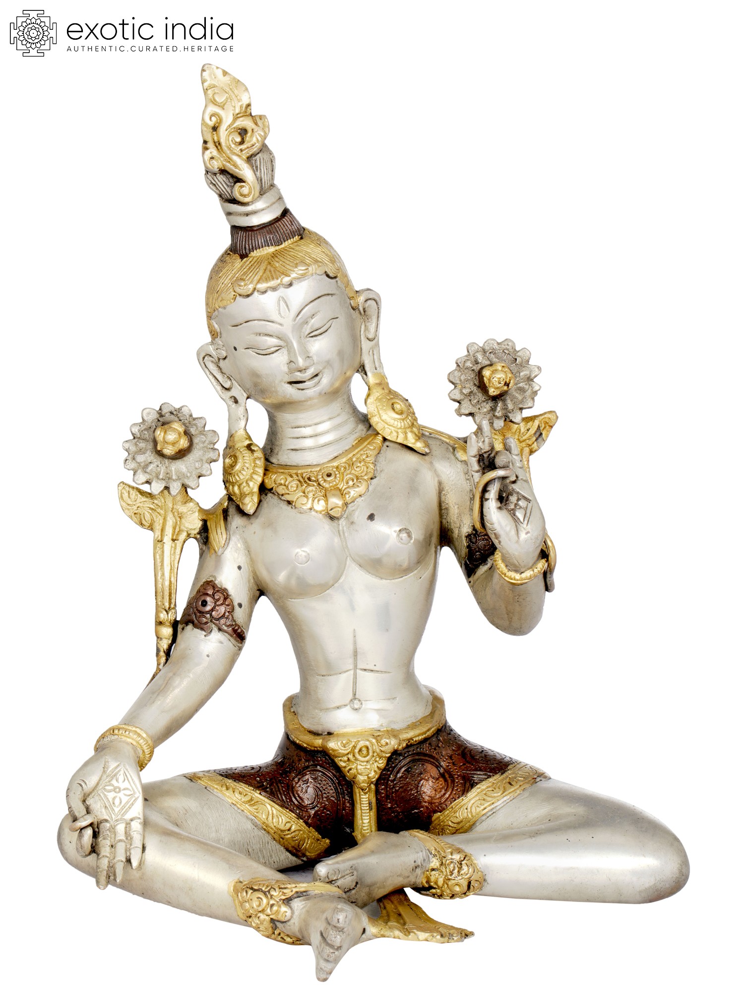 This magnificent piece is meticulously handcrafted by skilled artisans in India, a land steeped in rich artistic and spiritual traditions. The use of brass, a material known for its durability and ability to hold intricate details, ensures that this statue will be a cherished treasure for generations. The subtle variations in metal tones and the delicate embellishments highlight the dedication and artistry involved in its creation. The flowing robes, the ornate jewelry, and the divine aura emanating from the sculpture all speak to the reverence and devotion poured into its making. Placing this Green Tara statue in your home or meditation space is an invitation to embrace her boundless compassion and her active, liberating energy, bringing a touch of the divine into your everyday life.