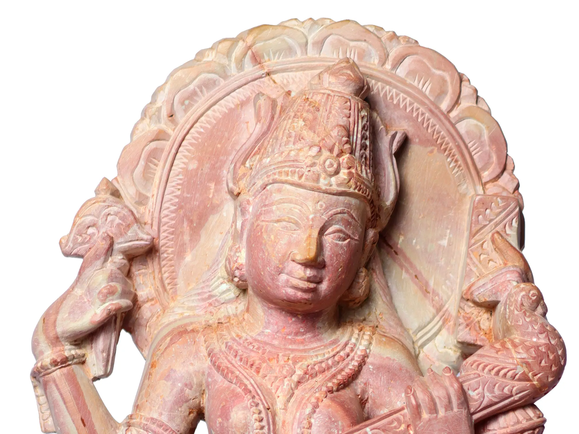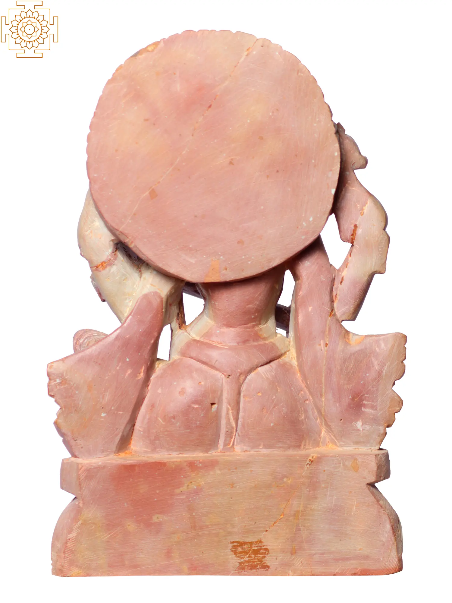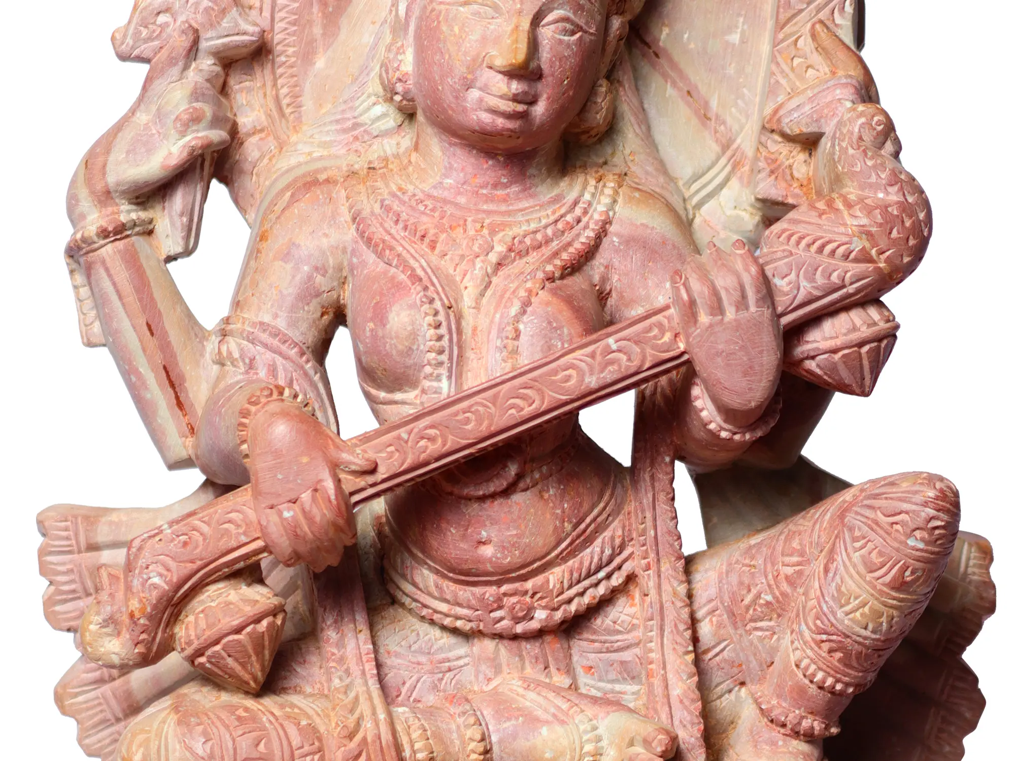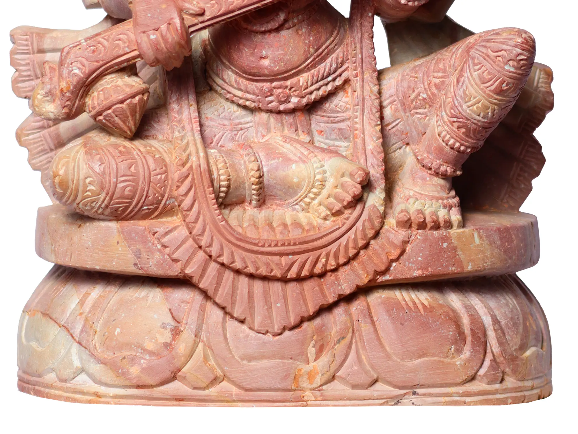 8" Goddess Saraswati Holding Veena | Red Stone Statue | Hand Carved